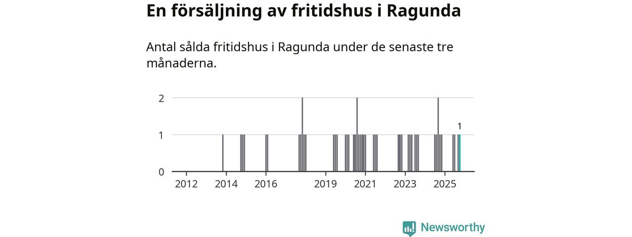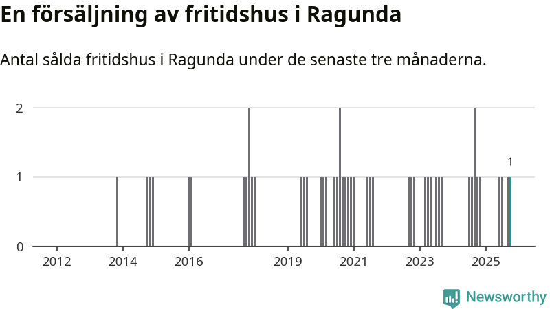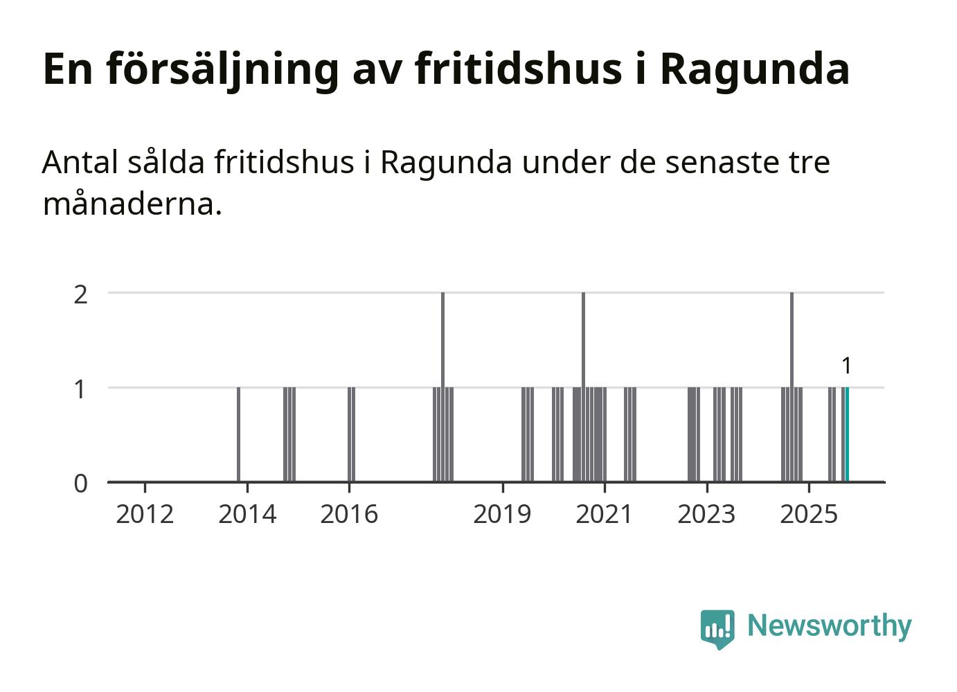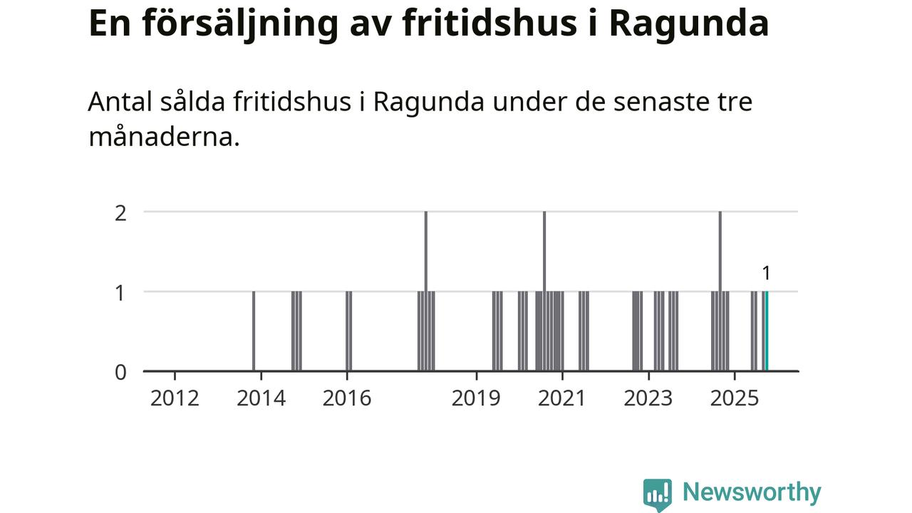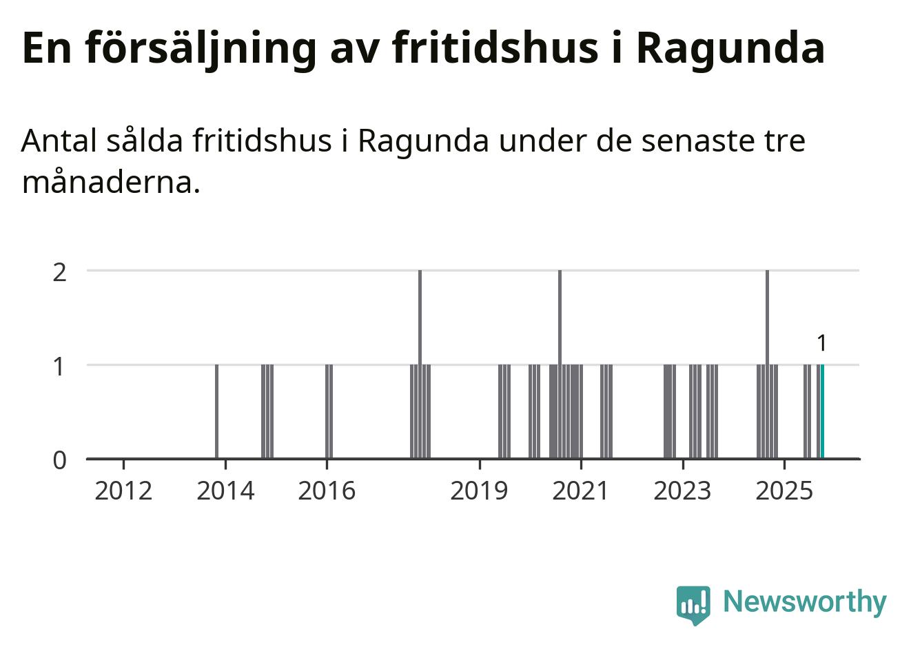 Mellan augusti och oktober gjordes sammanlagt en affär med fritidshus i Ragunda kommun. Det är lika många affärer som vid motsvarande tid i fjol.