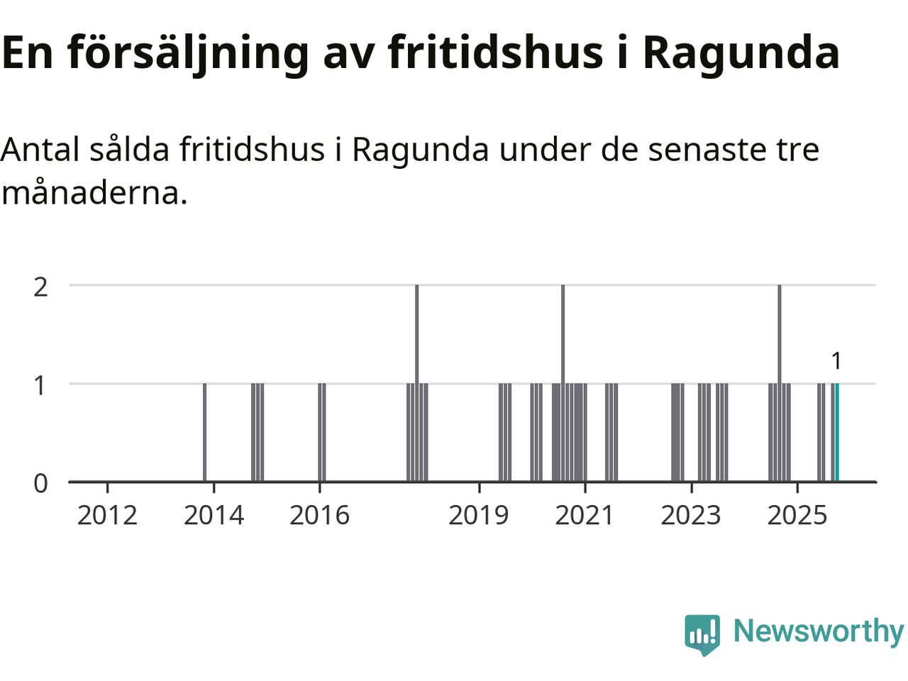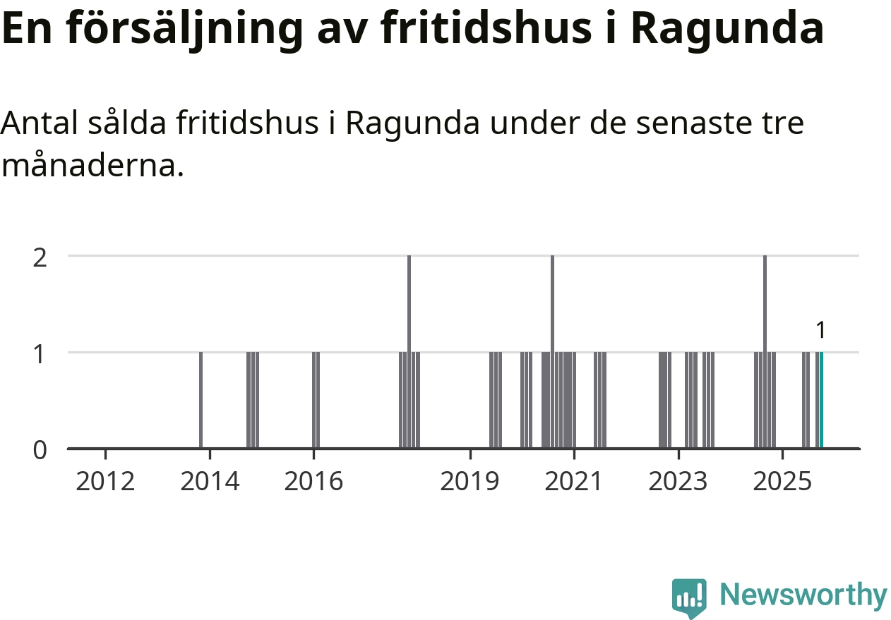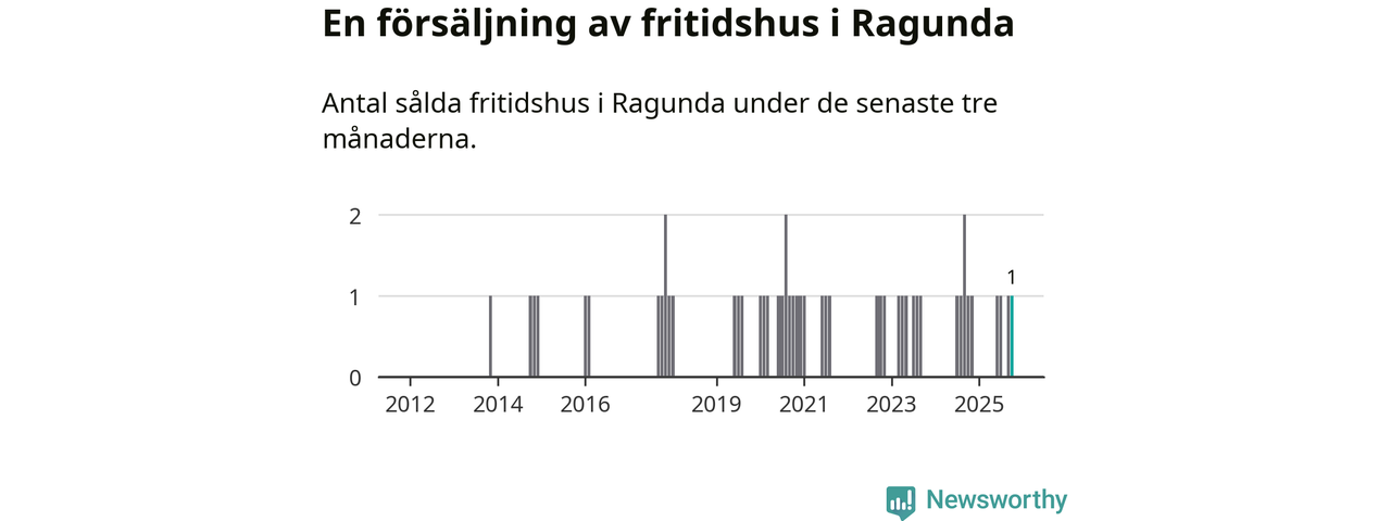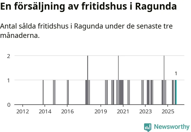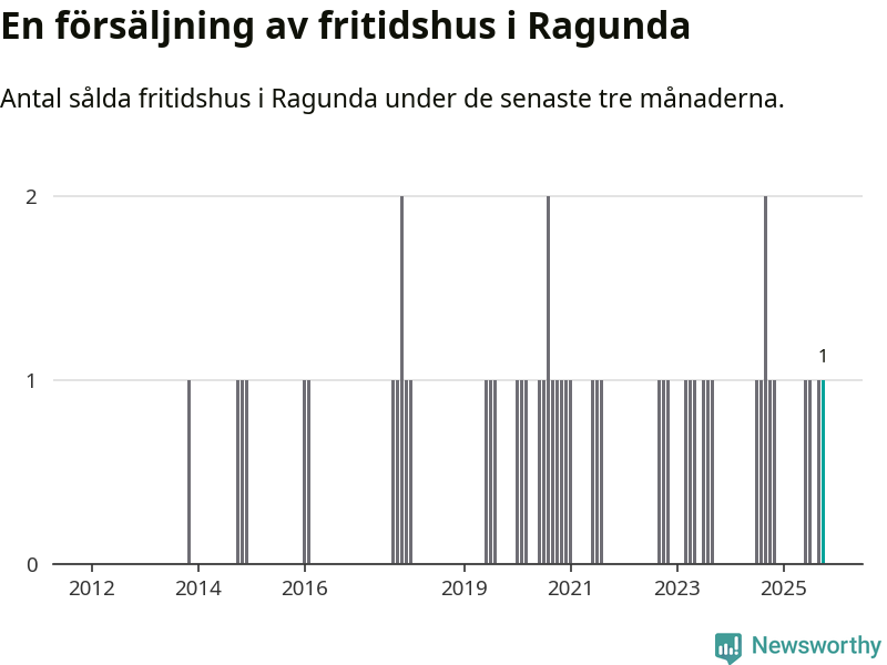 Mellan augusti och oktober gjordes sammanlagt en affär med fritidshus i Ragunda kommun. Det är lika många affärer som vid motsvarande tid i fjol.