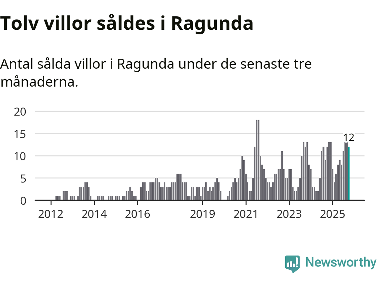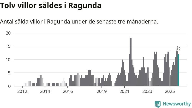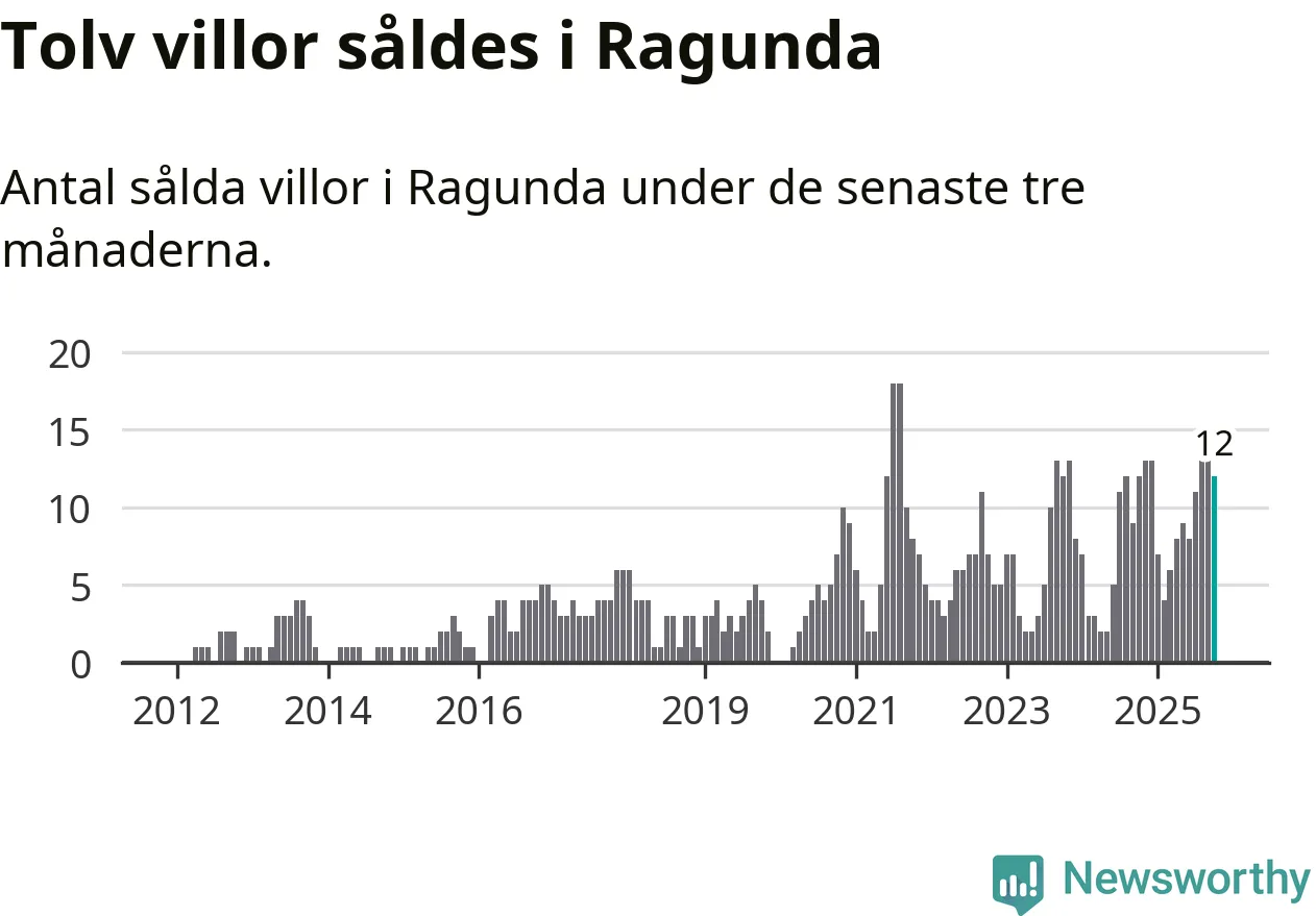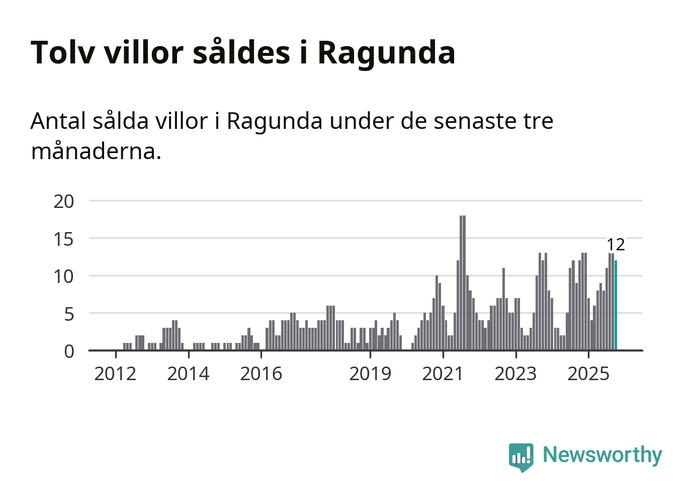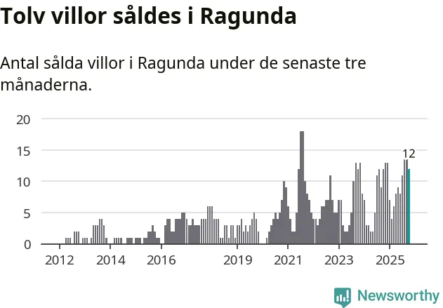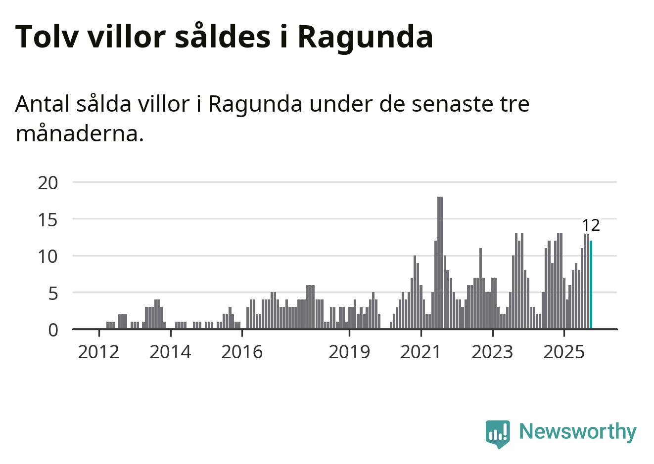 Mellan augusti och oktober gjordes sammanlagt tolv affärer med villor i Ragunda kommun. Det är lika många affärer som vid motsvarande tid i fjol.