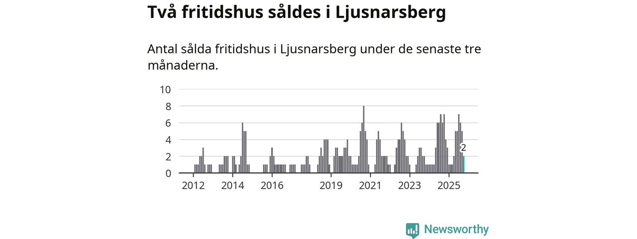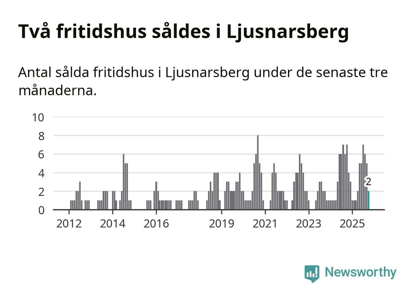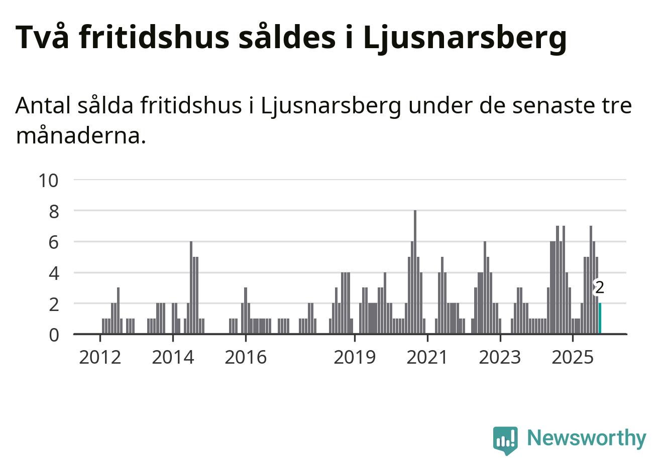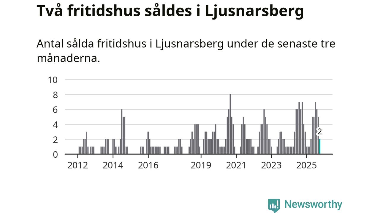 Mellan augusti och oktober gjordes sammanlagt två affärer med fritidshus i Ljusnarsbergs kommun. Det kan jämföras med sju vid motsvarande tid i fjol.