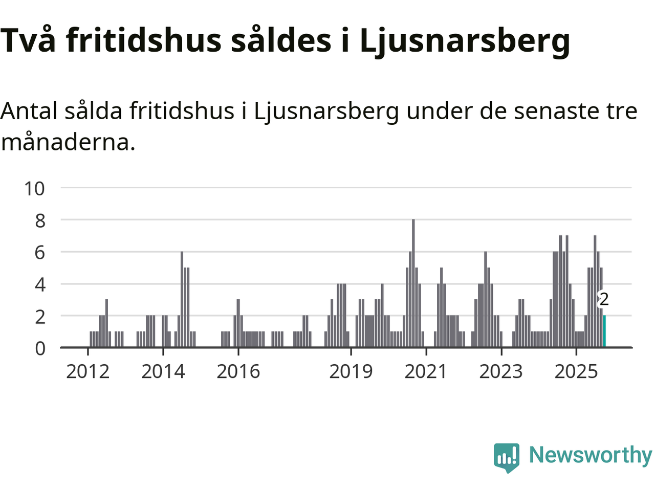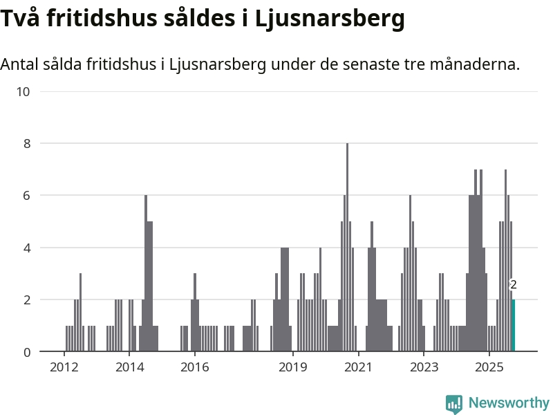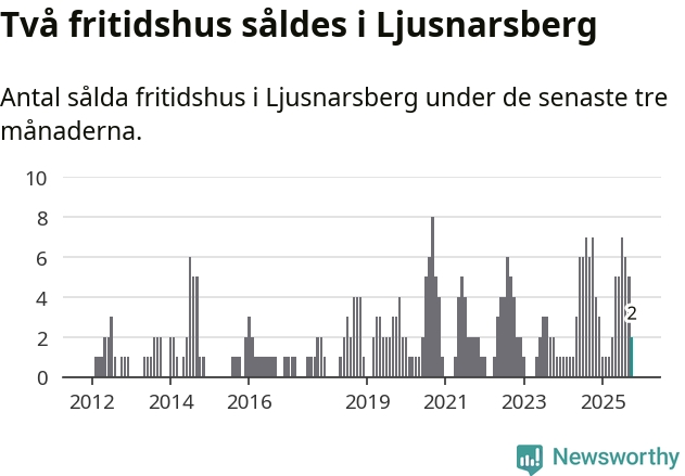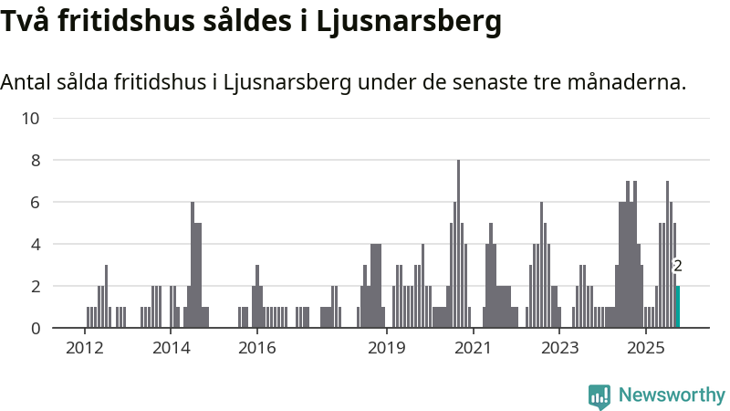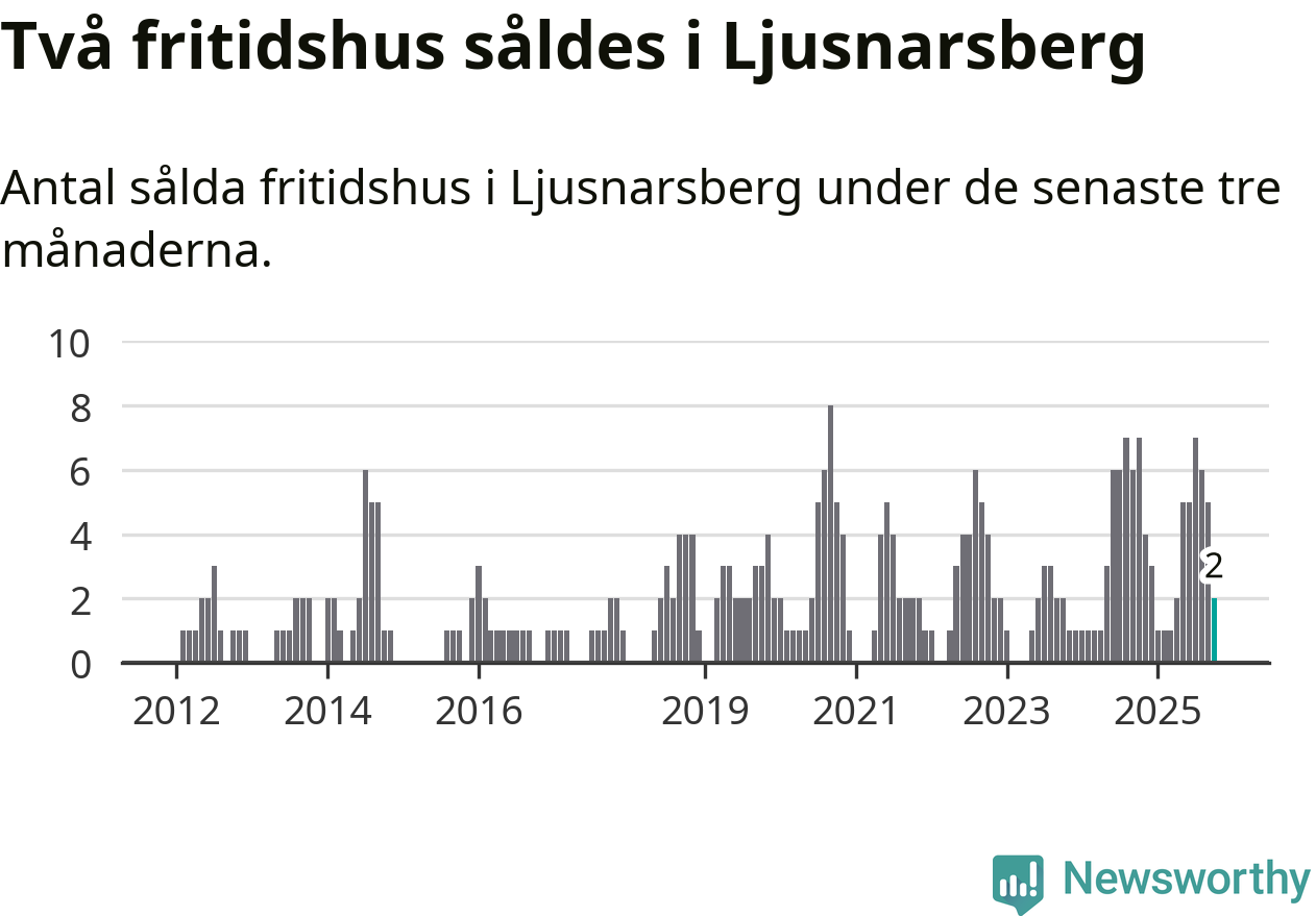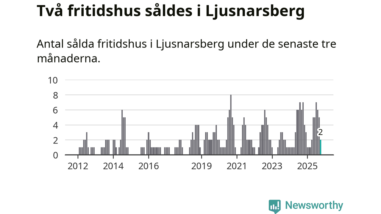 Mellan augusti och oktober gjordes sammanlagt två affärer med fritidshus i Ljusnarsbergs kommun. Det kan jämföras med sju vid motsvarande tid i fjol.