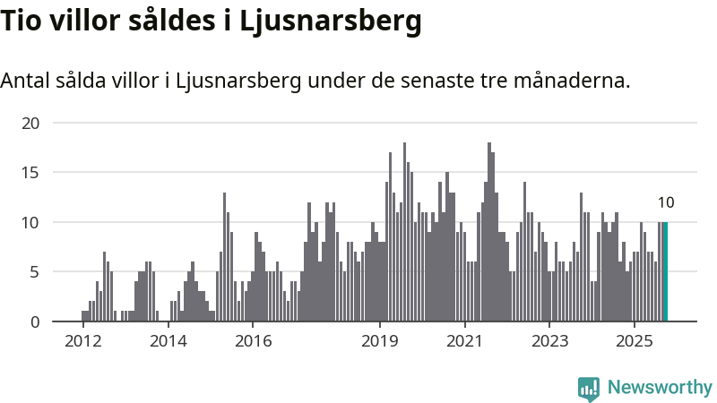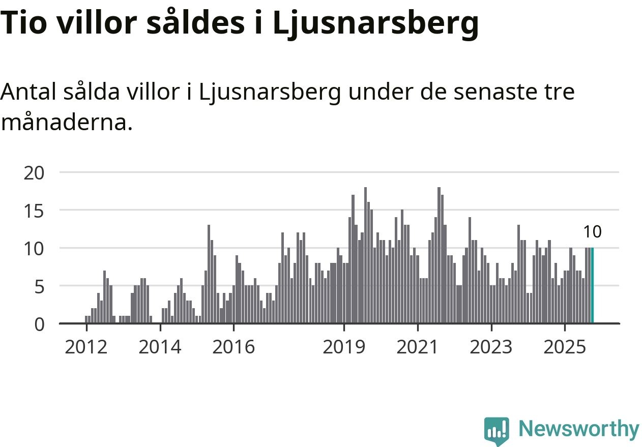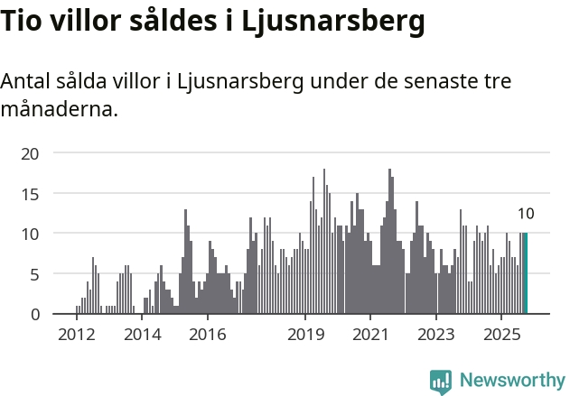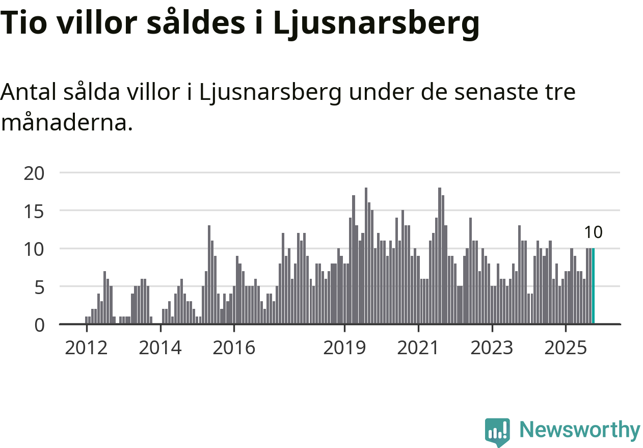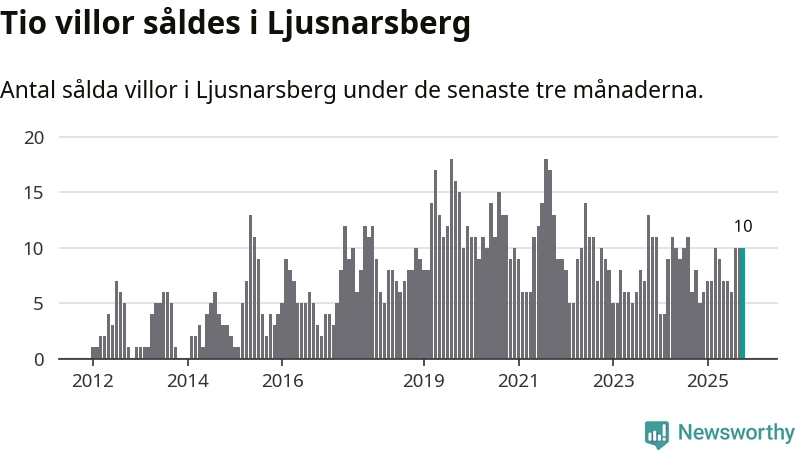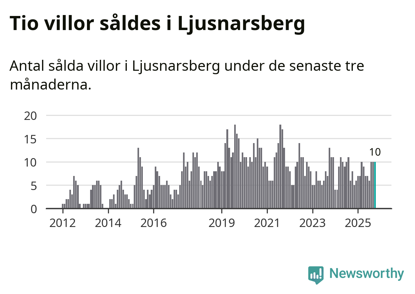 Mellan augusti och oktober gjordes sammanlagt tio affärer med villor i Ljusnarsbergs kommun. Det kan jämföras med åtta vid motsvarande tid i fjol.
