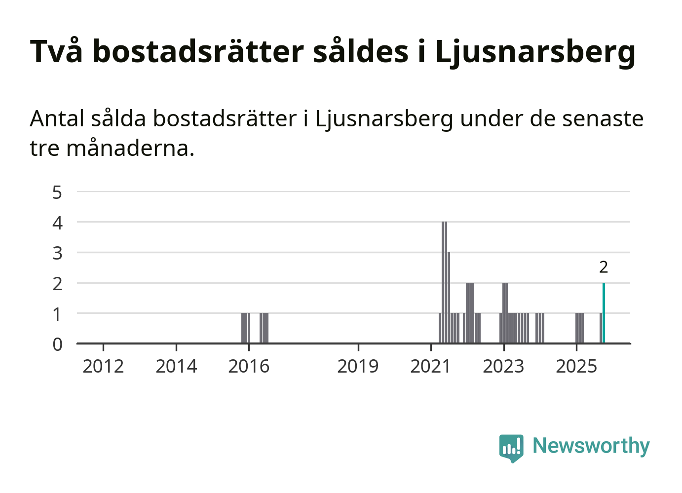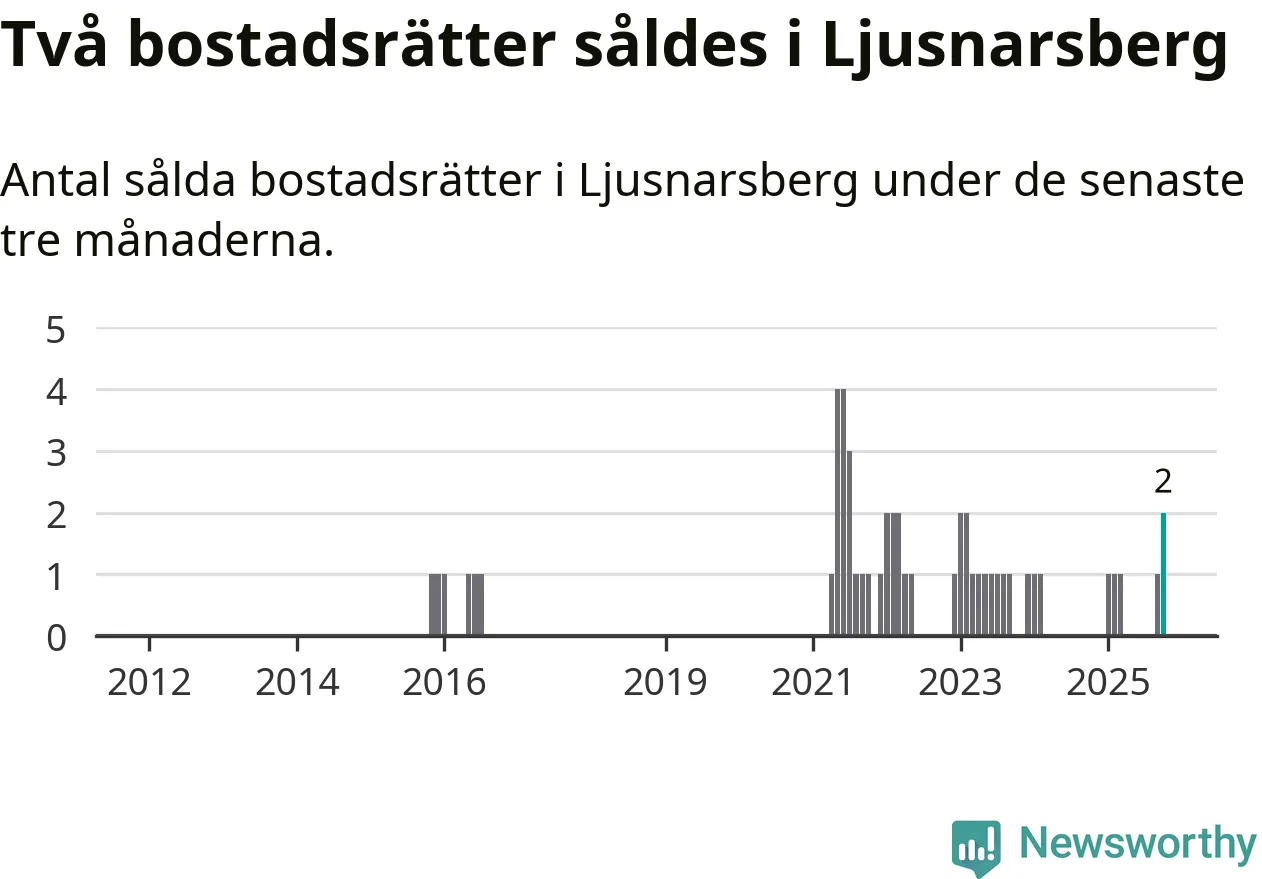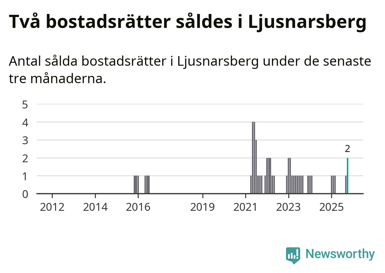 Mellan augusti och oktober gjordes sammanlagt två affärer med bostadsrätter i Ljusnarsbergs kommun.