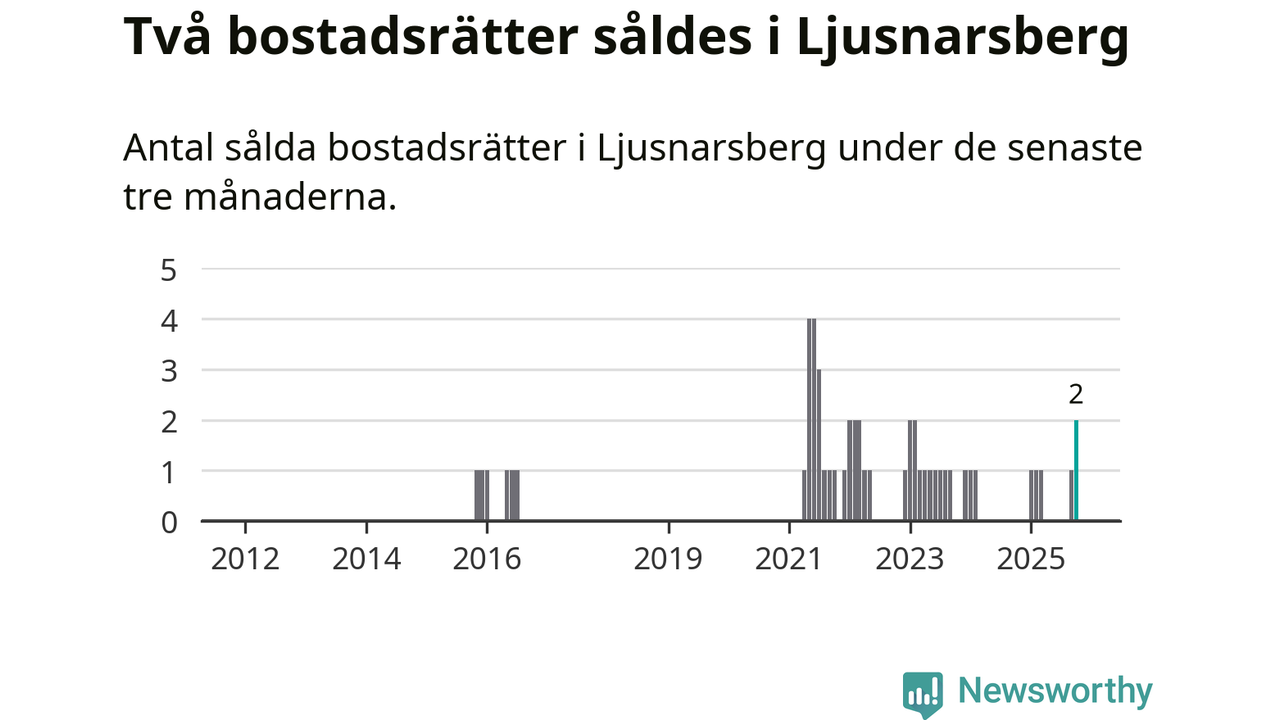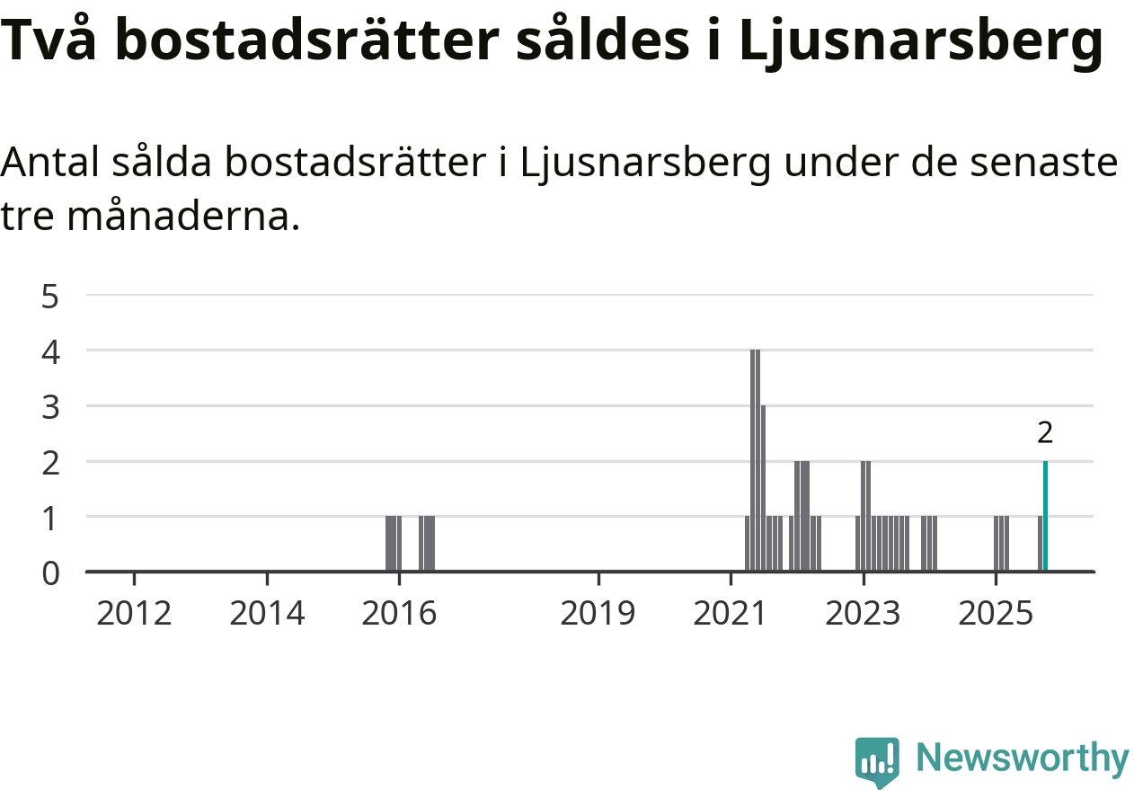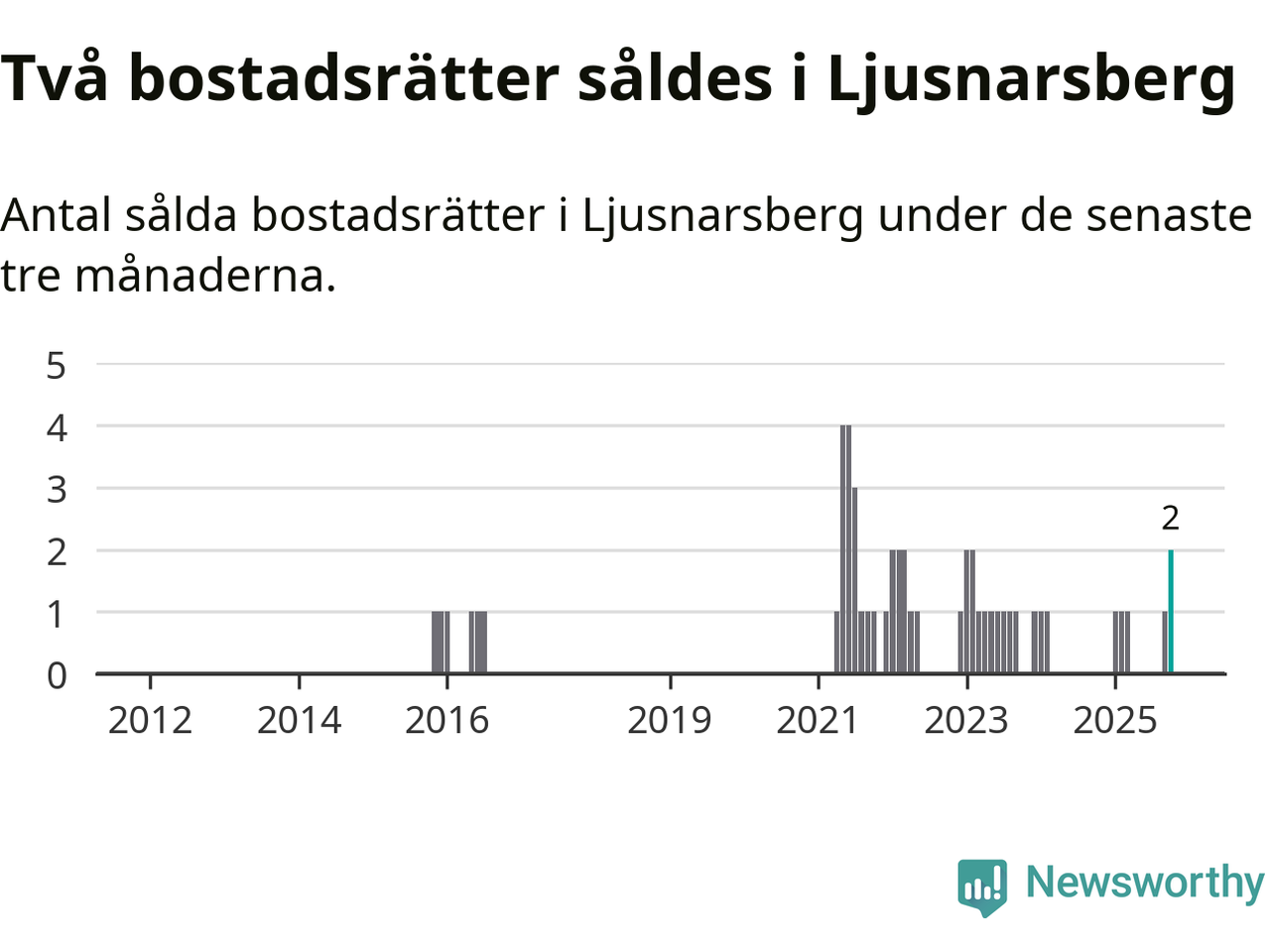 Mellan augusti och oktober gjordes sammanlagt två affärer med bostadsrätter i Ljusnarsbergs kommun.