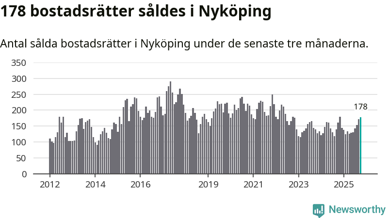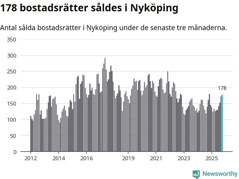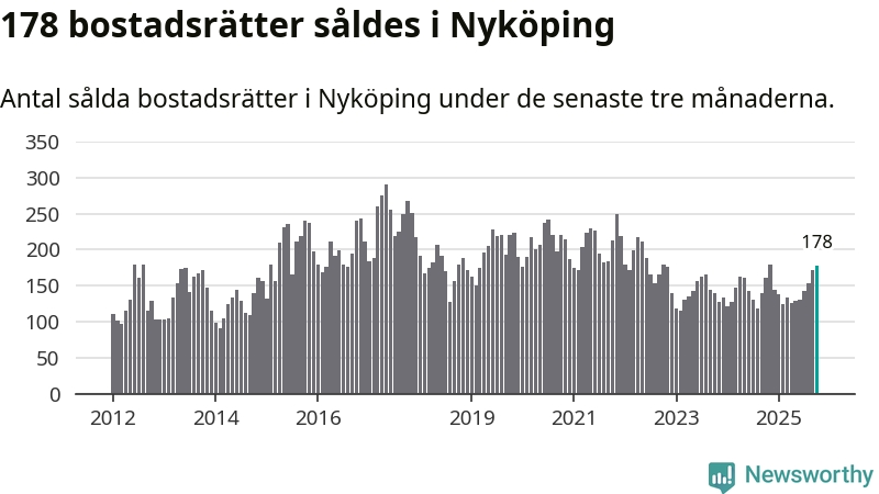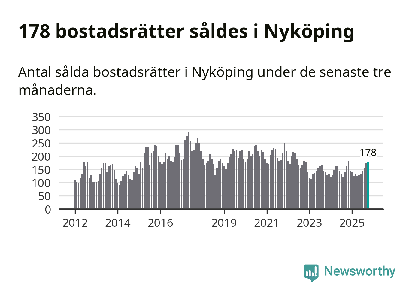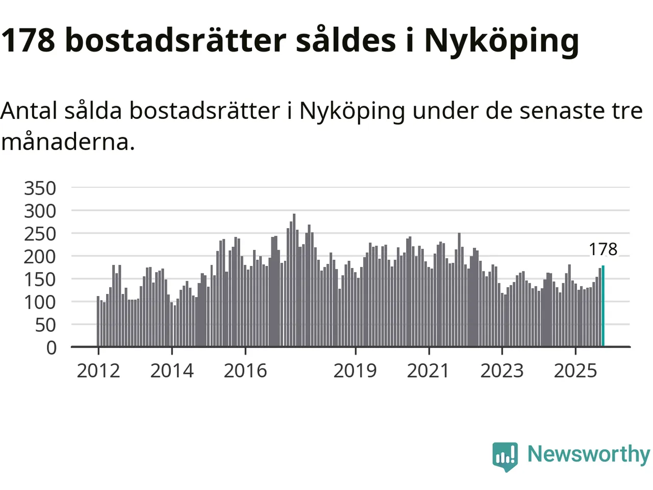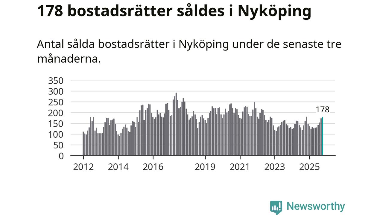 Sammanlagt såldes 178 bostadsrätter i Nyköpings kommun mellan augusti och oktober till ett genomsnittligt pris på 1,4 miljoner kronor. I fjol gjordes 161 affärer vid den här tiden på året.