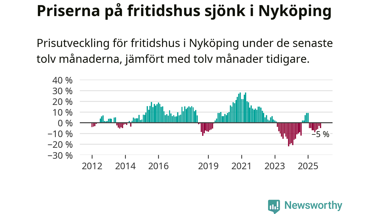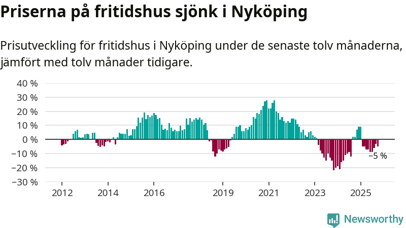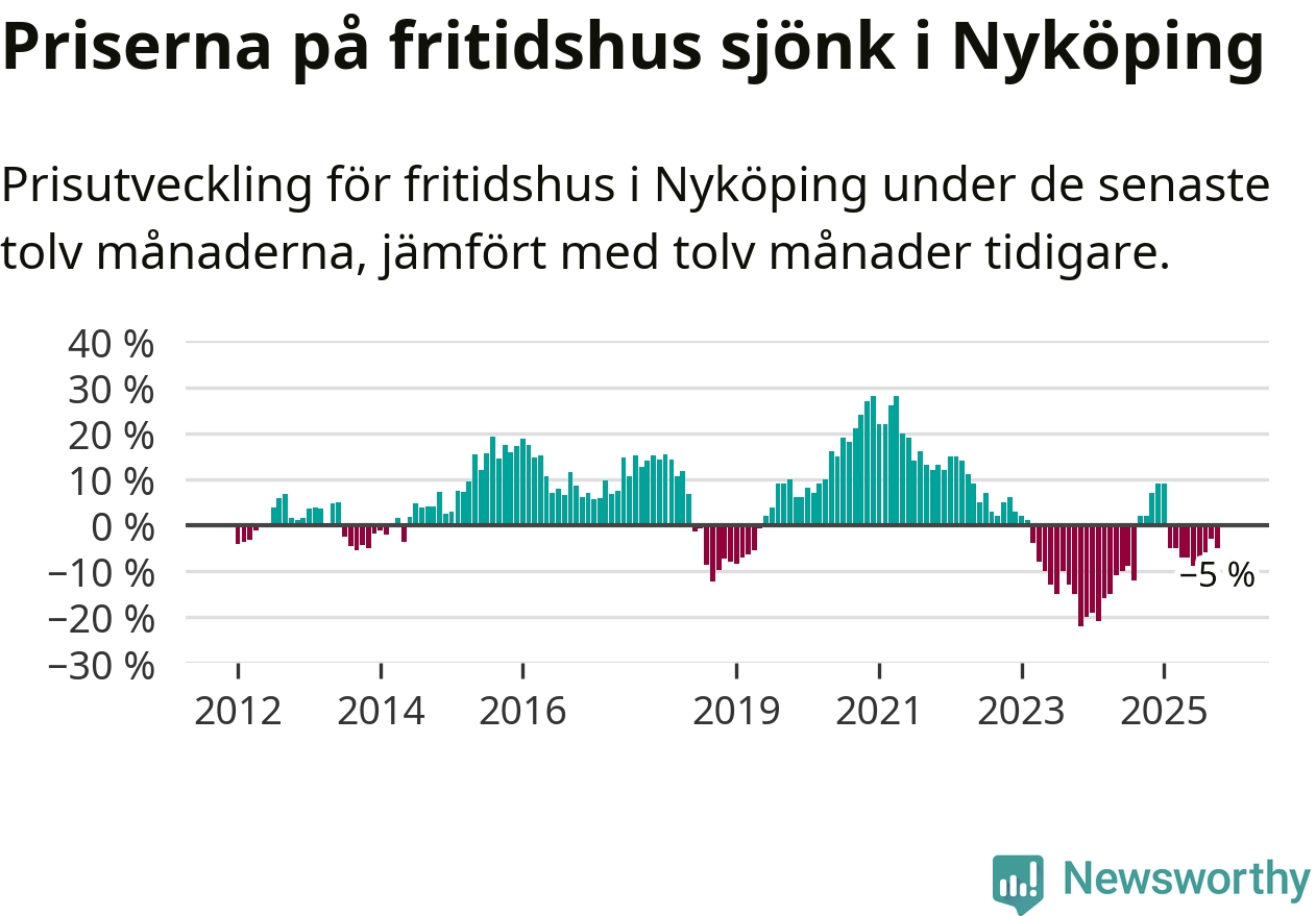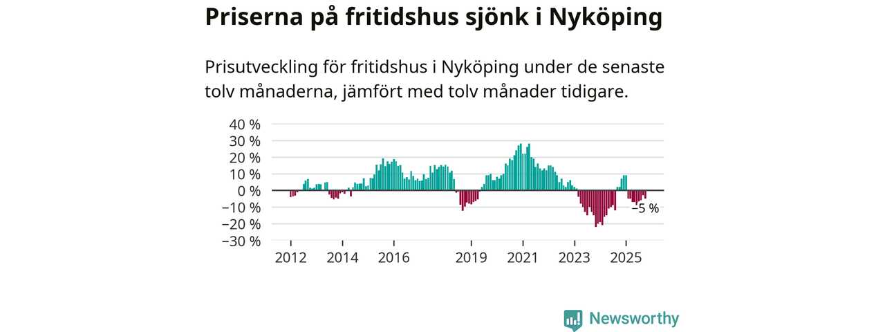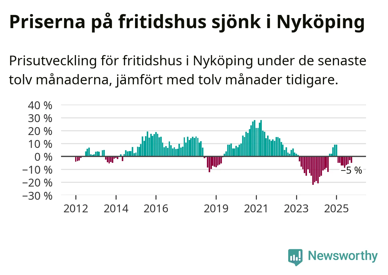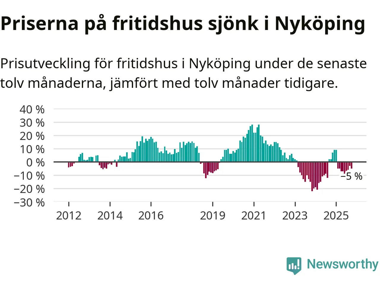 Priserna på fritidshus har gått ner i Nyköpings kommun. Medelpriset på försäljningarna under de senaste tolv månaderna visar på en nedgång med 5 procent.