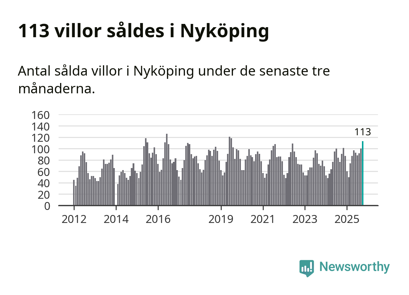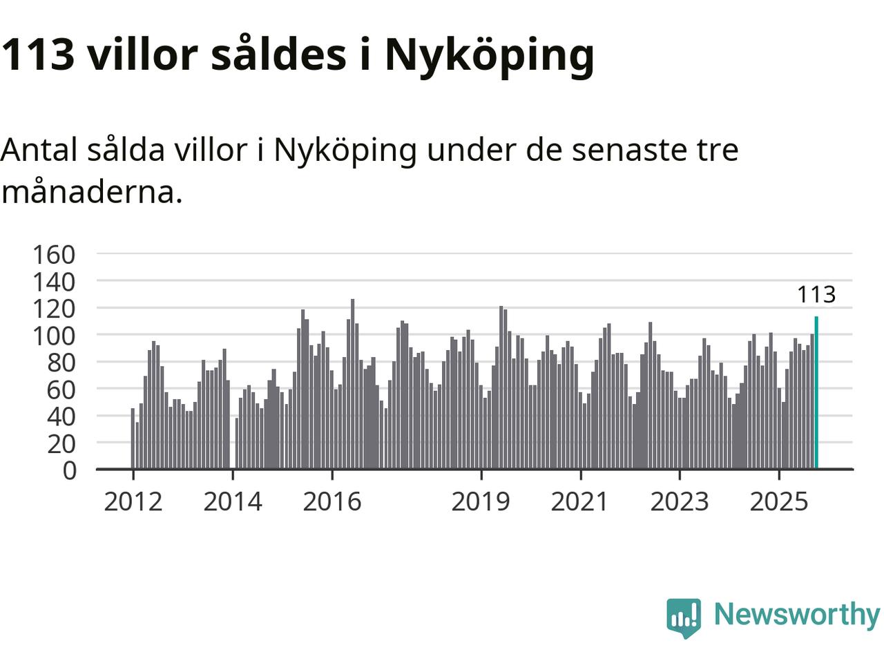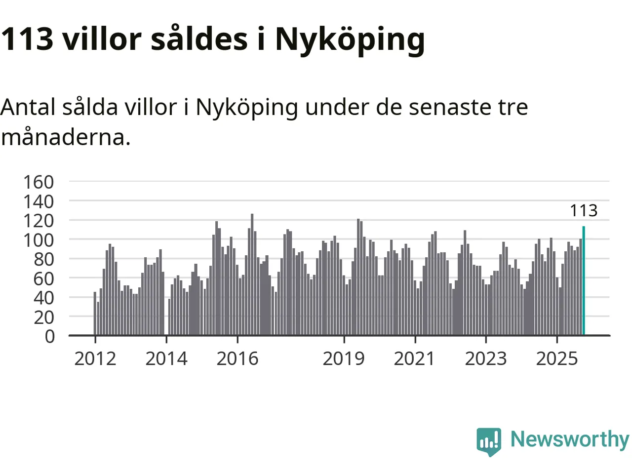 Mellan augusti och oktober såldes 113 villor i Nyköpings kommun. Det är fler än någon tremånadersperiod sedan 2019.