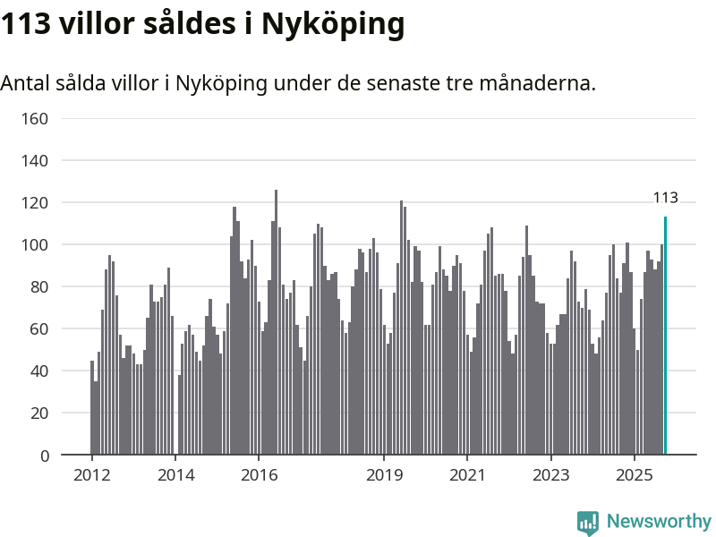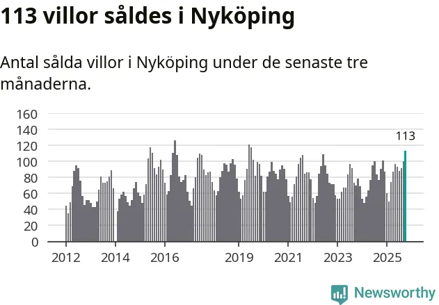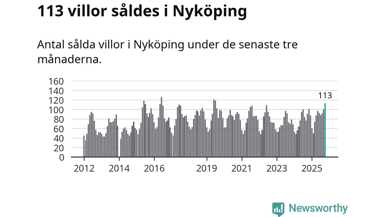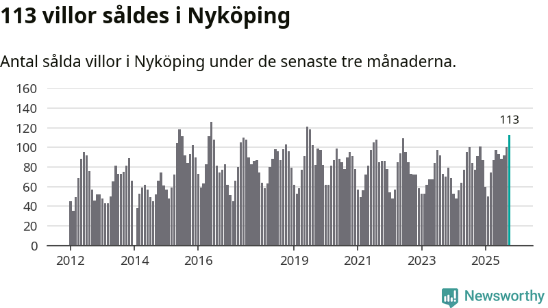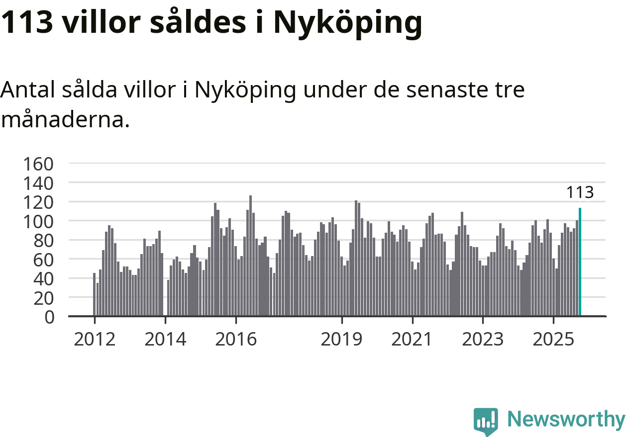 Mellan augusti och oktober såldes 113 villor i Nyköpings kommun. Det är fler än någon tremånadersperiod sedan 2019.