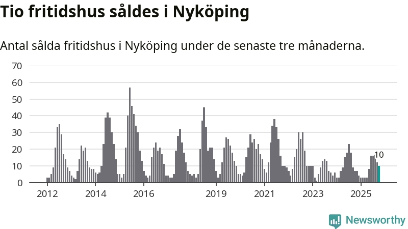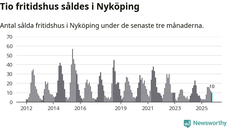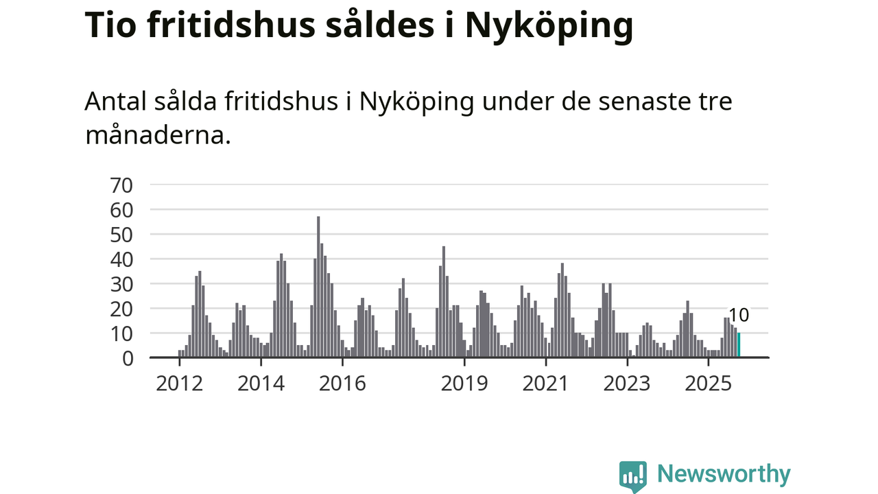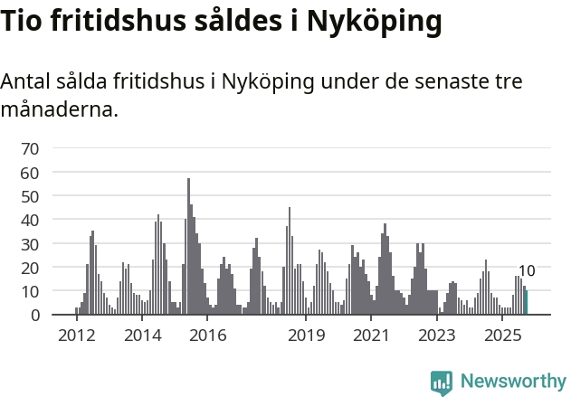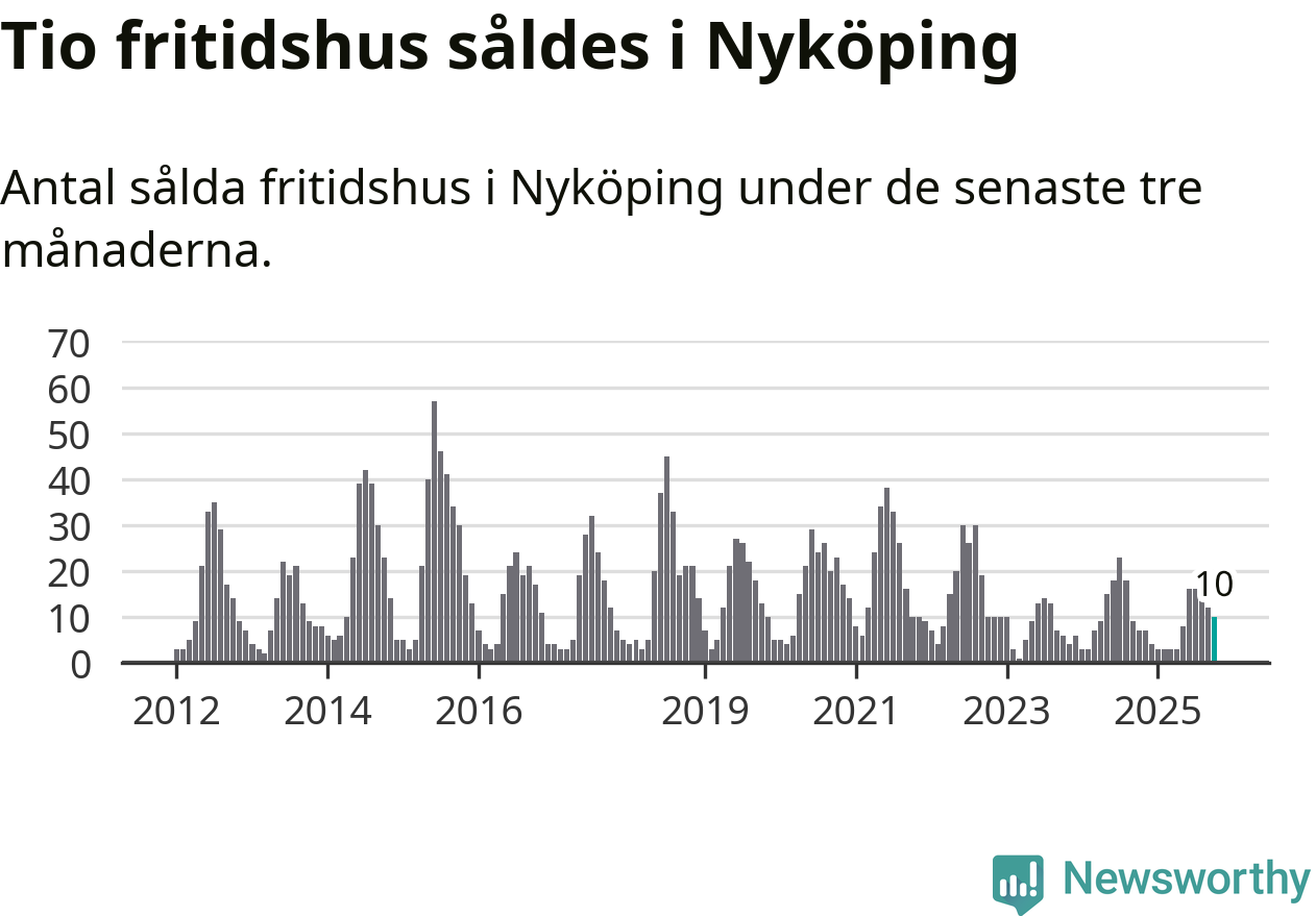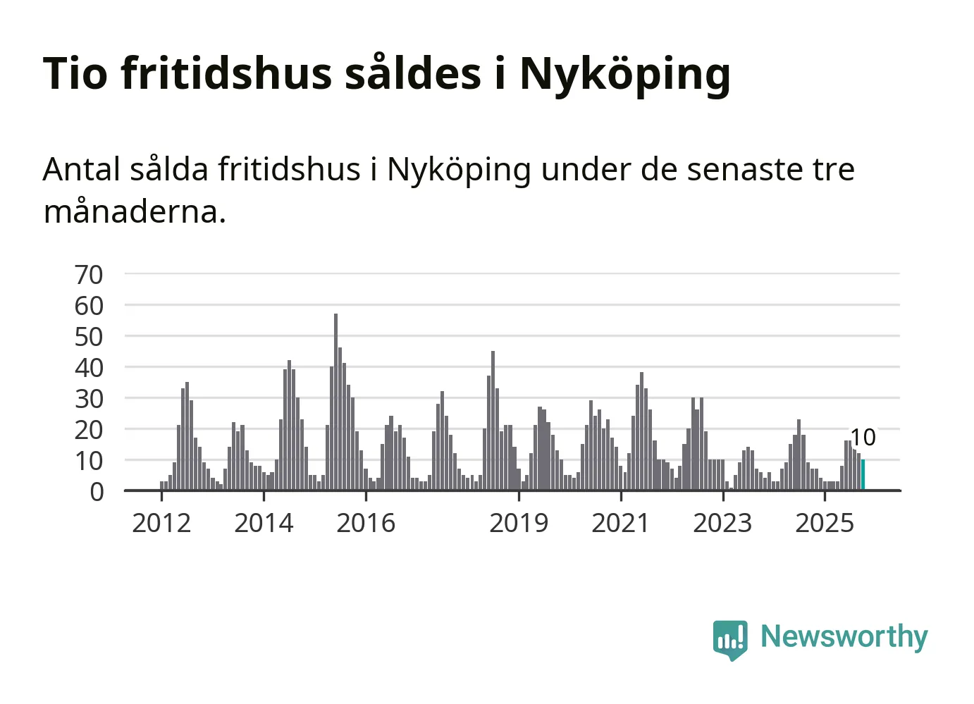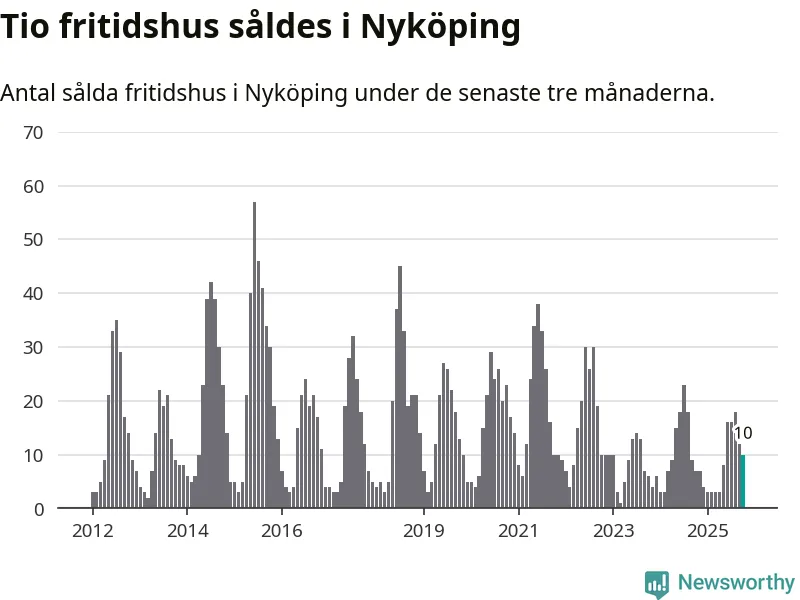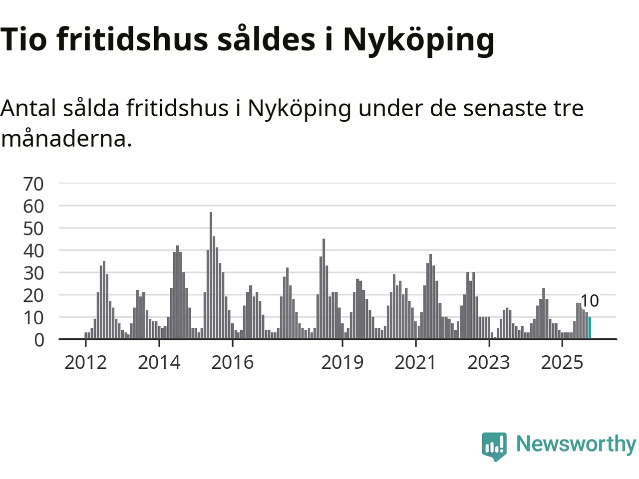 Sammanlagt såldes tio fritidshus i Nyköpings kommun mellan augusti och oktober till ett genomsnittligt pris på 2,1 miljoner kronor. I fjol gjordes sju affärer vid den här tiden på året.