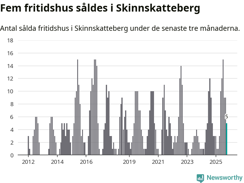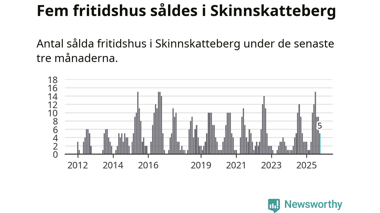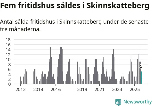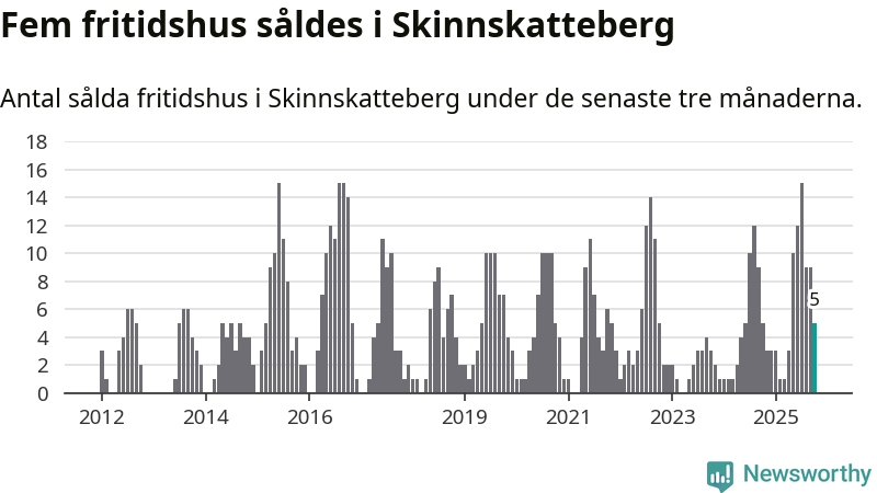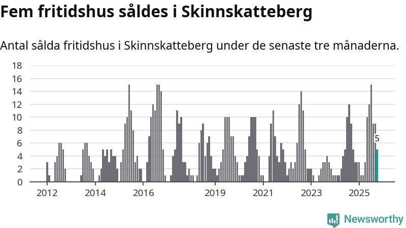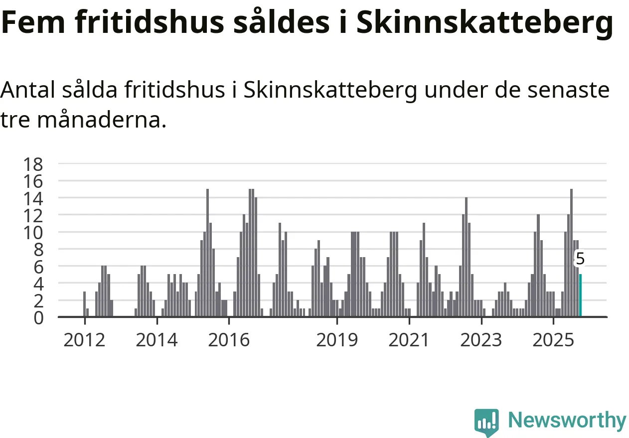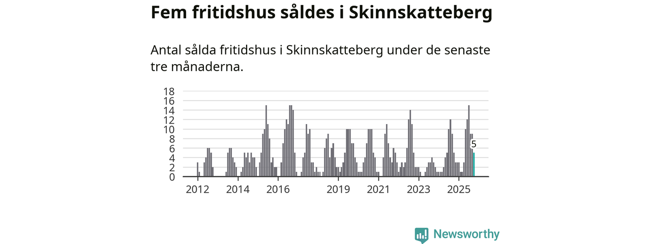 Mellan augusti och oktober gjordes sammanlagt fem affärer med fritidshus i Skinnskattebergs kommun. Det är lika många affärer som vid motsvarande tid i fjol.