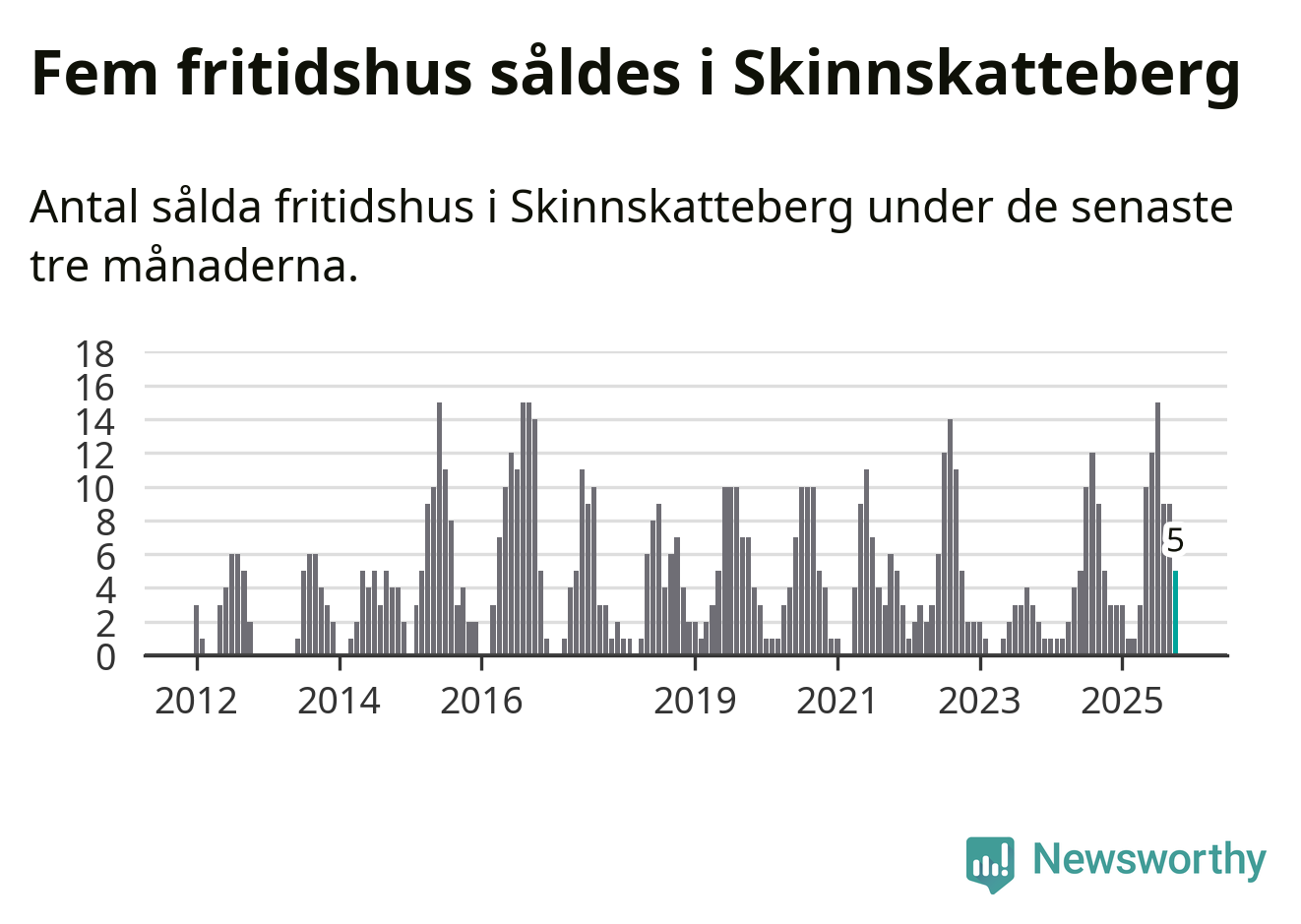 Graf: Antal sålda fritidshus i Skinnskattebergs kommun