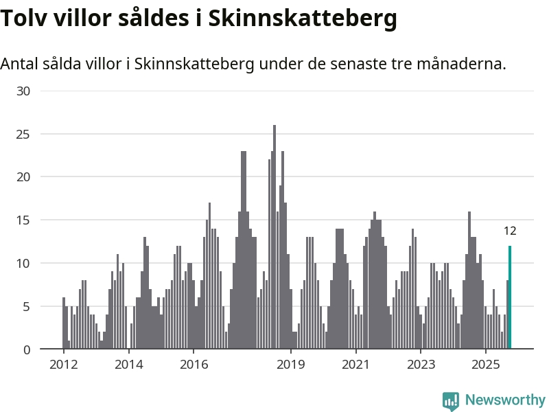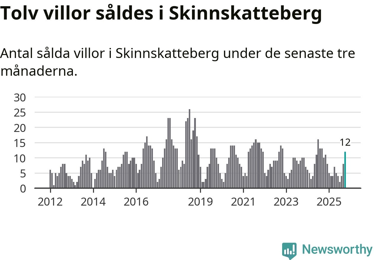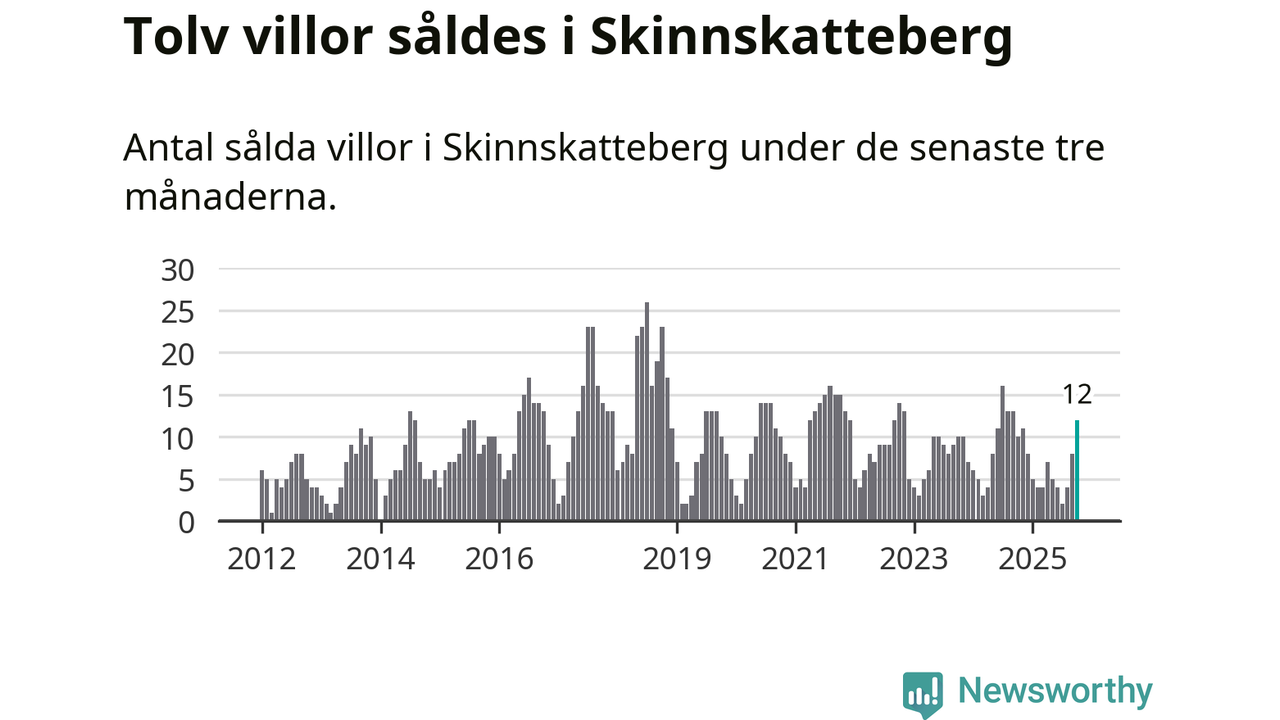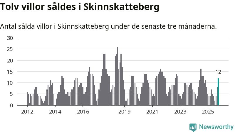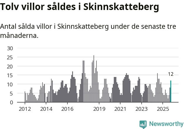 Mellan augusti och oktober gjordes sammanlagt tolv affärer med villor i Skinnskattebergs kommun. Det kan jämföras med tio vid motsvarande tid i fjol.