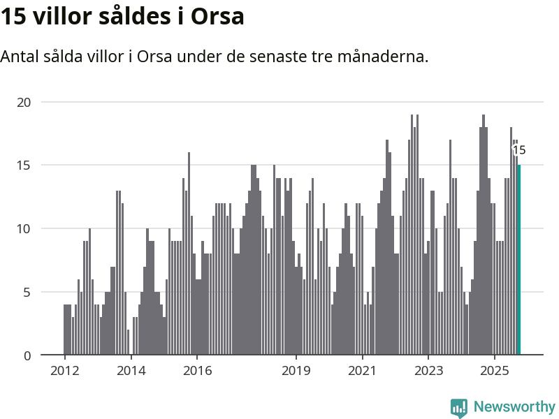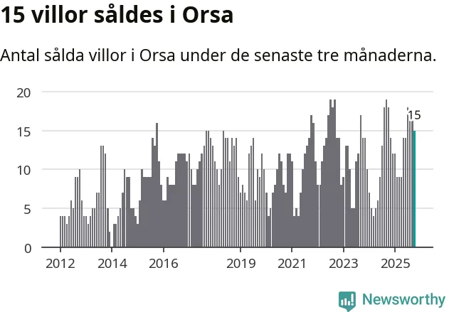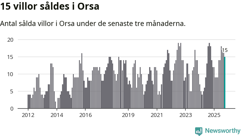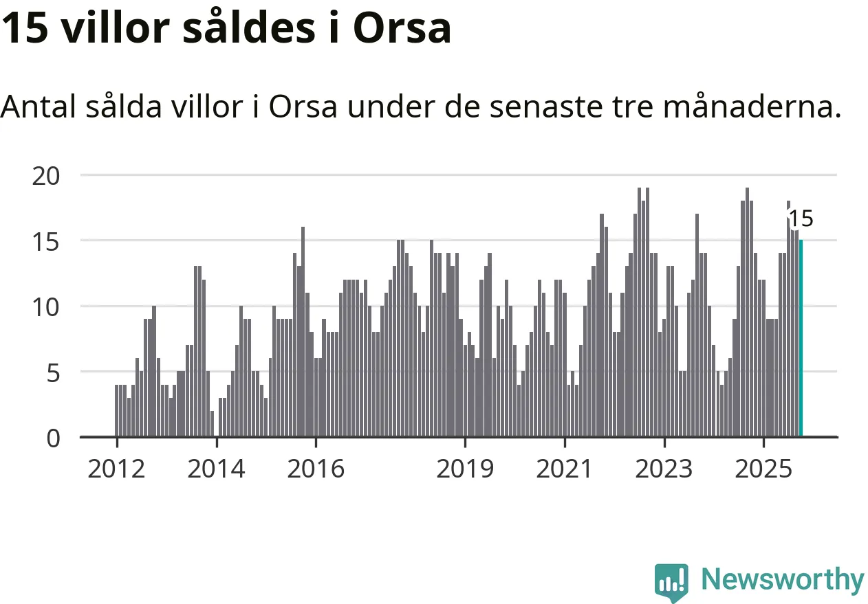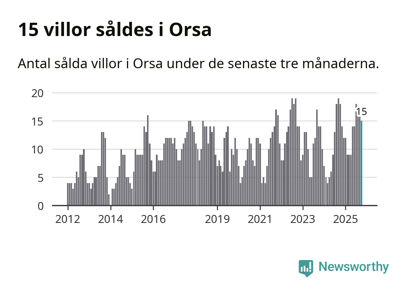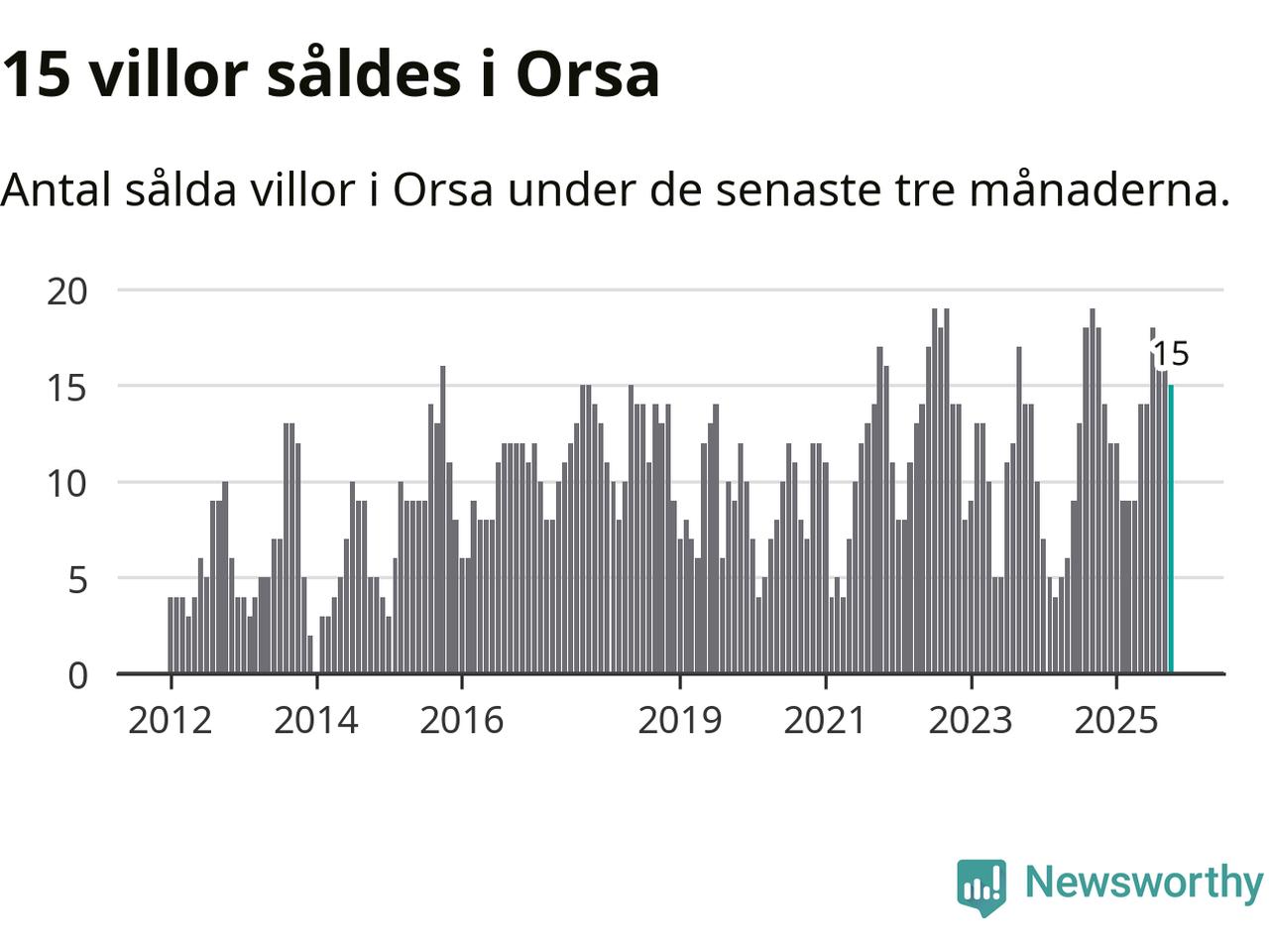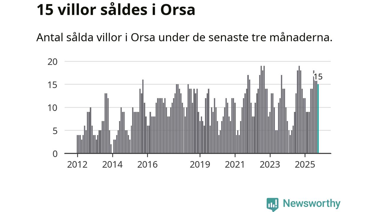 Mellan augusti och oktober gjordes sammanlagt 15 affärer med villor i Orsa kommun. Det kan jämföras med 18 vid motsvarande tid i fjol.