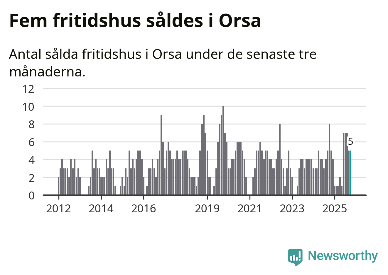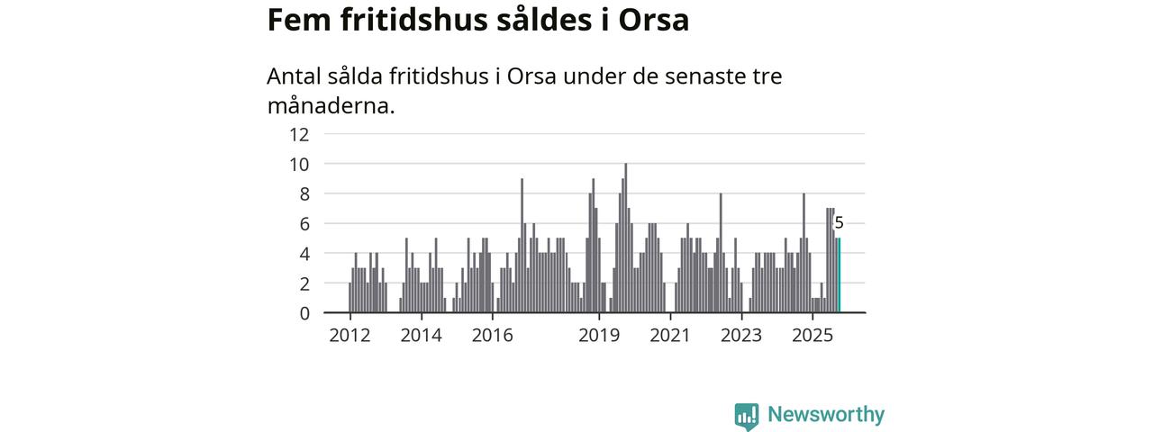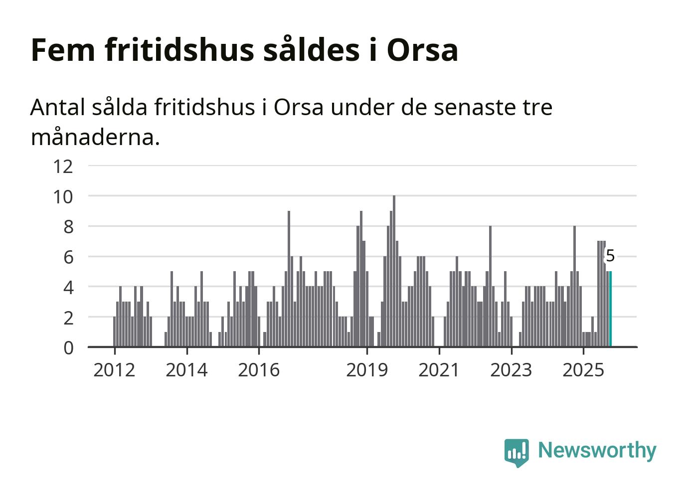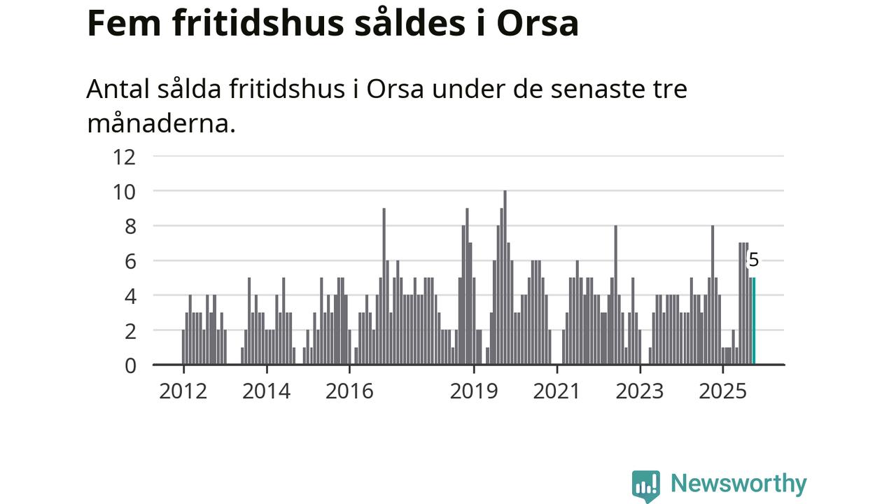 Mellan augusti och oktober gjordes sammanlagt fem affärer med fritidshus i Orsa kommun. Det kan jämföras med åtta vid motsvarande tid i fjol.