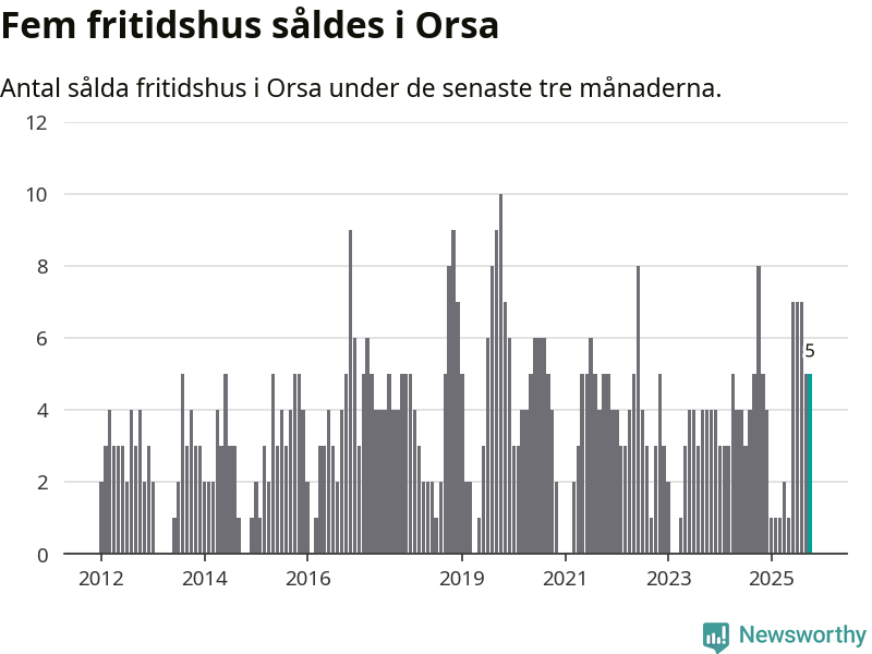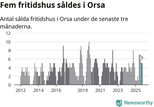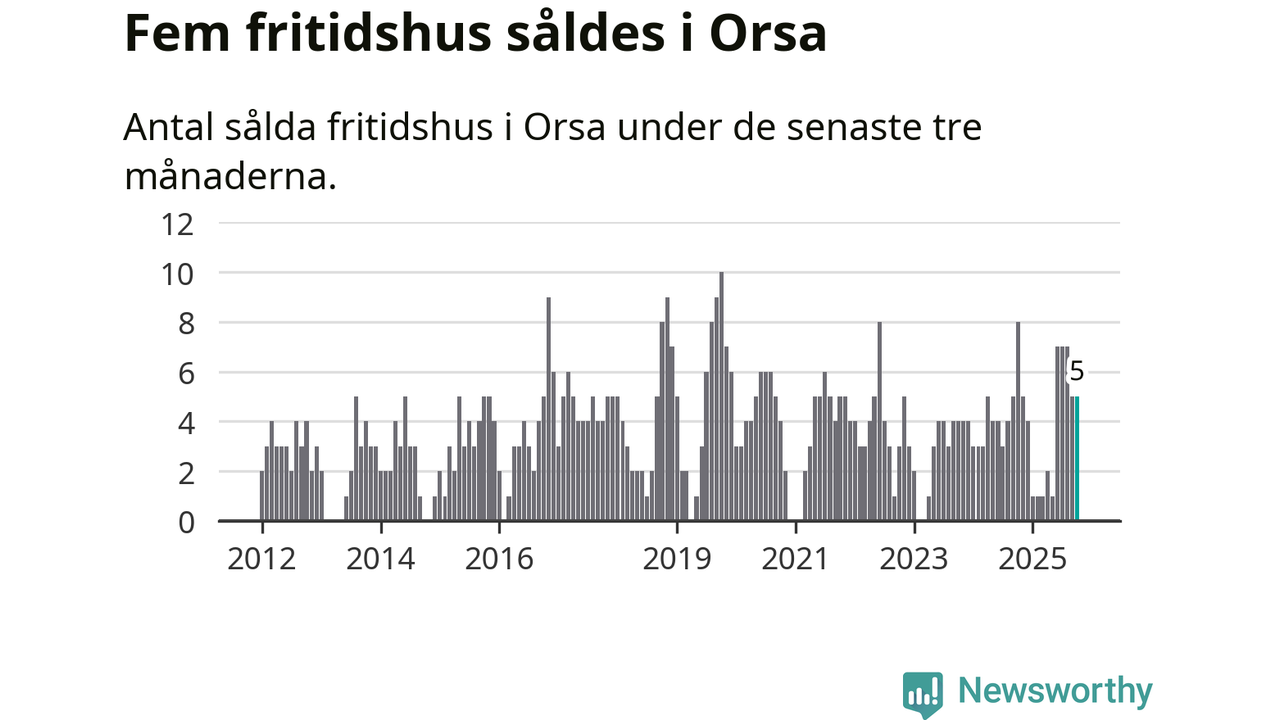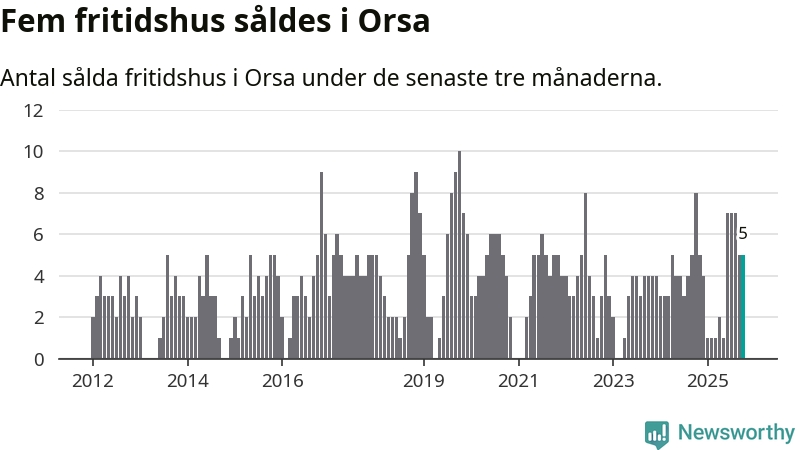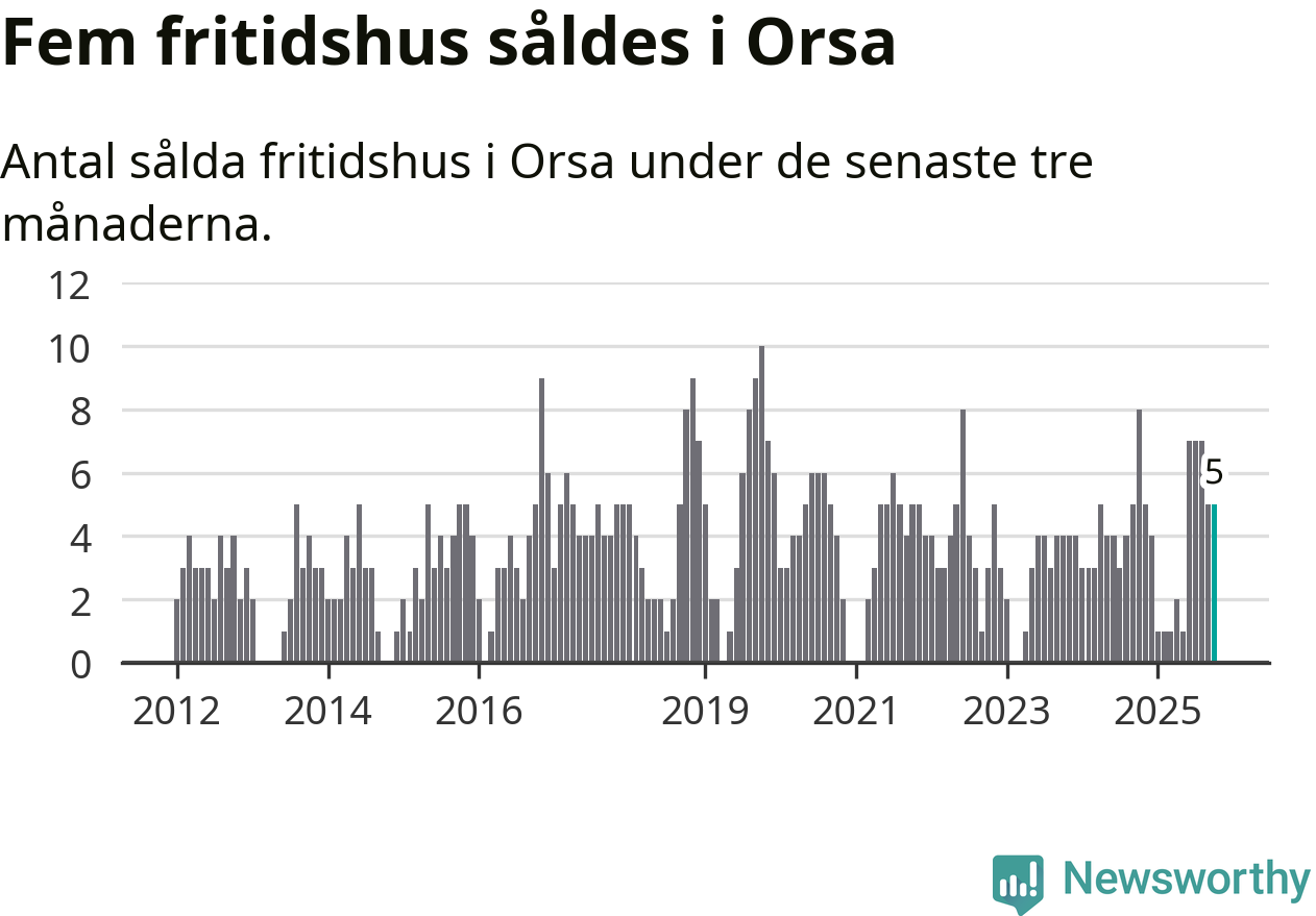 Mellan augusti och oktober gjordes sammanlagt fem affärer med fritidshus i Orsa kommun. Det kan jämföras med åtta vid motsvarande tid i fjol.