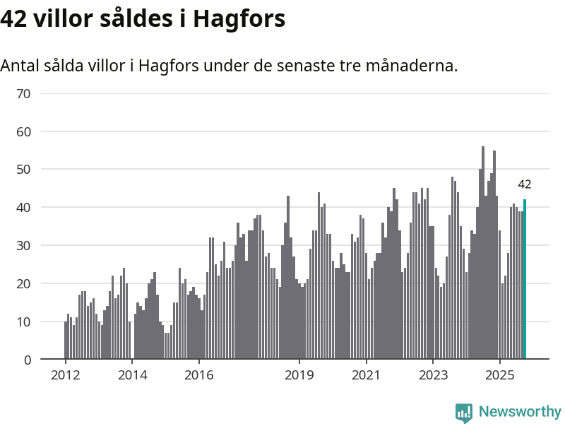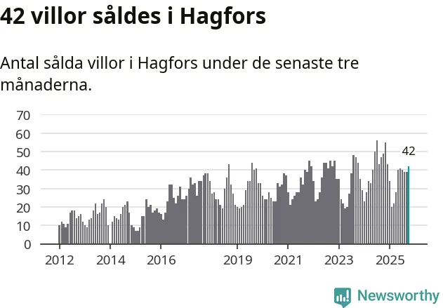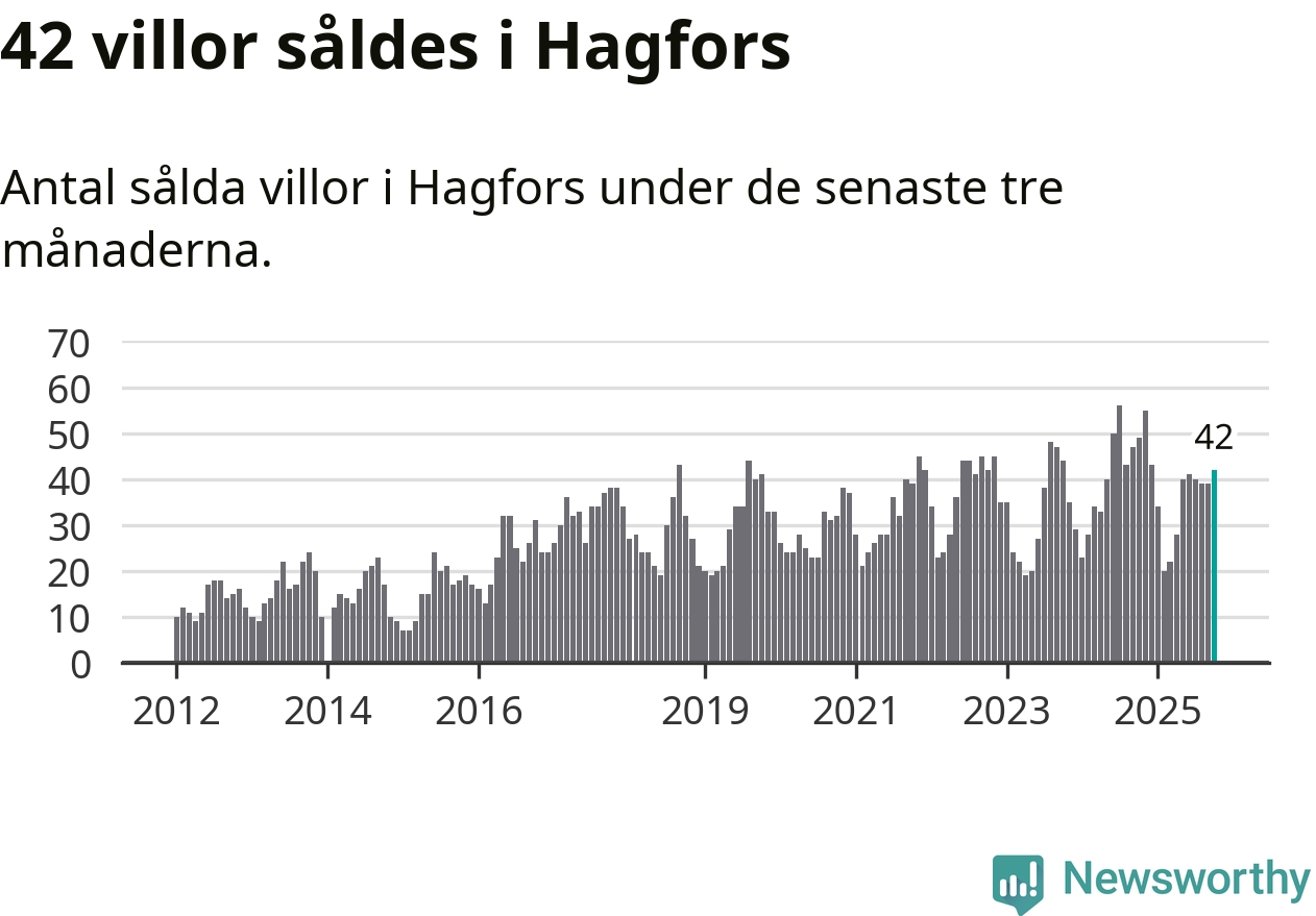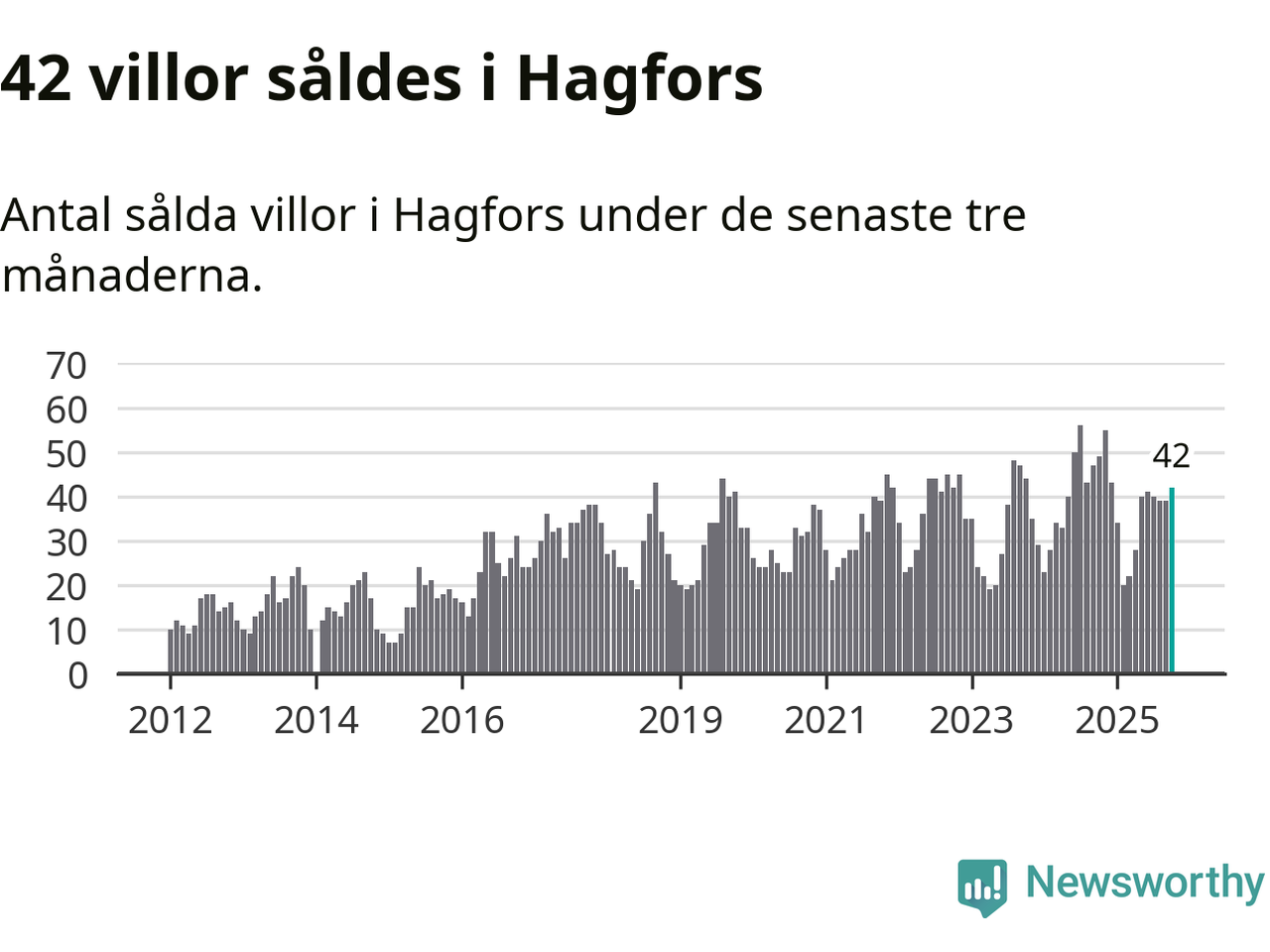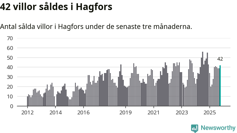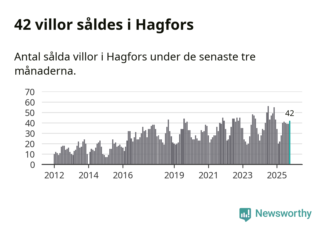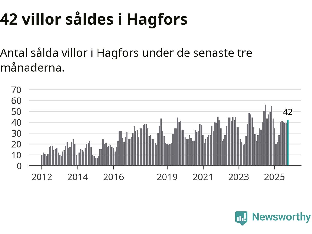 Mellan augusti och oktober gjordes sammanlagt 42 affärer med villor i Hagfors kommun. Det kan jämföras med 49 vid motsvarande tid i fjol.