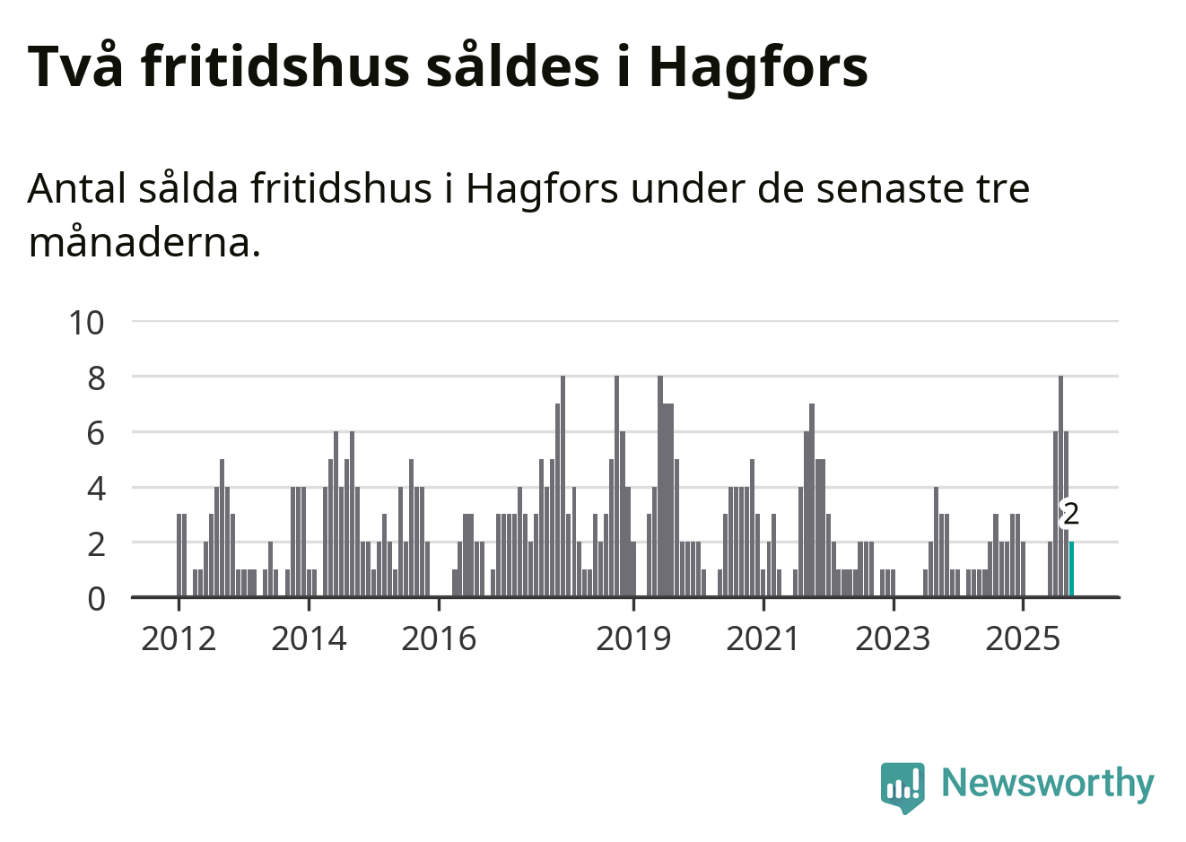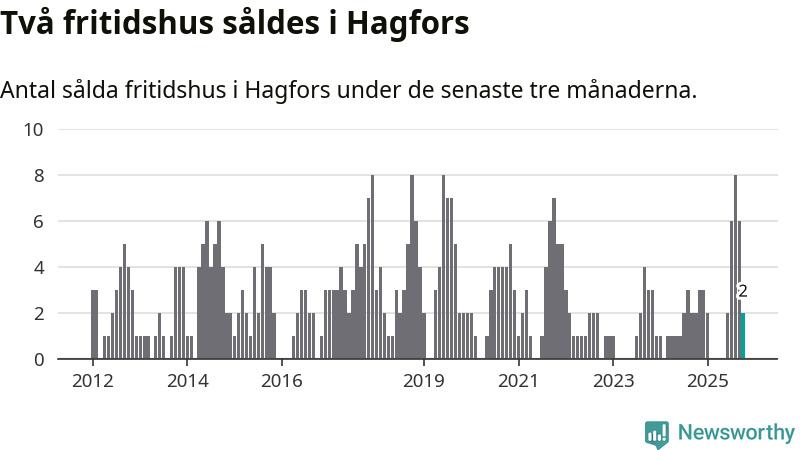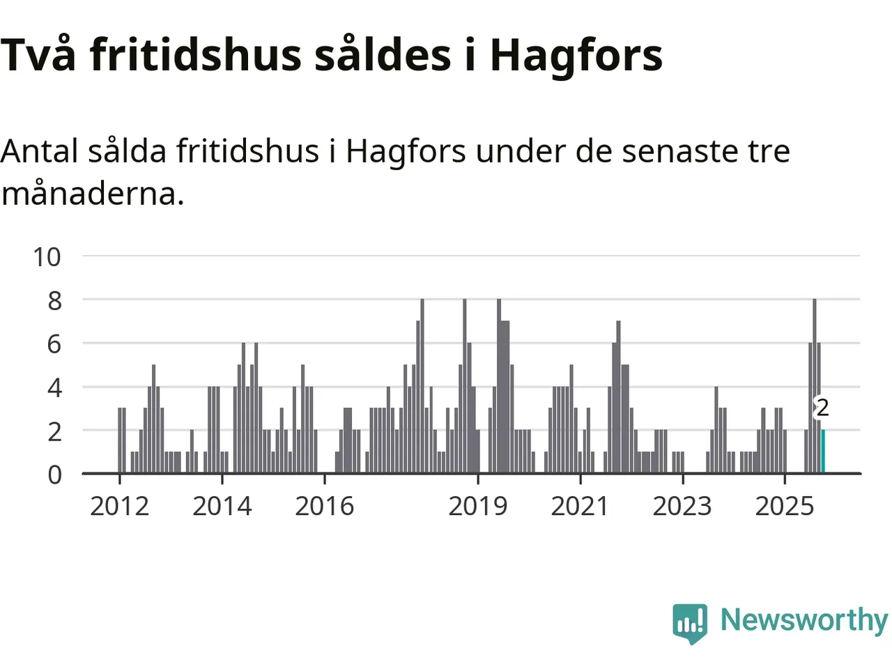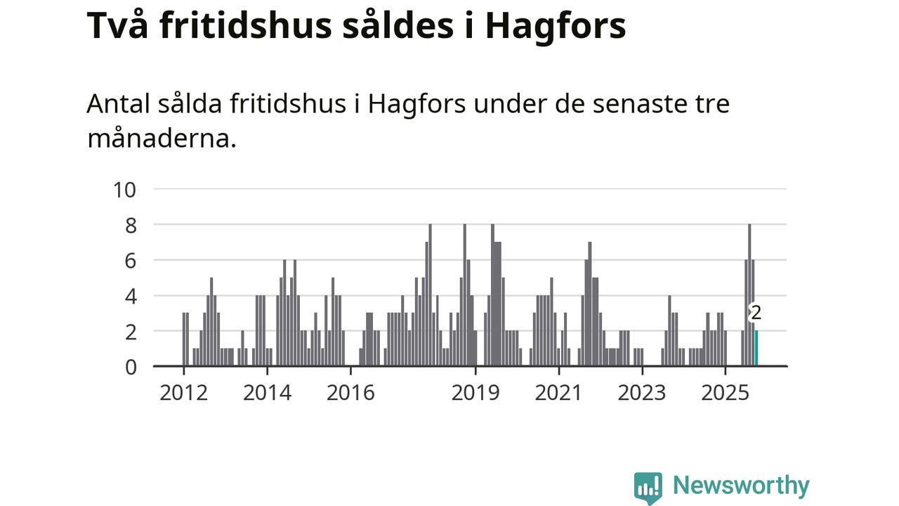 Mellan augusti och oktober gjordes sammanlagt två affärer med fritidshus i Hagfors kommun. Det är lika många affärer som vid motsvarande tid i fjol.