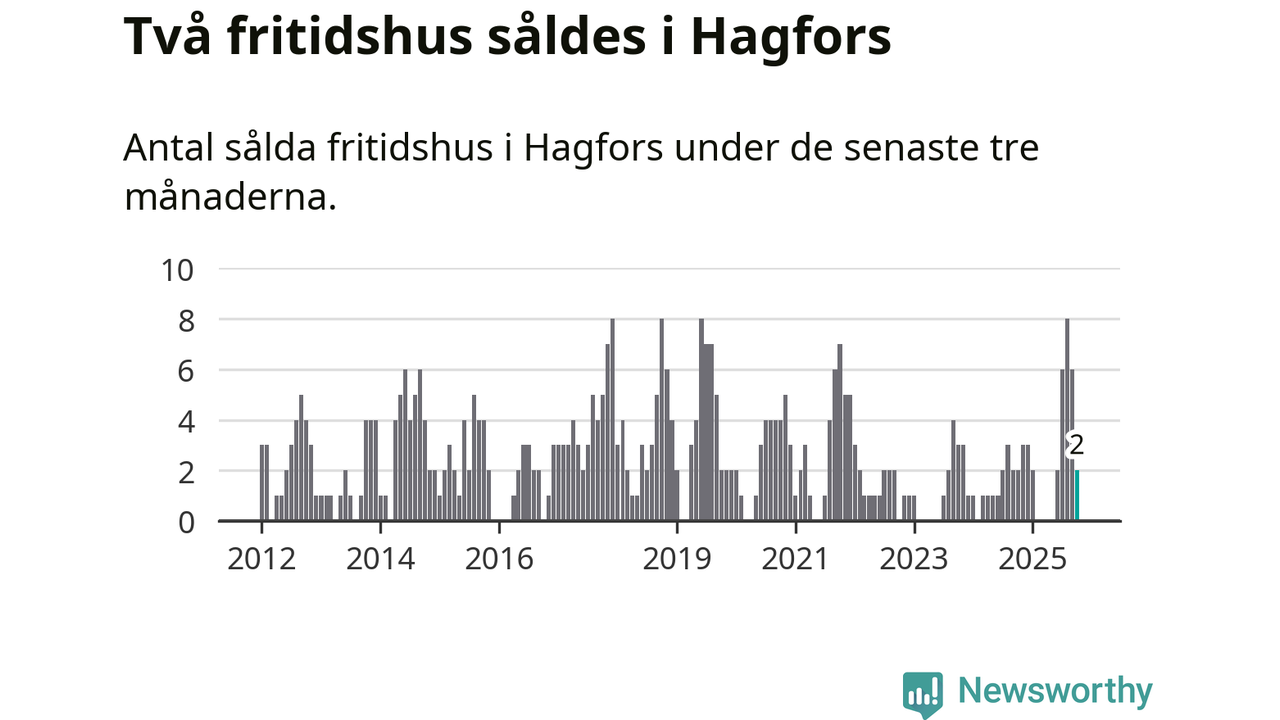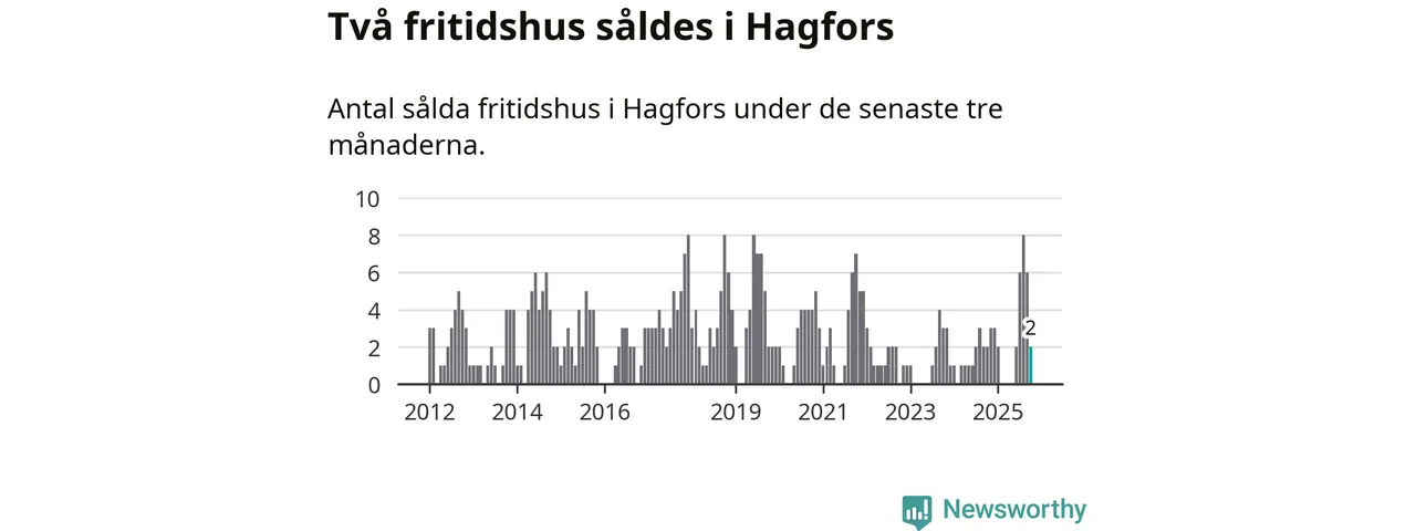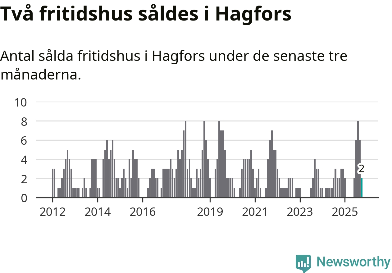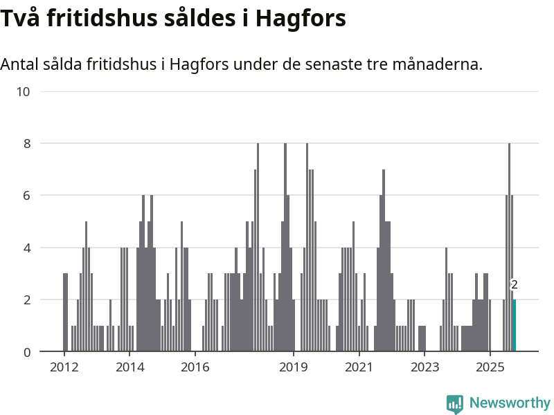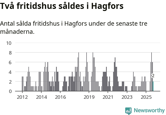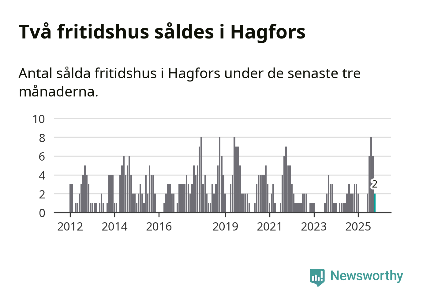 Mellan augusti och oktober gjordes sammanlagt två affärer med fritidshus i Hagfors kommun. Det är lika många affärer som vid motsvarande tid i fjol.