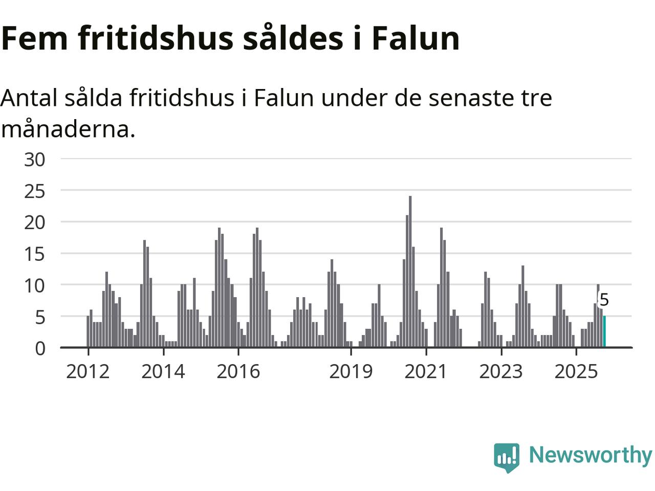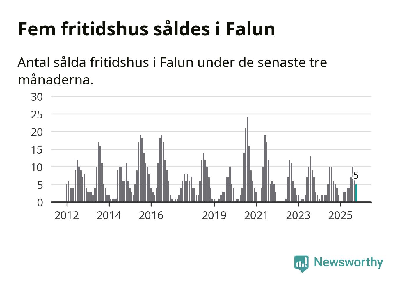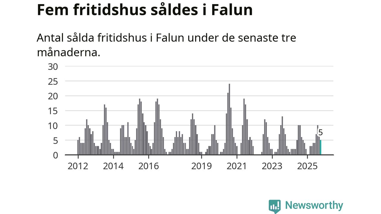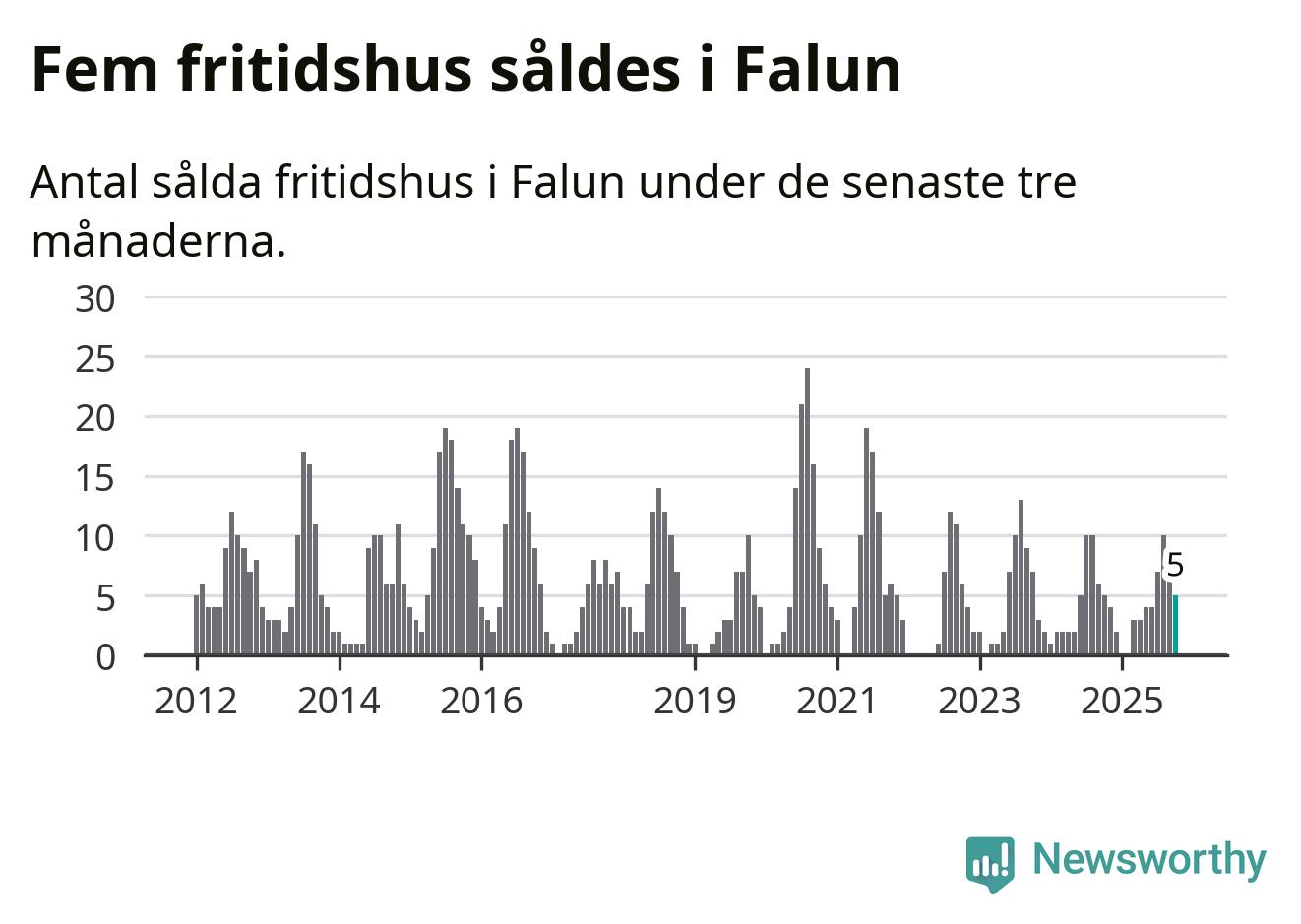 Mellan augusti och oktober gjordes sammanlagt fem affärer med fritidshus i Falu kommun. Det är lika många affärer som vid motsvarande tid i fjol.