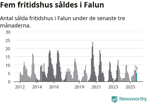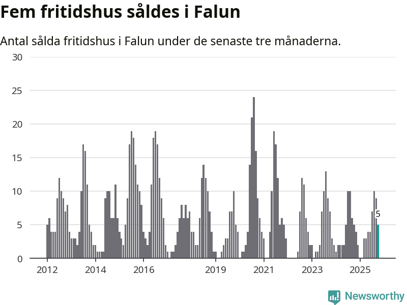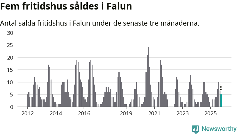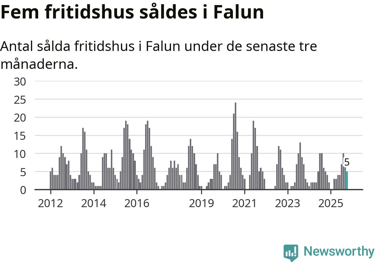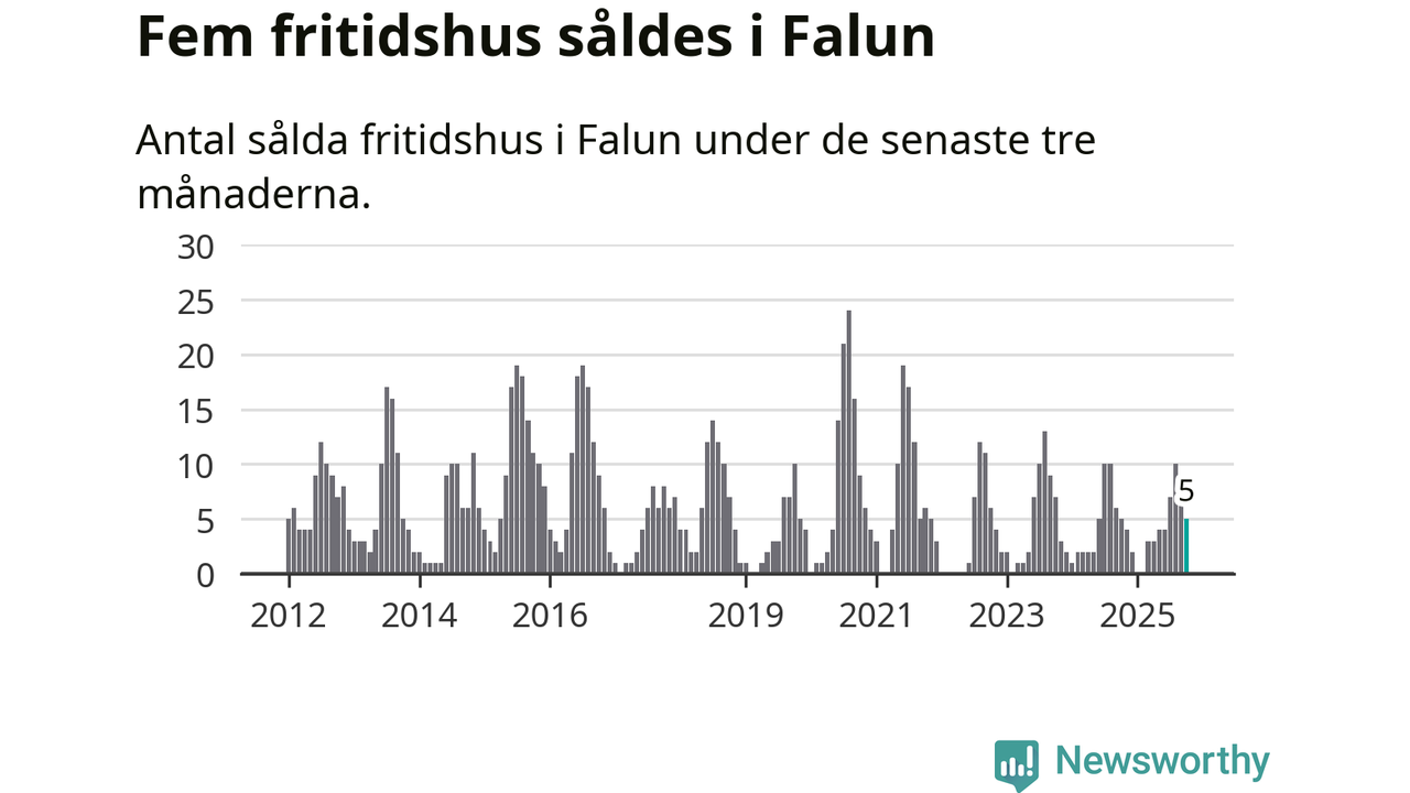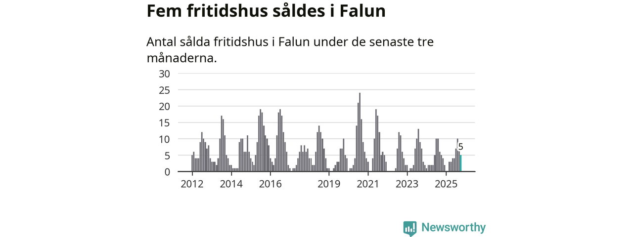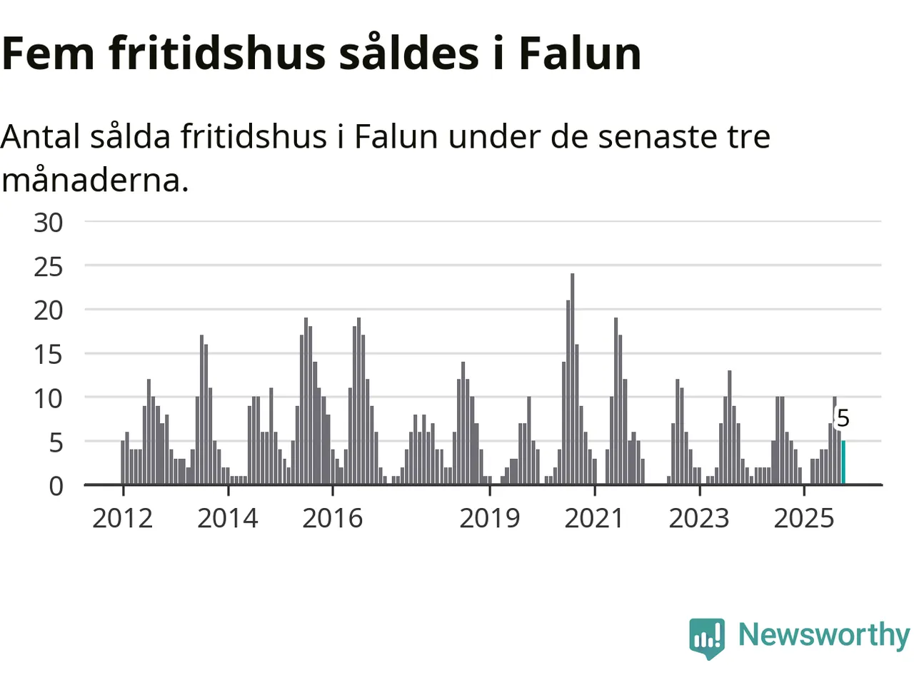 Mellan augusti och oktober gjordes sammanlagt fem affärer med fritidshus i Falu kommun. Det är lika många affärer som vid motsvarande tid i fjol.