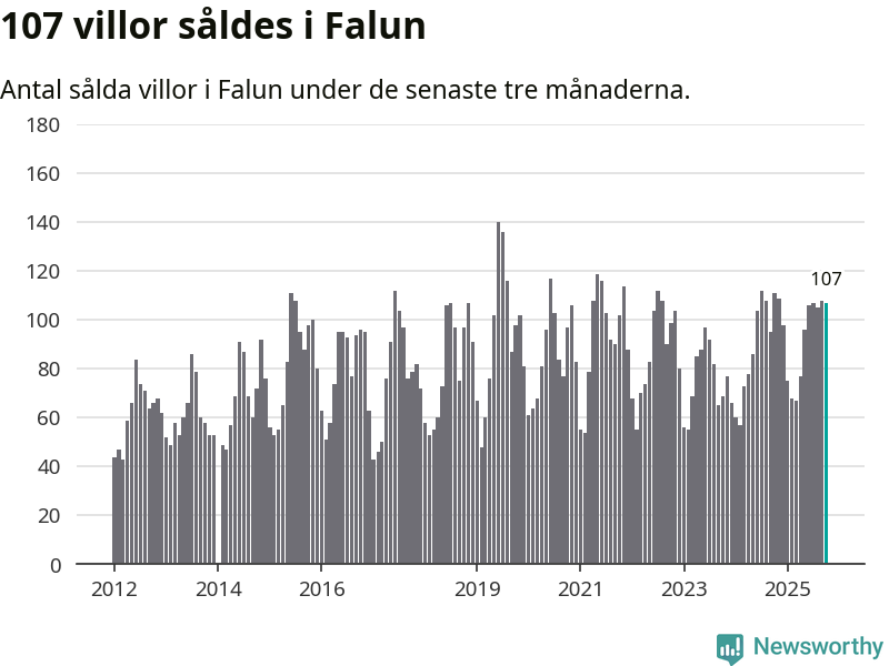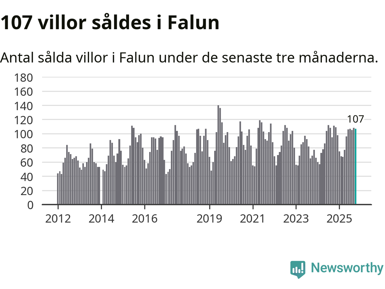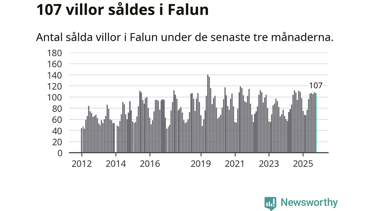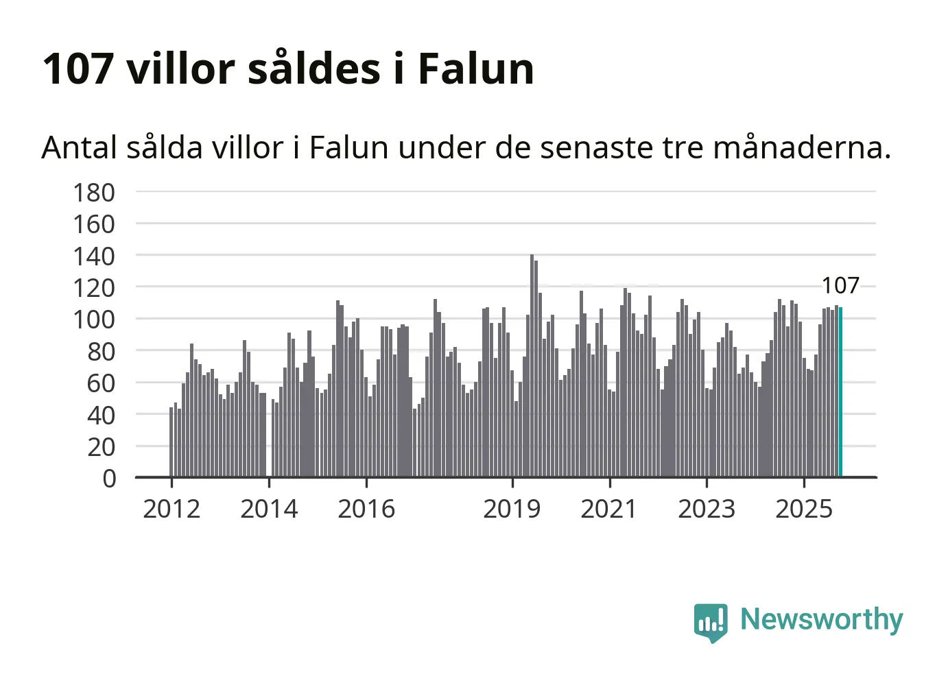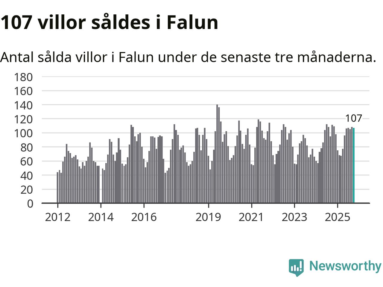 Sammanlagt såldes 107 villor i Falu kommun mellan augusti och oktober till ett genomsnittligt pris på 3,3 miljoner kronor. I fjol gjordes 111 affärer vid den här tiden på året.