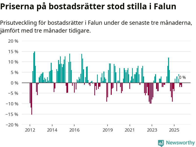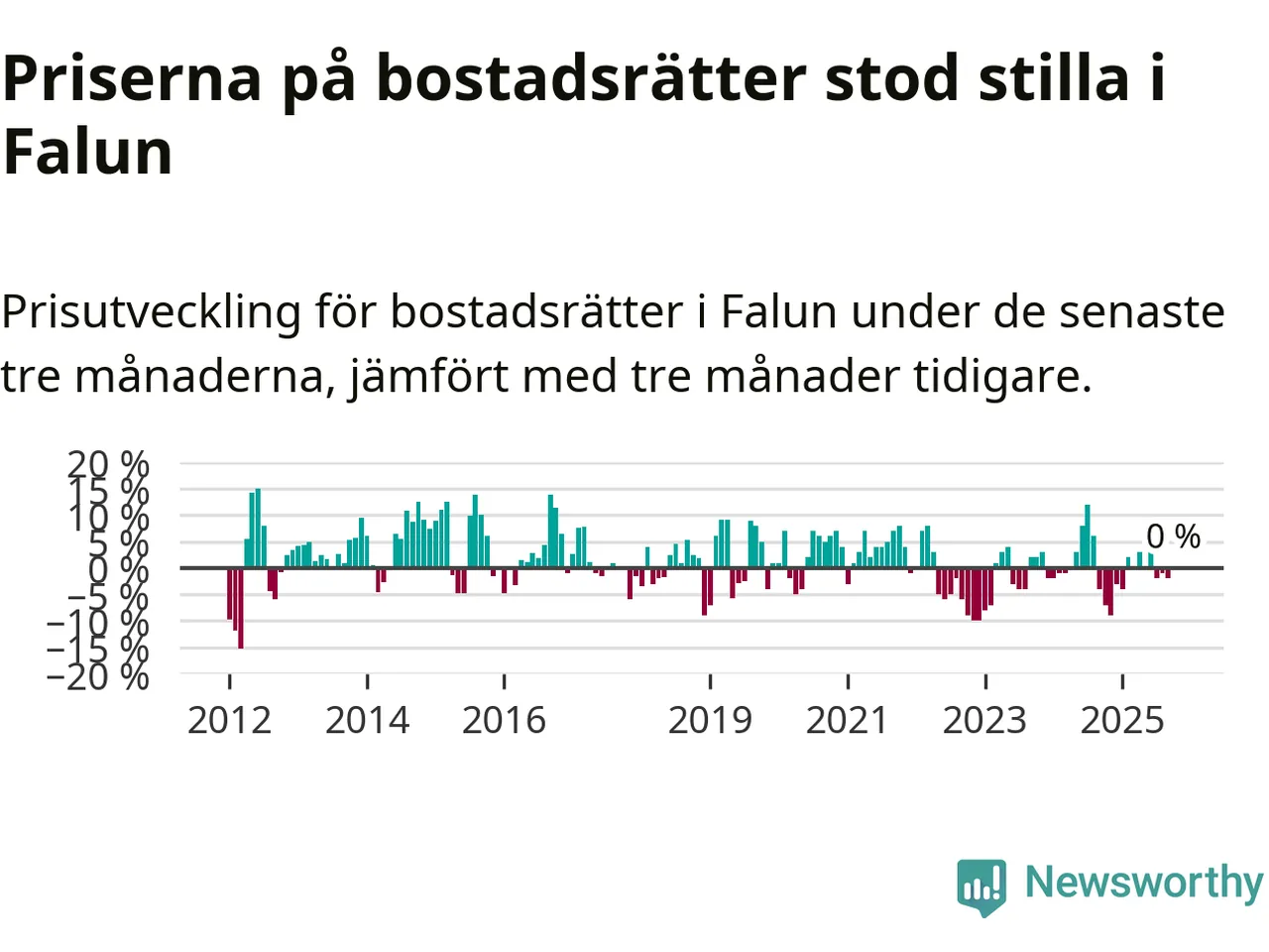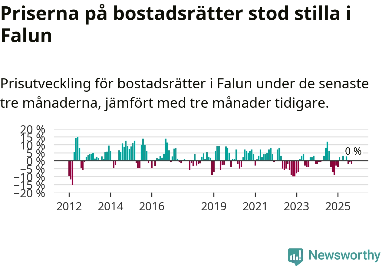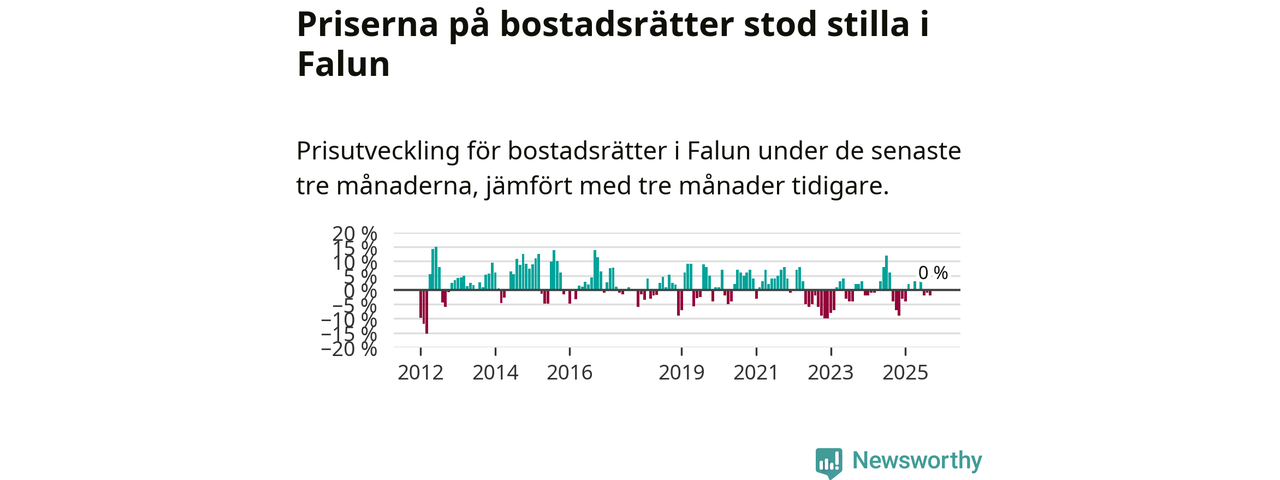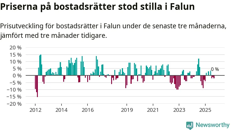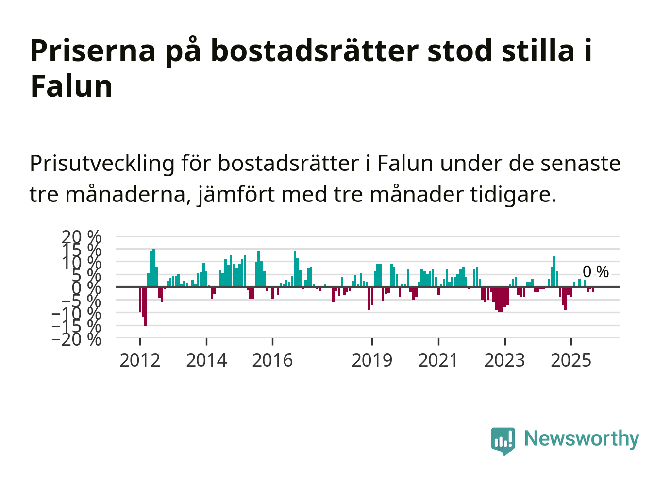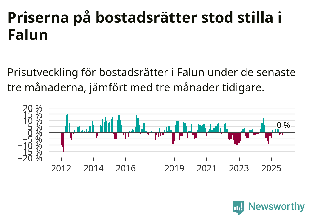 Priserna på bostadsrätter står i stort sett stilla i Falu kommun. Medelpriset på de på försäljningarna under de senaste tre månaderna låg på samma nivå som för tre månader sedan.