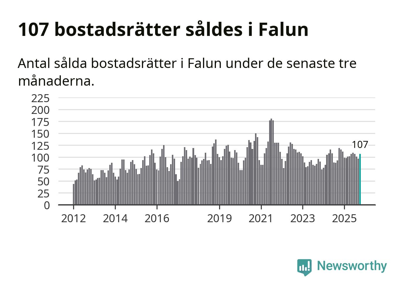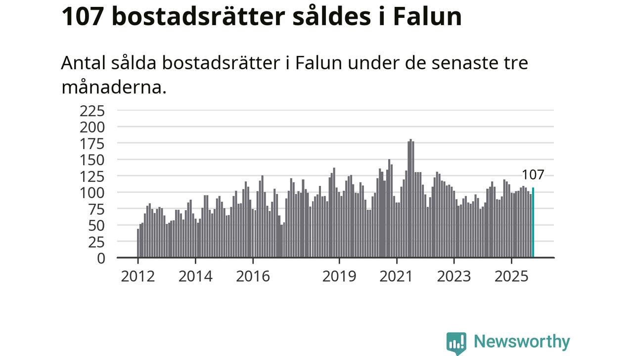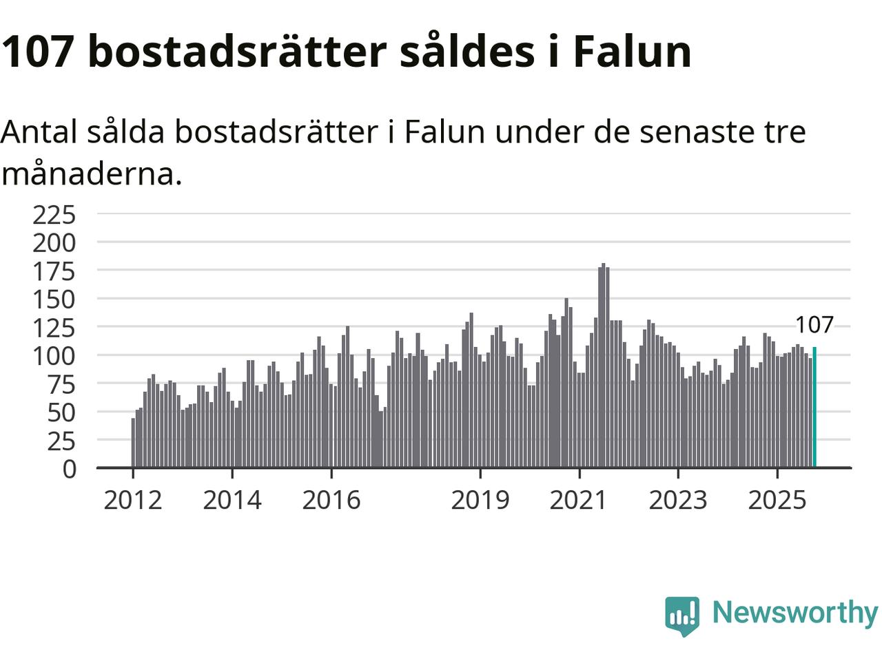 Sammanlagt såldes 107 bostadsrätter i Falu kommun mellan augusti och oktober till ett genomsnittligt pris på 1,7 miljoner kronor. I fjol gjordes 119 affärer vid den här tiden på året.