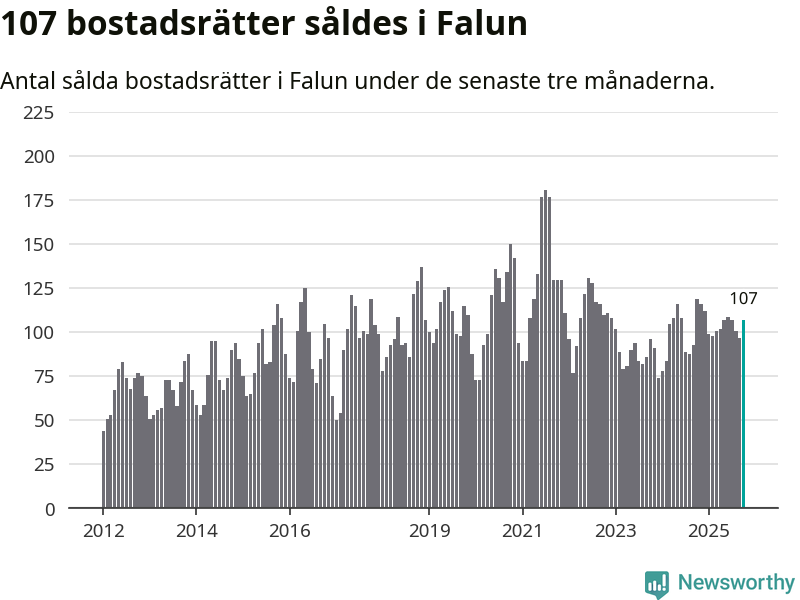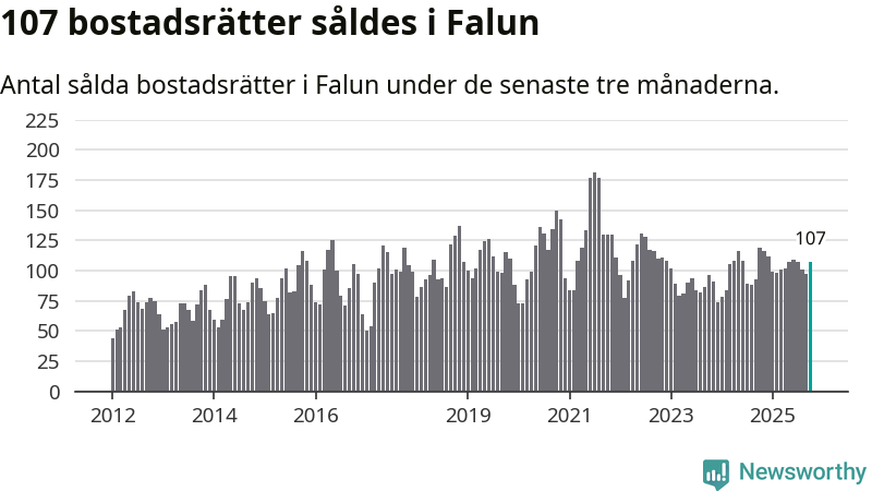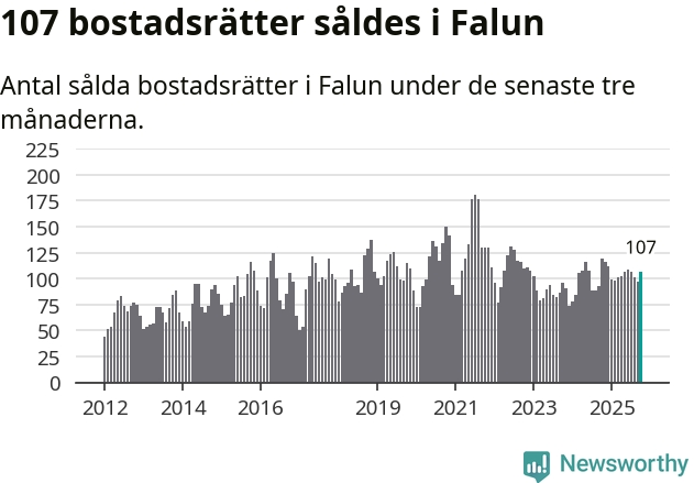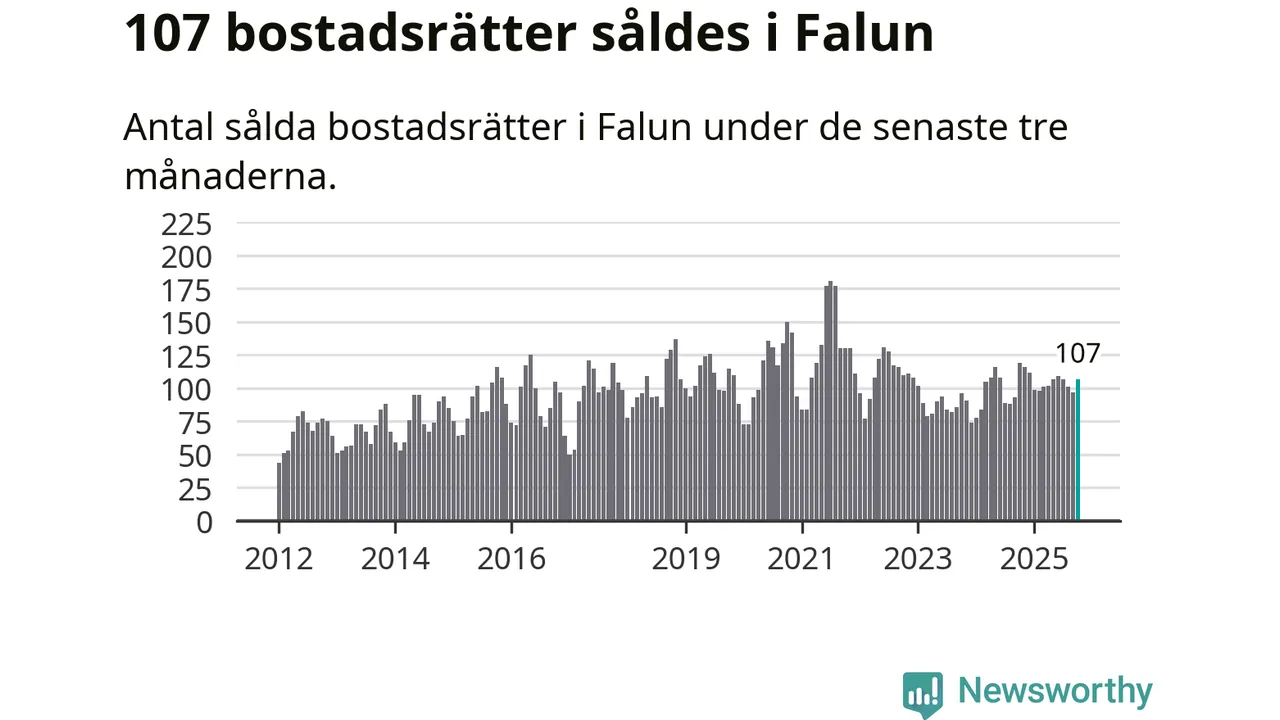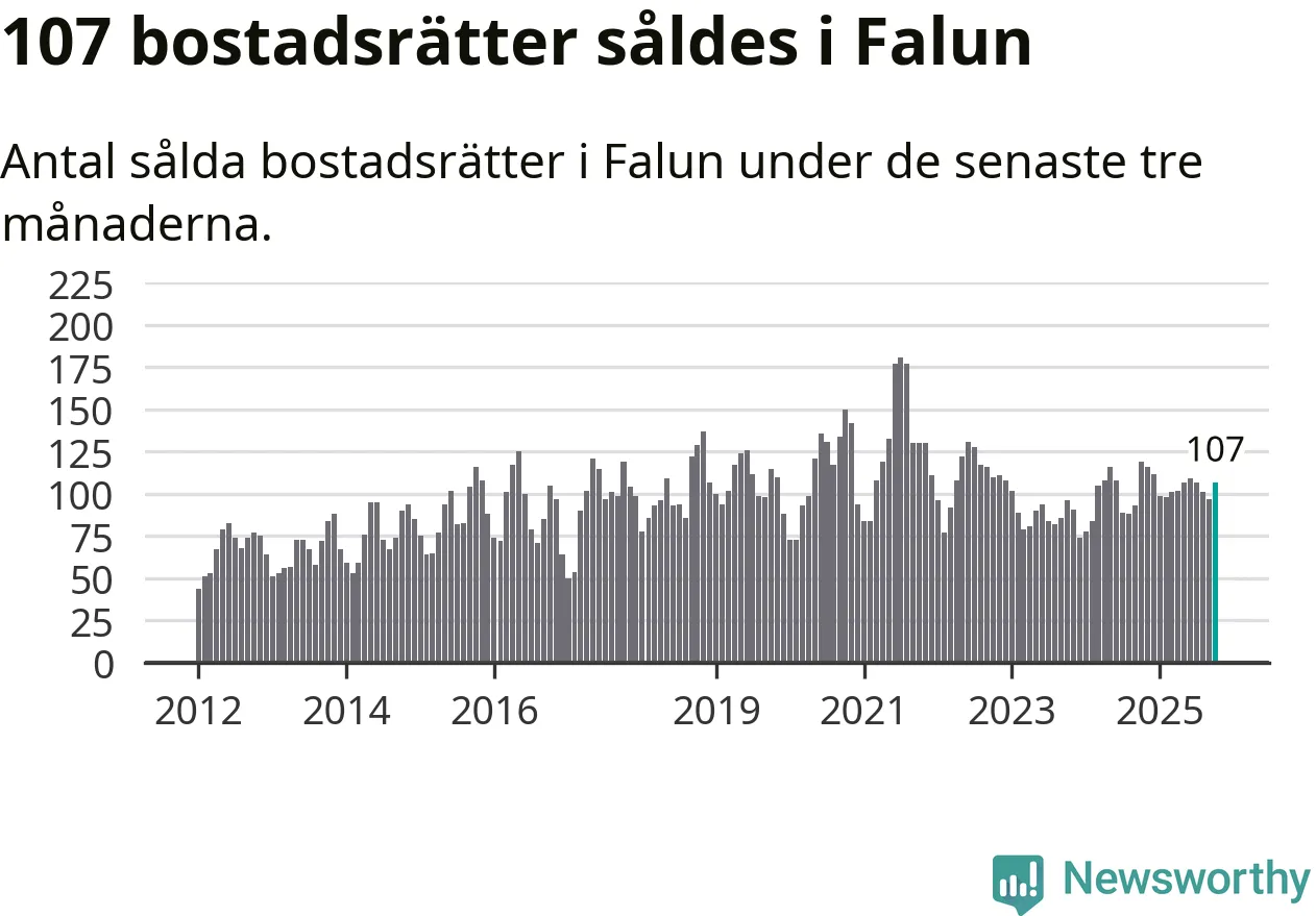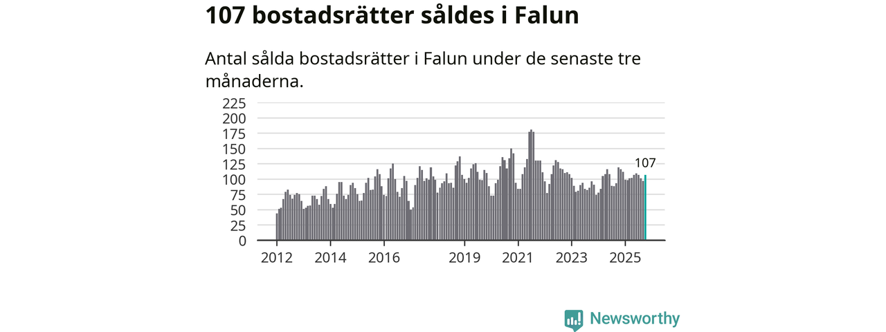 Sammanlagt såldes 107 bostadsrätter i Falu kommun mellan augusti och oktober till ett genomsnittligt pris på 1,7 miljoner kronor. I fjol gjordes 119 affärer vid den här tiden på året.