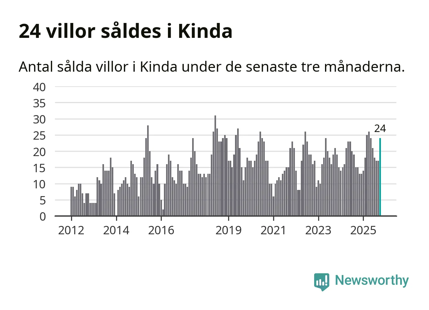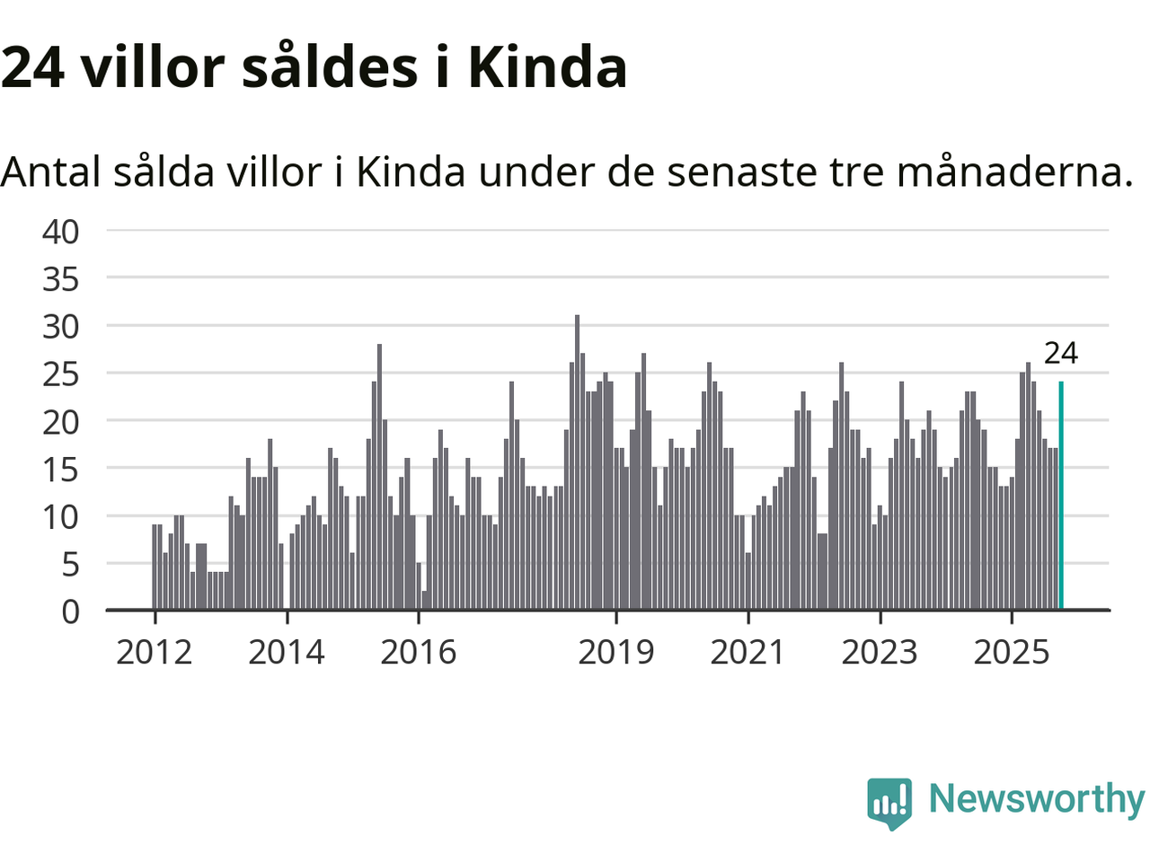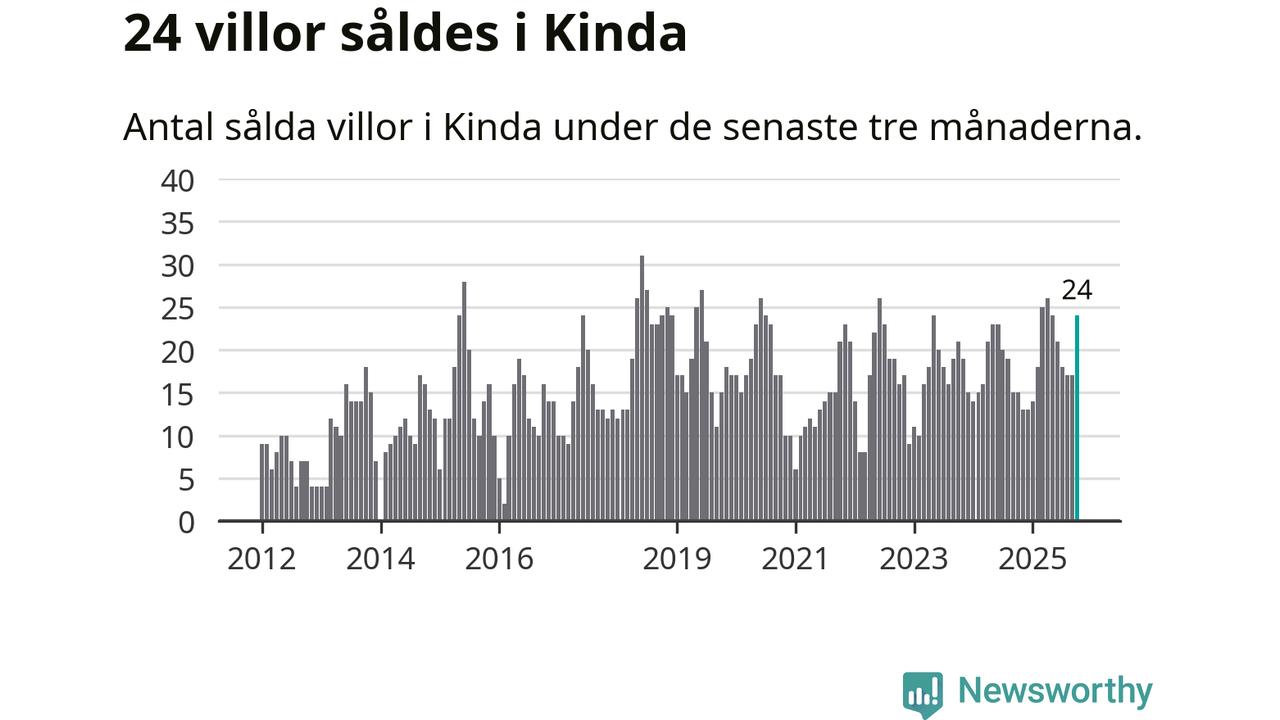 Mellan augusti och oktober gjordes sammanlagt 24 affärer med villor i Kinda kommun. Det kan jämföras med 15 vid motsvarande tid i fjol.