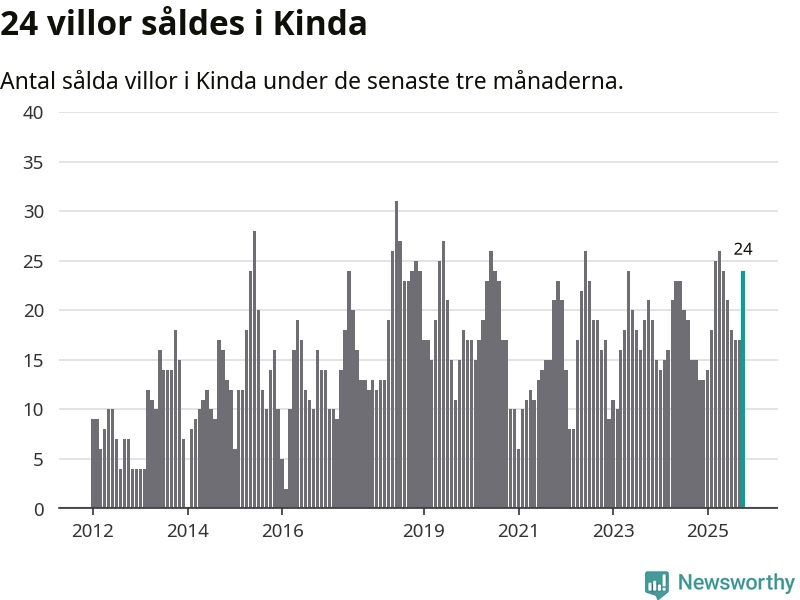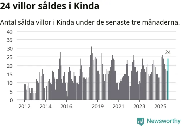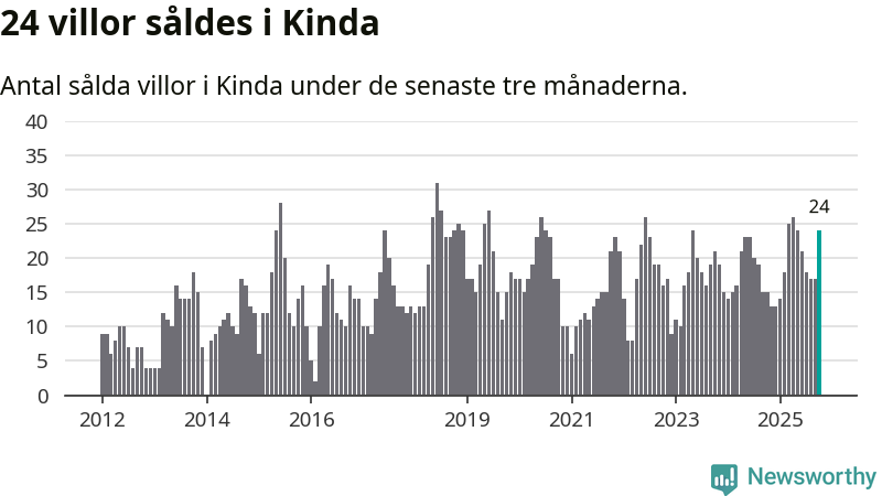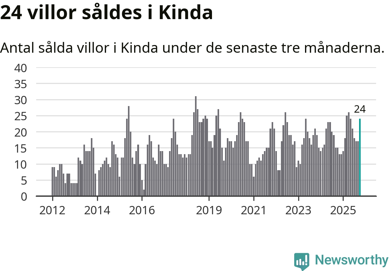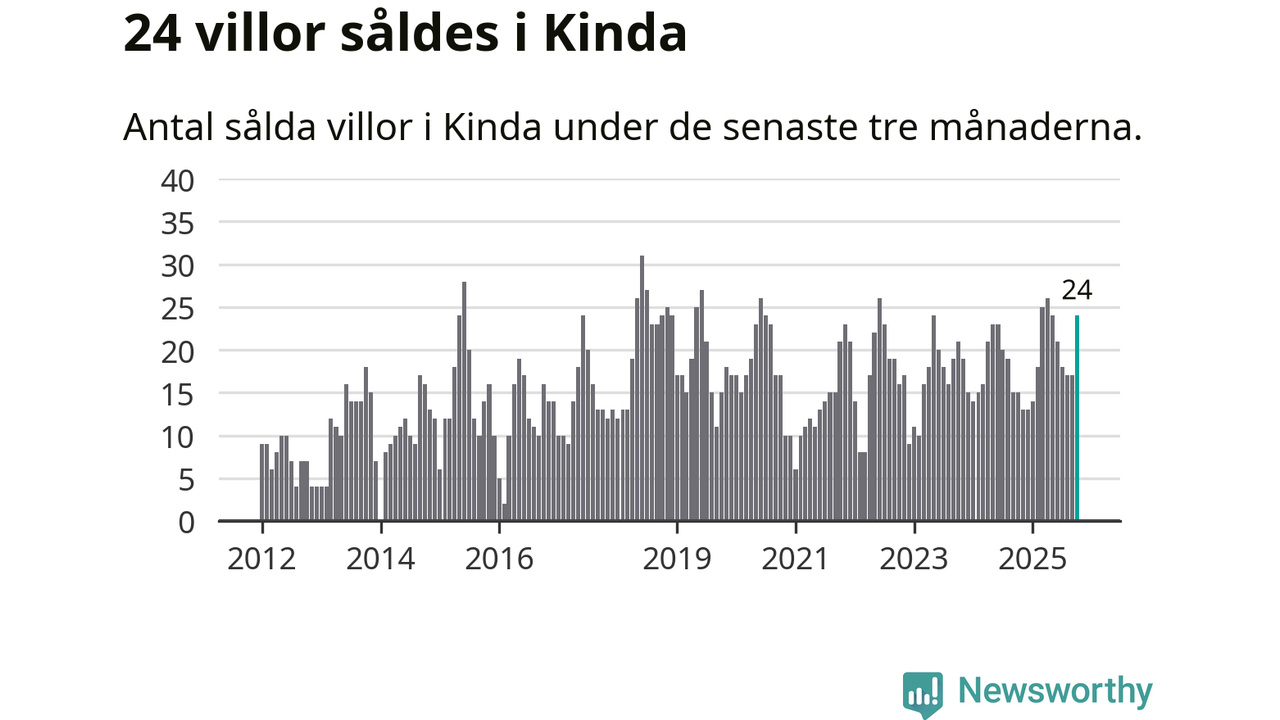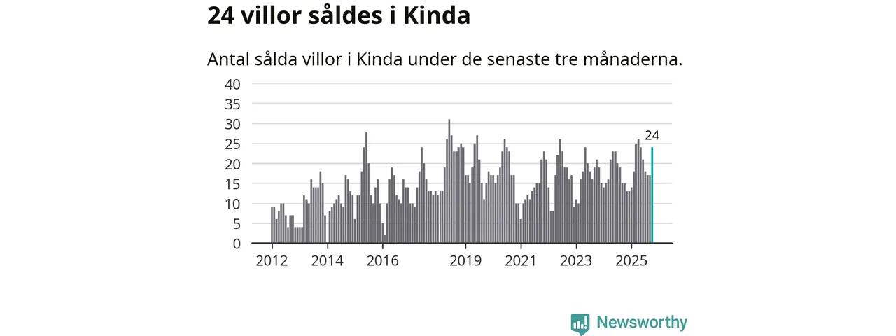 Mellan augusti och oktober gjordes sammanlagt 24 affärer med villor i Kinda kommun. Det kan jämföras med 15 vid motsvarande tid i fjol.