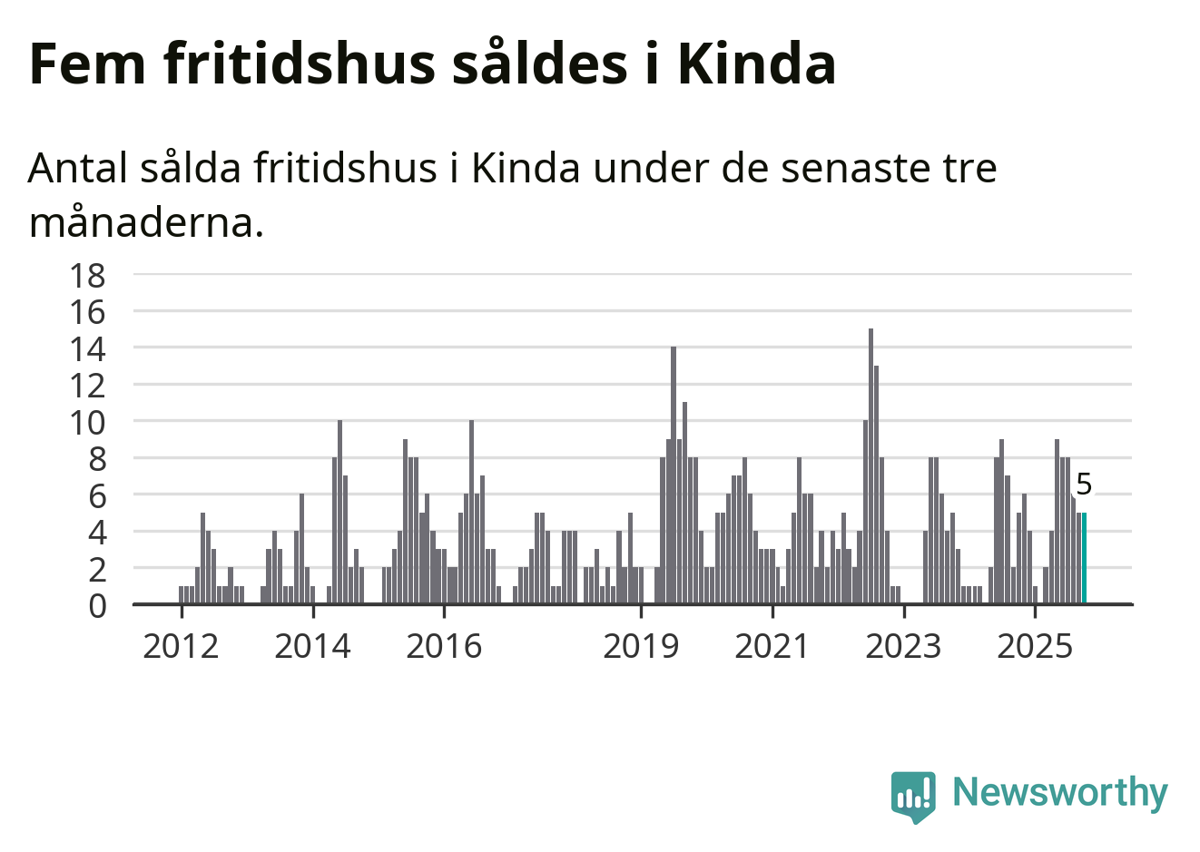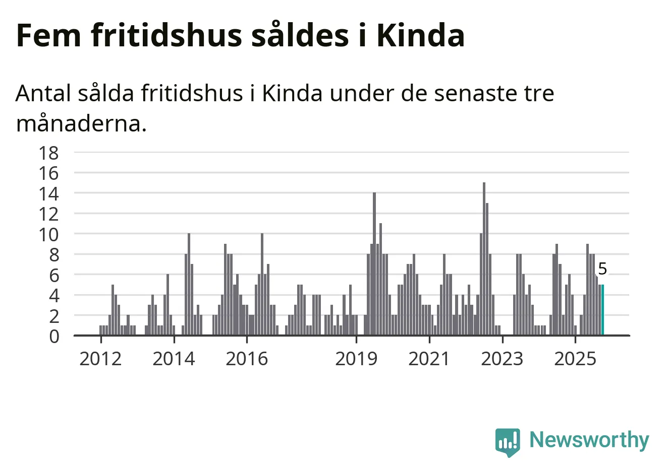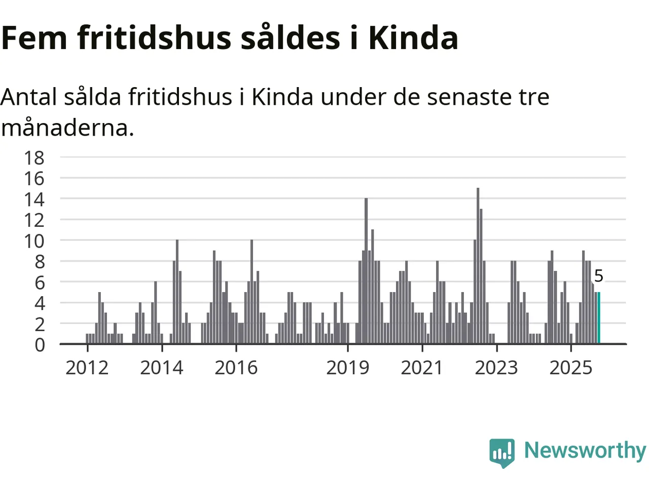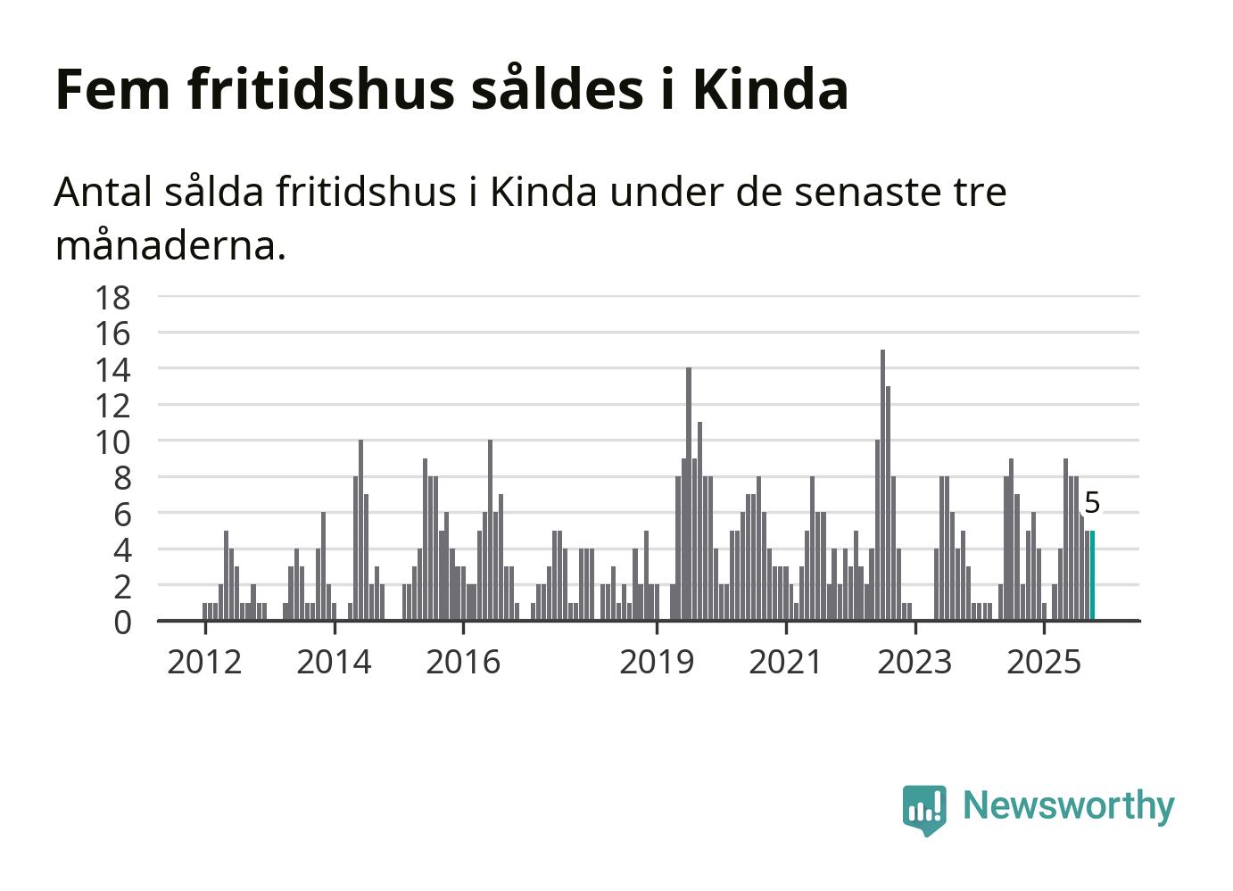 Mellan augusti och oktober gjordes sammanlagt fem affärer med fritidshus i Kinda kommun. Det är lika många affärer som vid motsvarande tid i fjol.