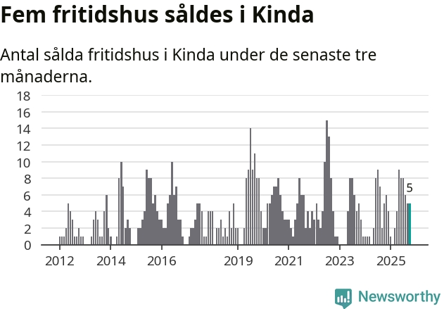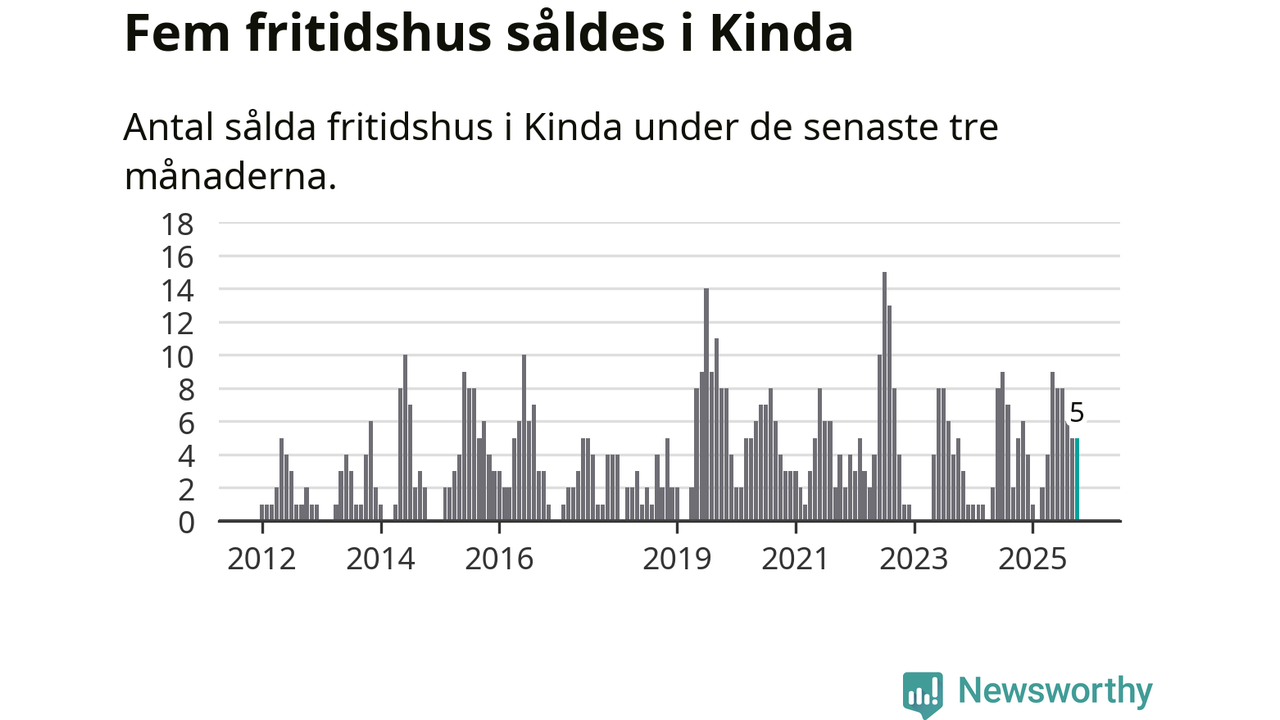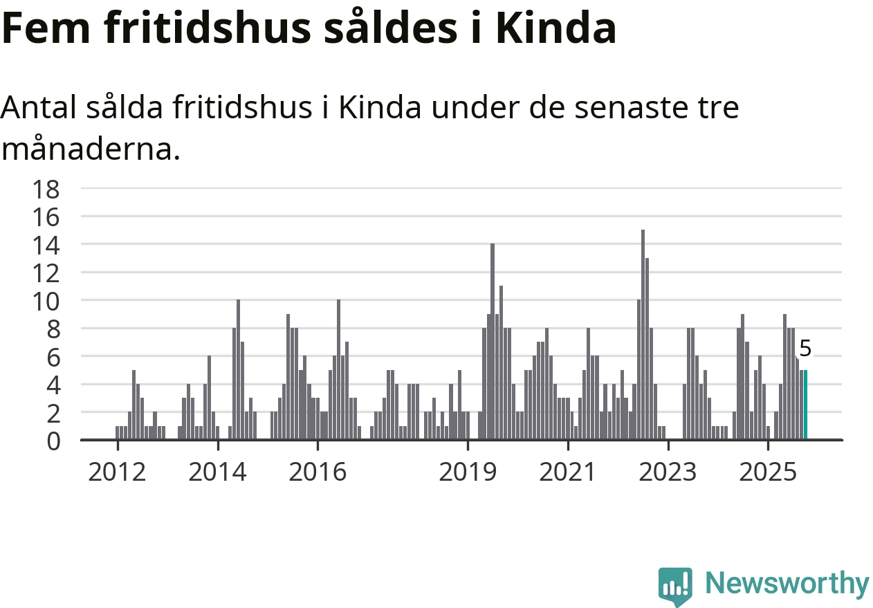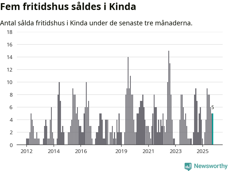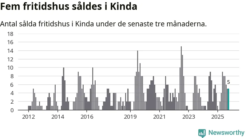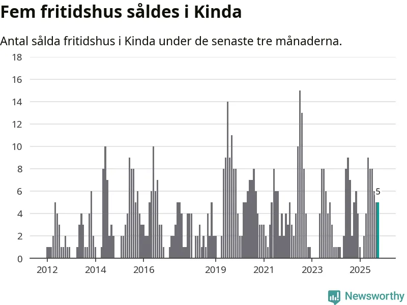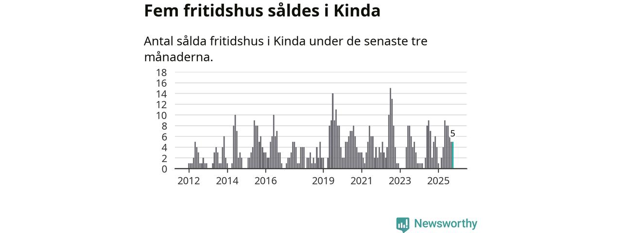 Mellan augusti och oktober gjordes sammanlagt fem affärer med fritidshus i Kinda kommun. Det är lika många affärer som vid motsvarande tid i fjol.