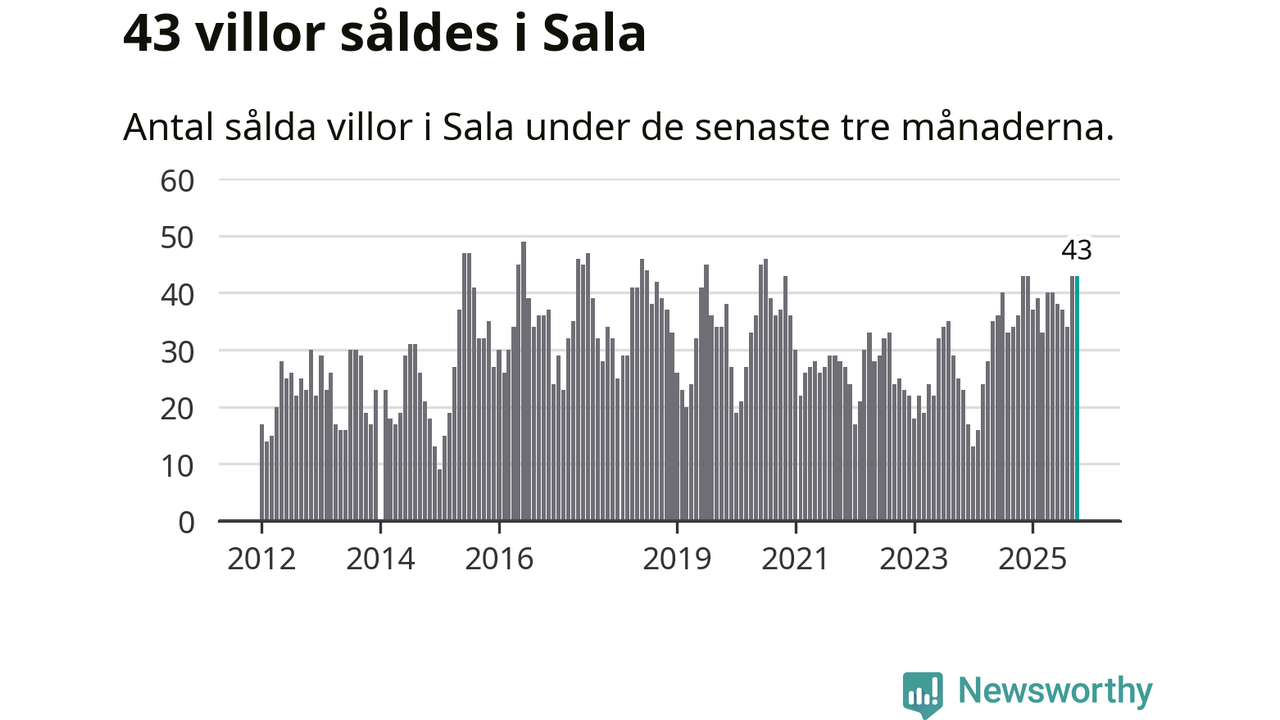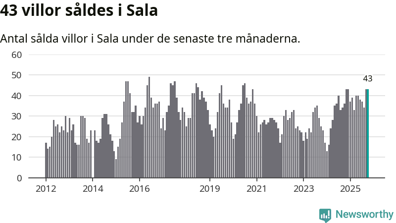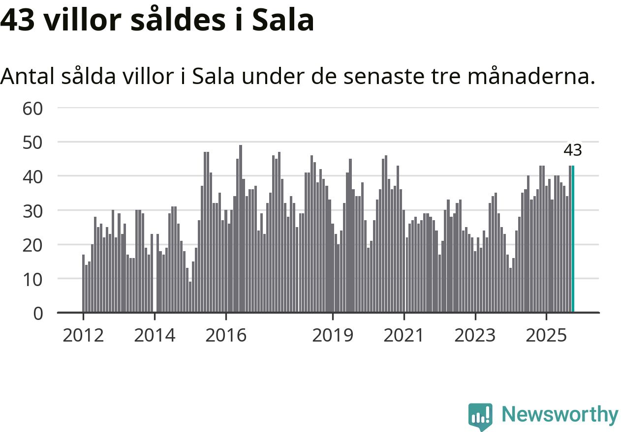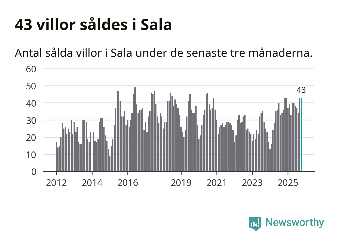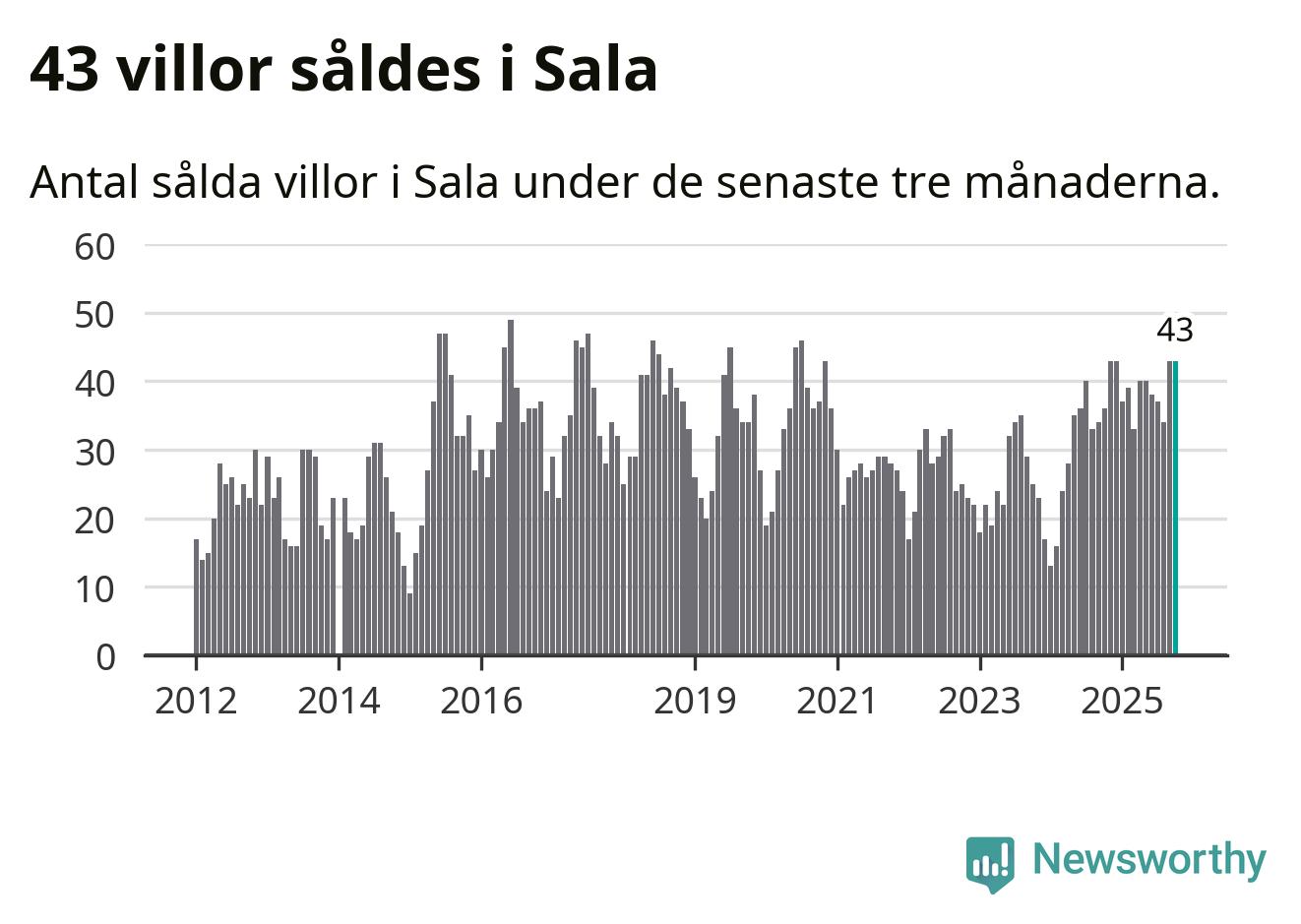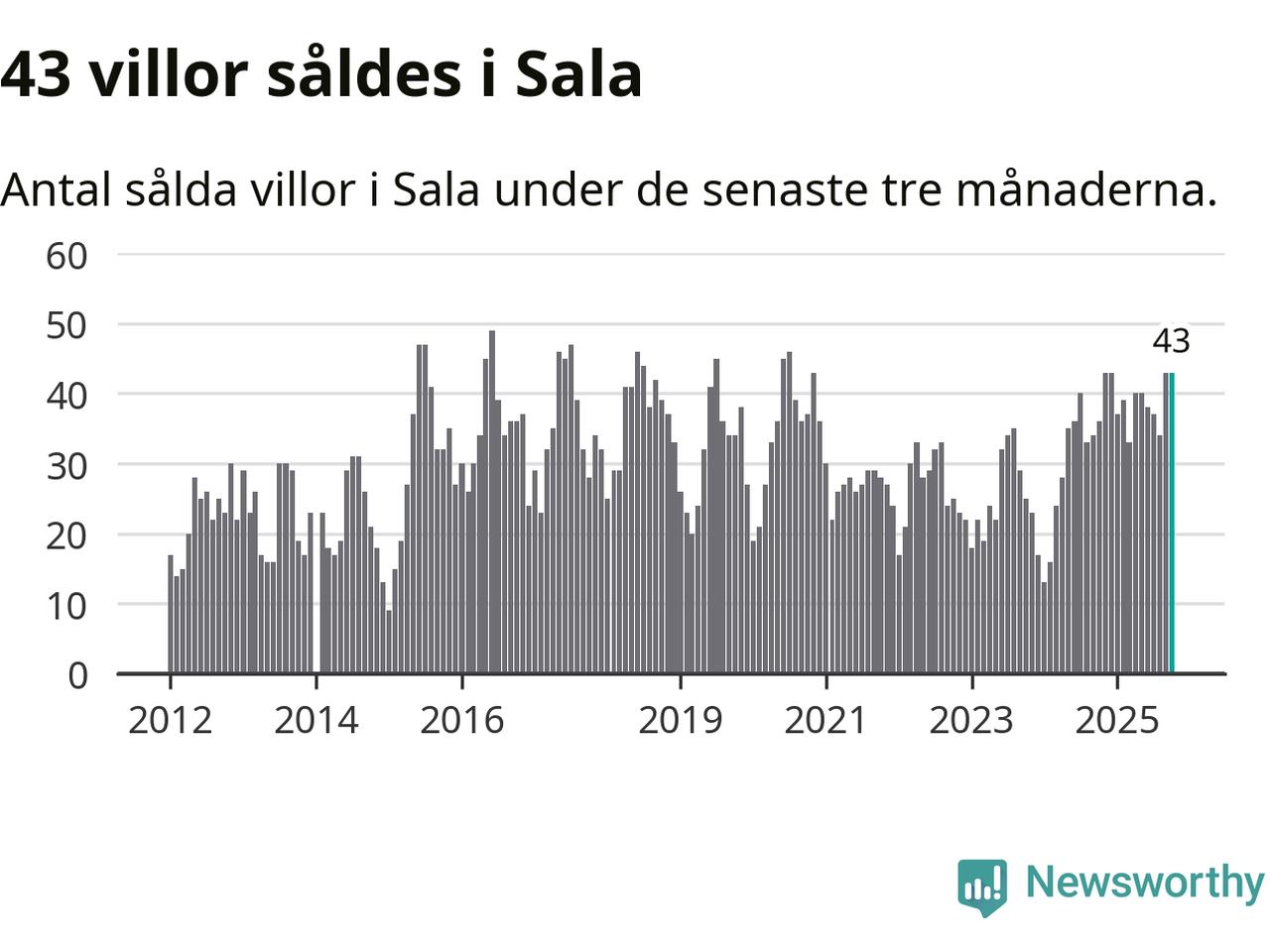 Mellan augusti och oktober gjordes sammanlagt 43 affärer med villor i Sala kommun. Det kan jämföras med 36 vid motsvarande tid i fjol.