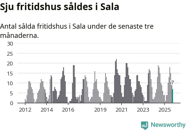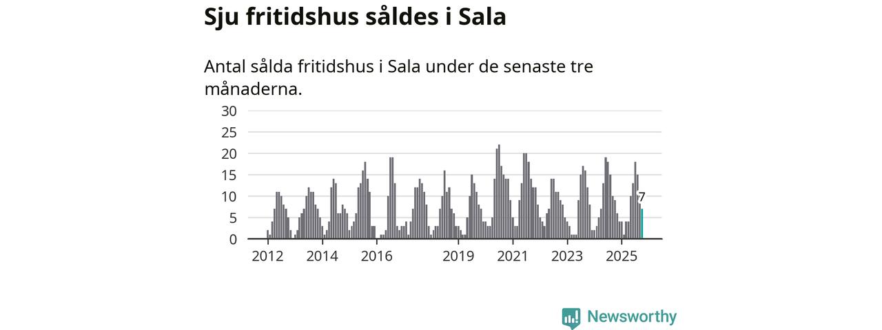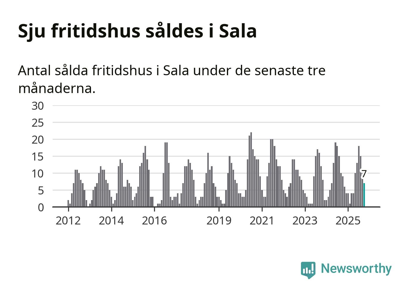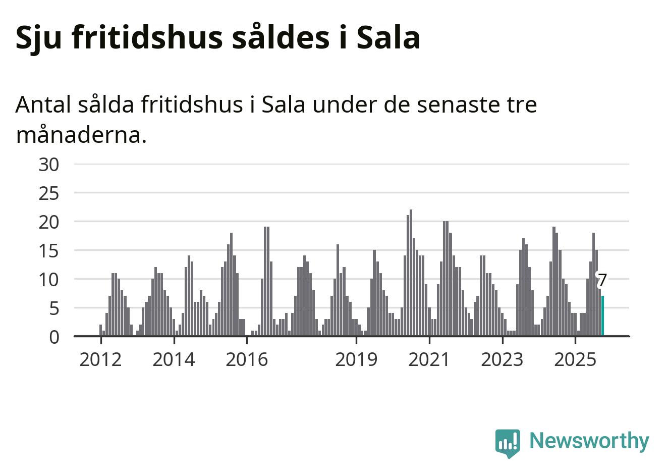 Sammanlagt såldes sju fritidshus i Sala kommun mellan augusti och oktober till ett genomsnittligt pris på 1,4 miljoner kronor. I fjol gjordes nio affärer vid den här tiden på året.