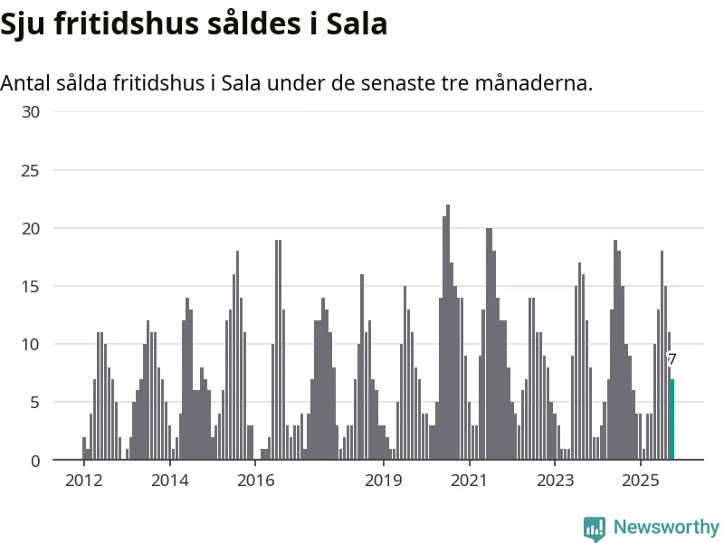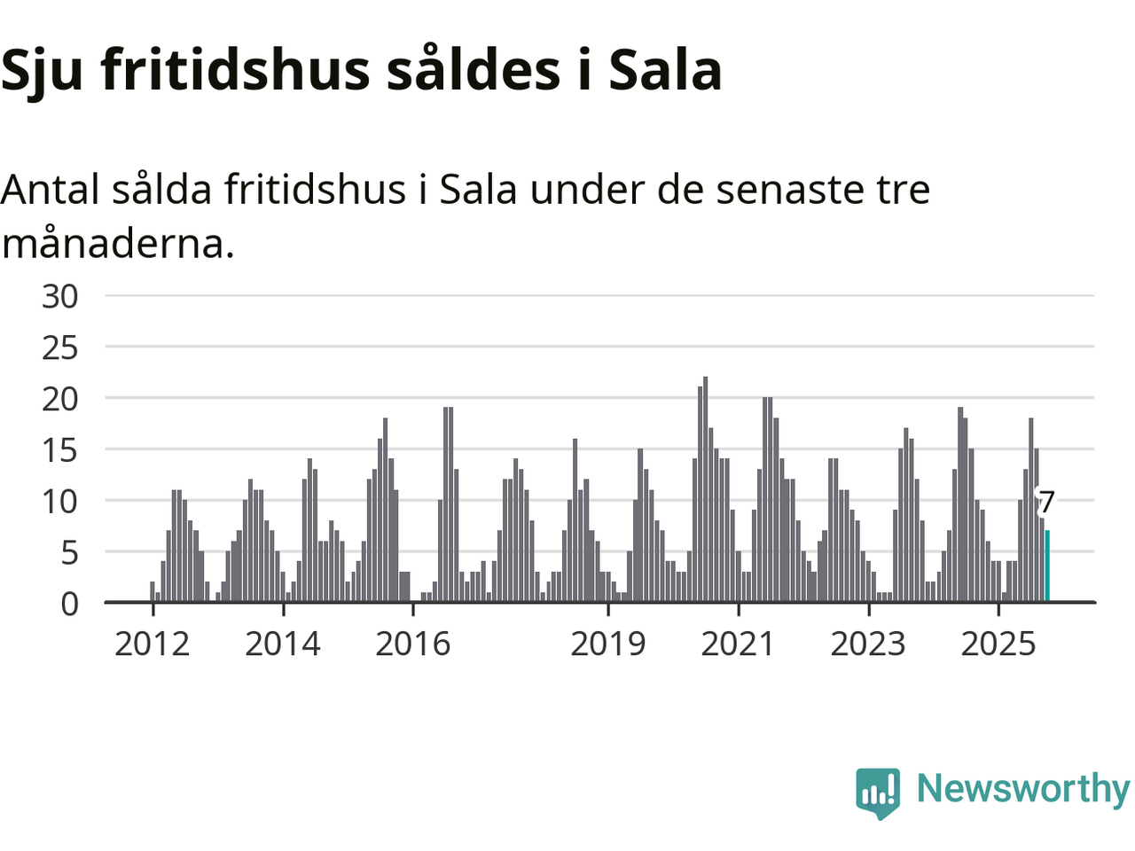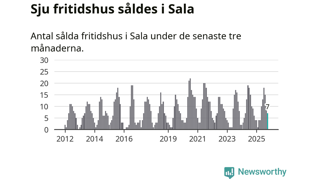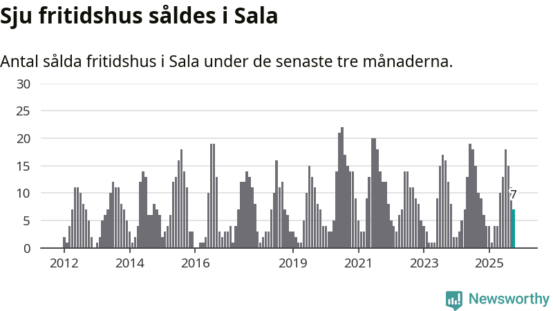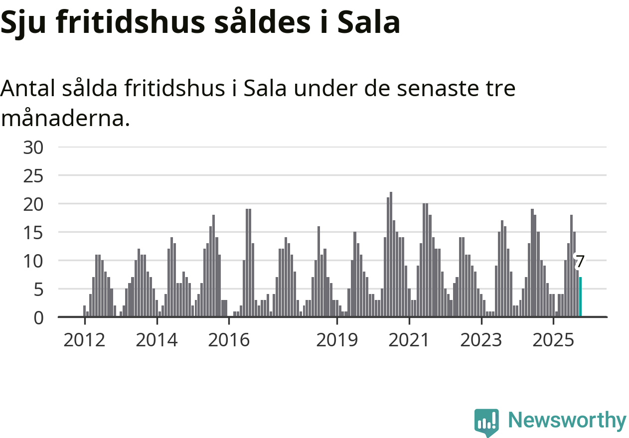 Sammanlagt såldes sju fritidshus i Sala kommun mellan augusti och oktober till ett genomsnittligt pris på 1,4 miljoner kronor. I fjol gjordes nio affärer vid den här tiden på året.