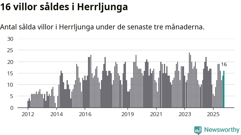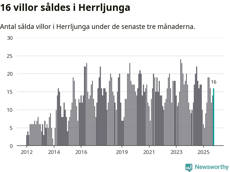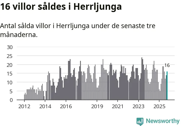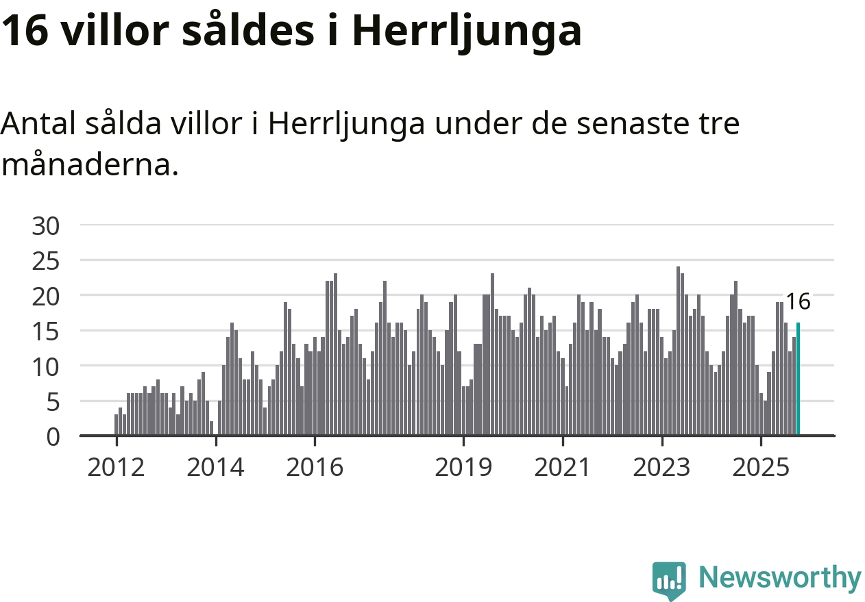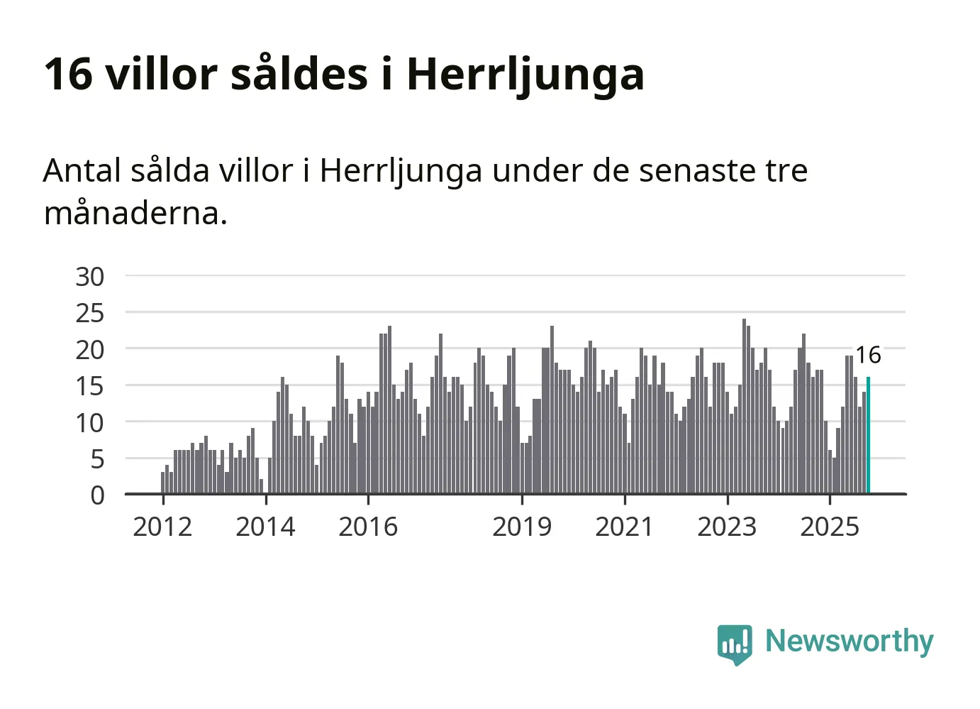 Mellan augusti och oktober gjordes sammanlagt 16 affärer med villor i Herrljunga kommun. Det kan jämföras med 17 vid motsvarande tid i fjol.