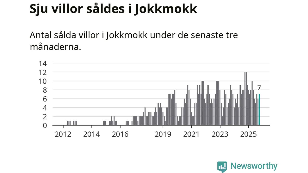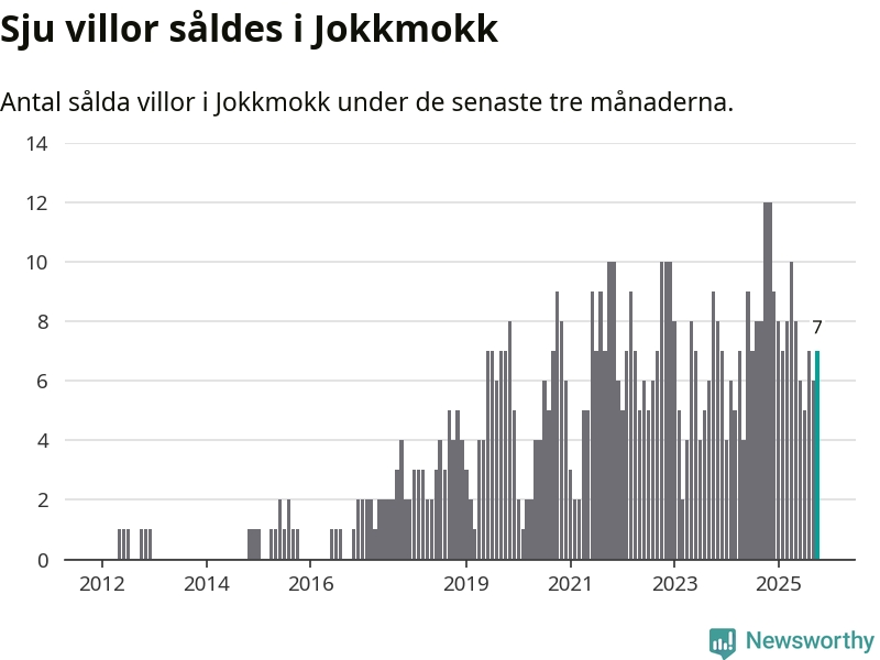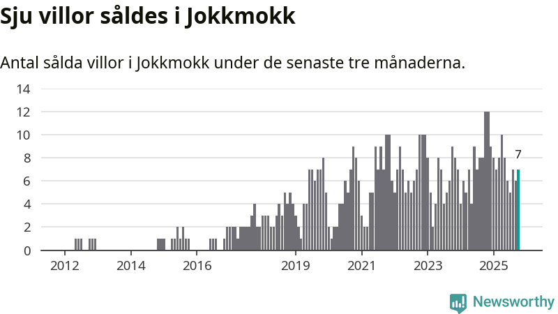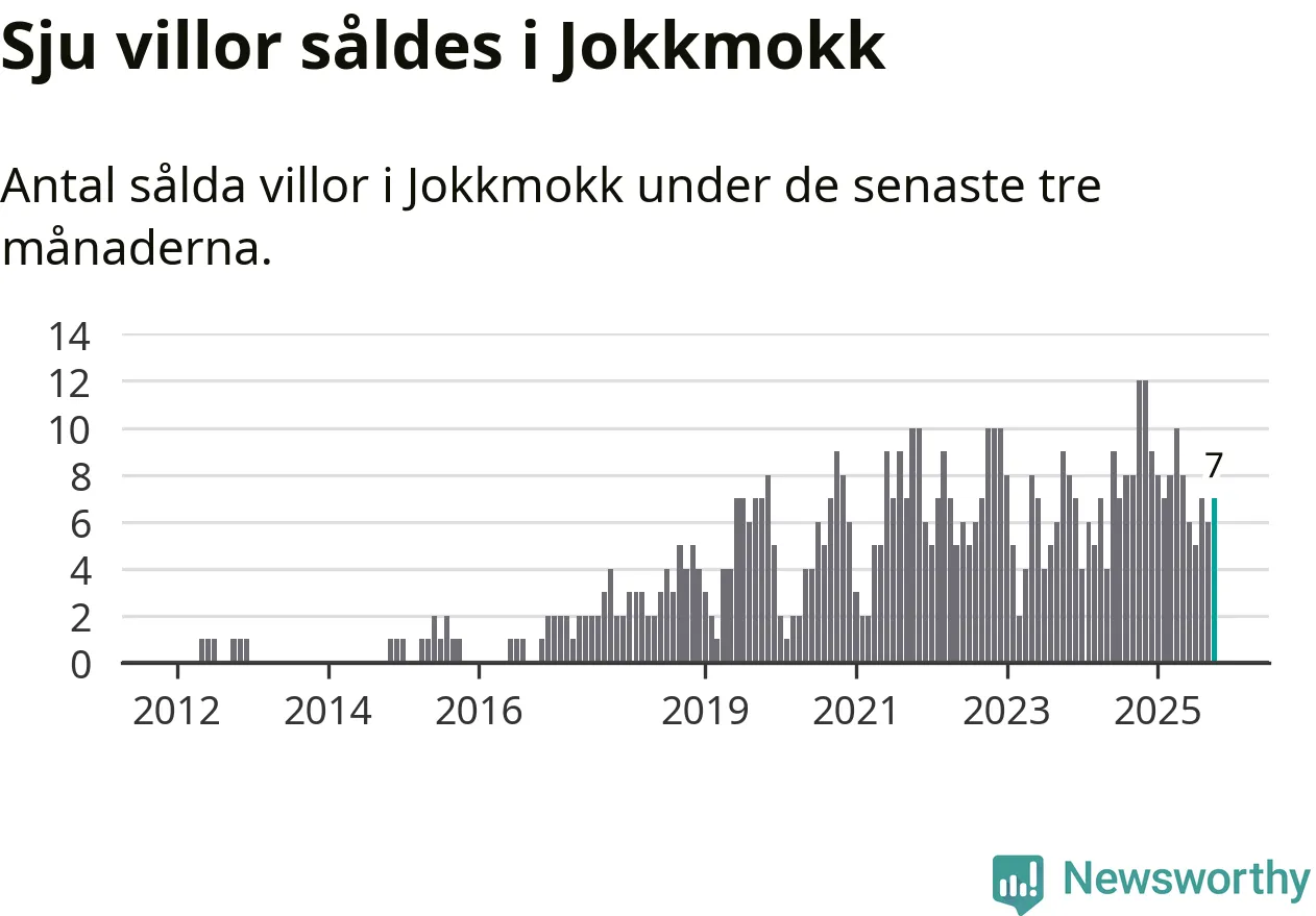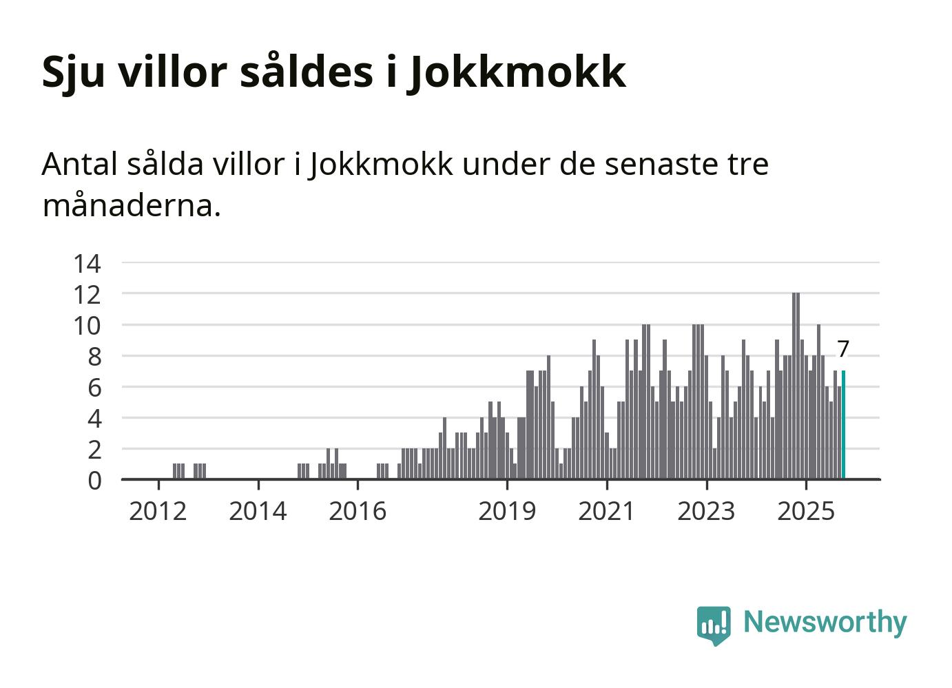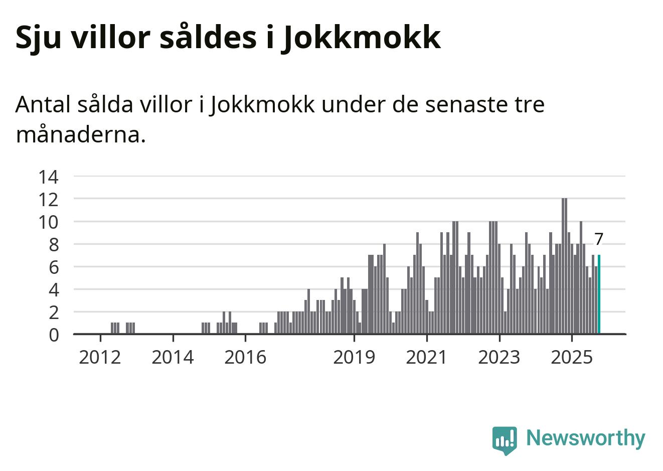 Mellan augusti och oktober gjordes sammanlagt sju affärer med villor i Jokkmokks kommun. Det kan jämföras med tolv vid motsvarande tid i fjol.