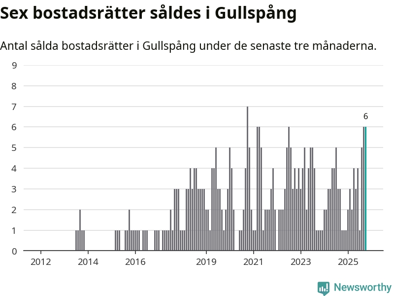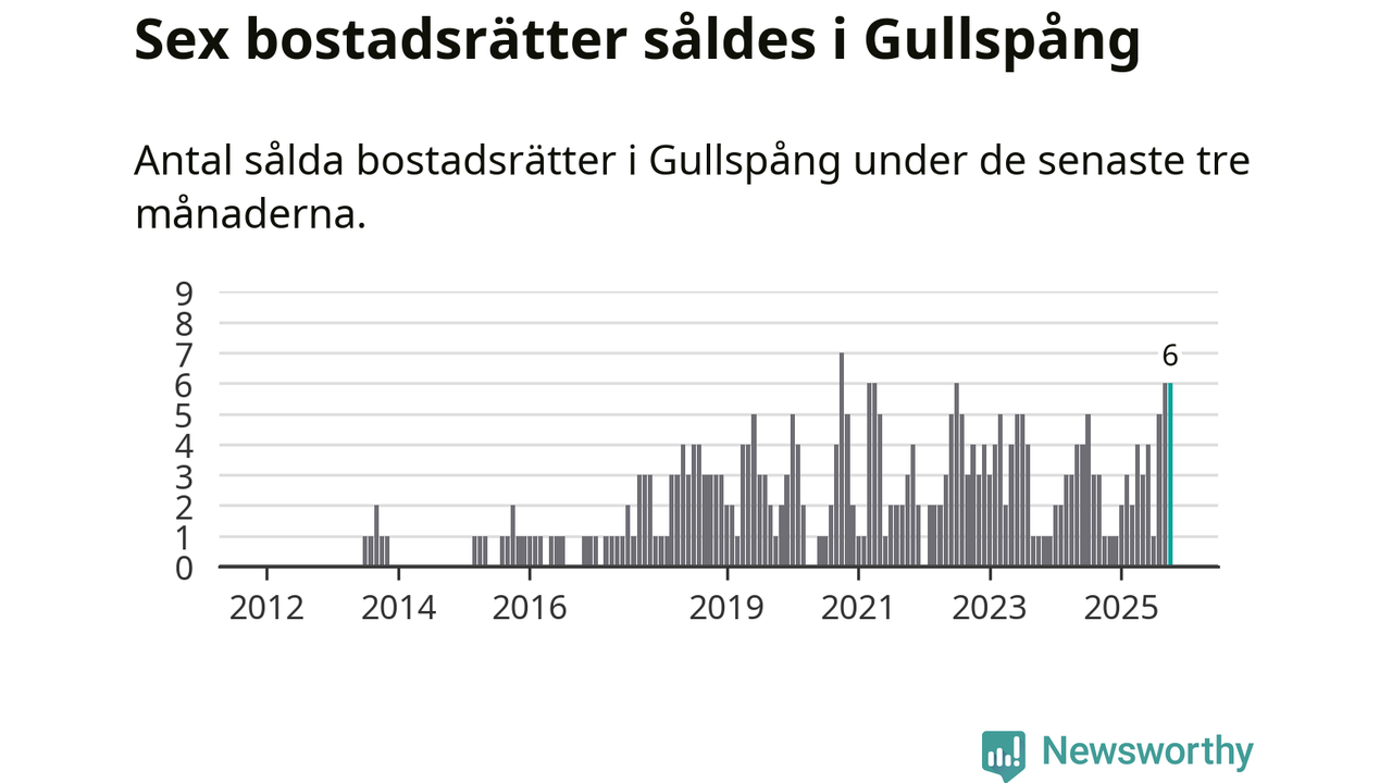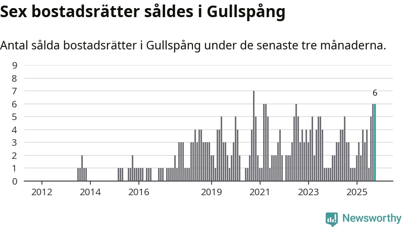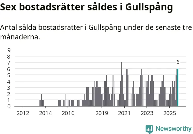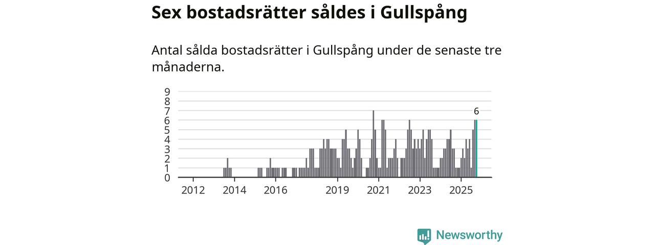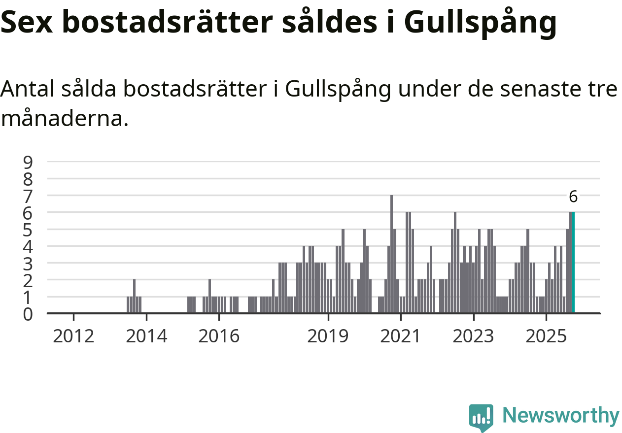 Mellan augusti och oktober gjordes sammanlagt sex affärer med bostadsrätter i Gullspångs kommun. Det kan jämföras med ett vid motsvarande tid i fjol.