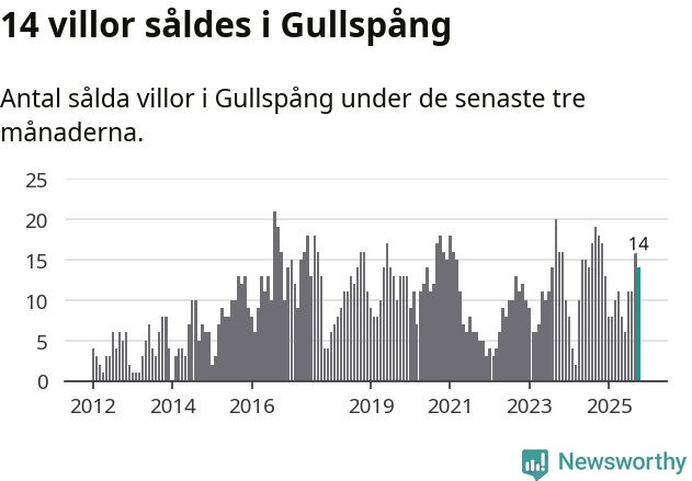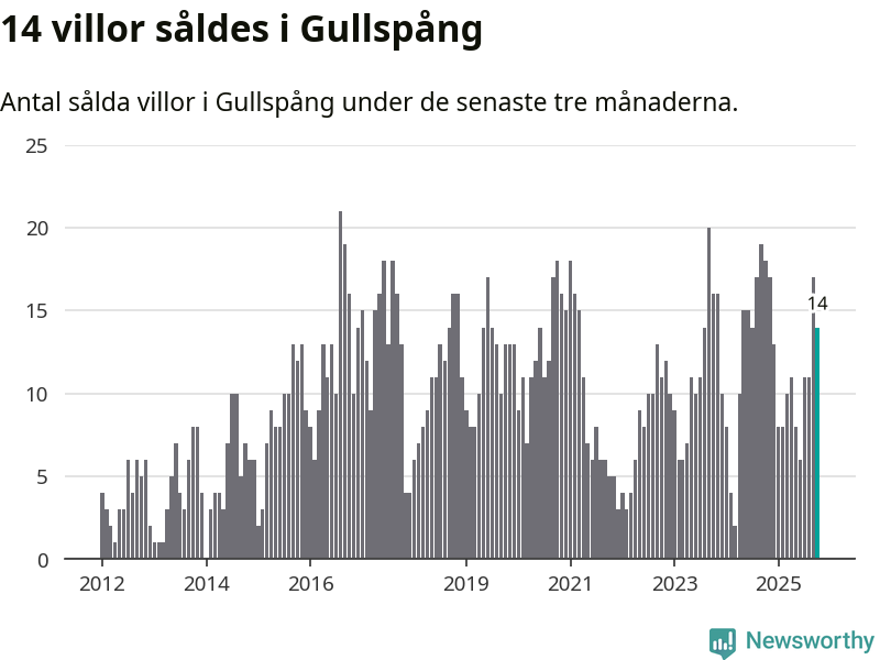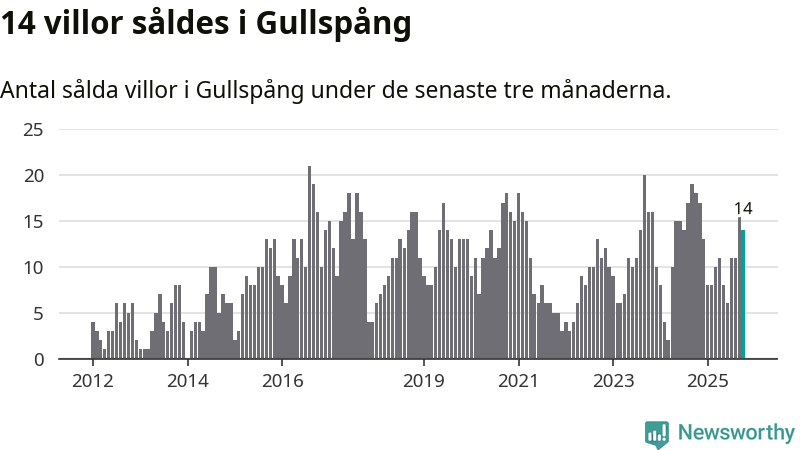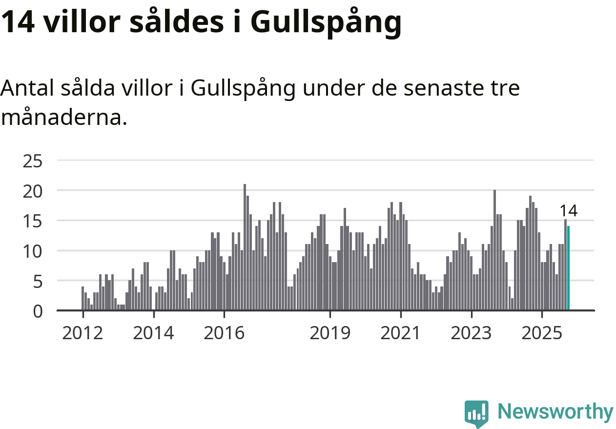 Mellan augusti och oktober gjordes sammanlagt 14 affärer med villor i Gullspångs kommun. Det kan jämföras med 18 vid motsvarande tid i fjol.