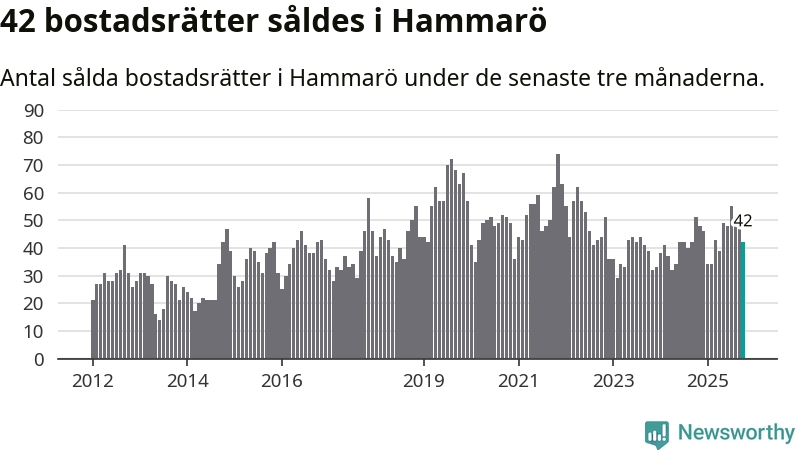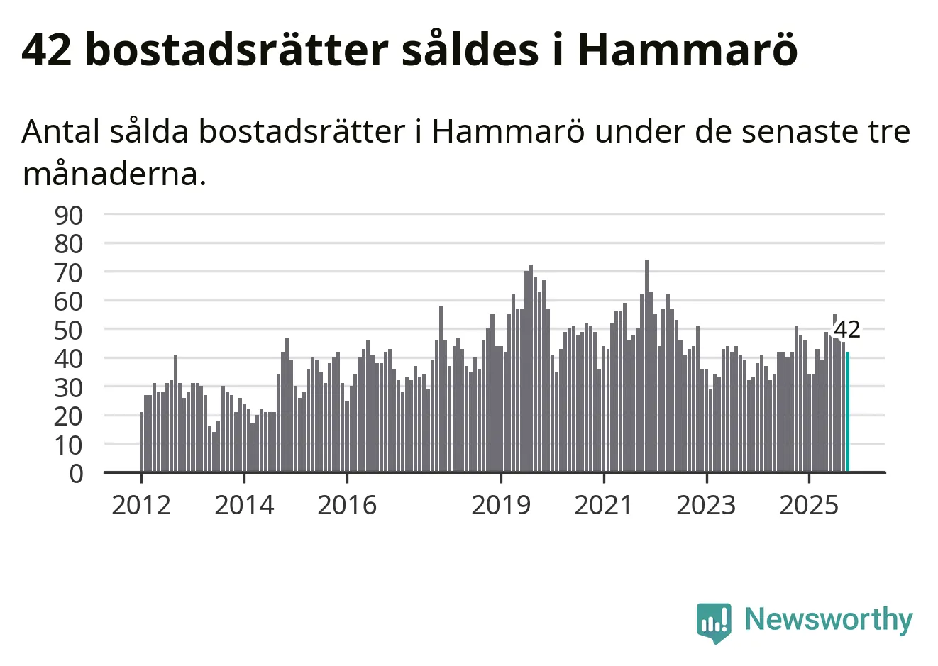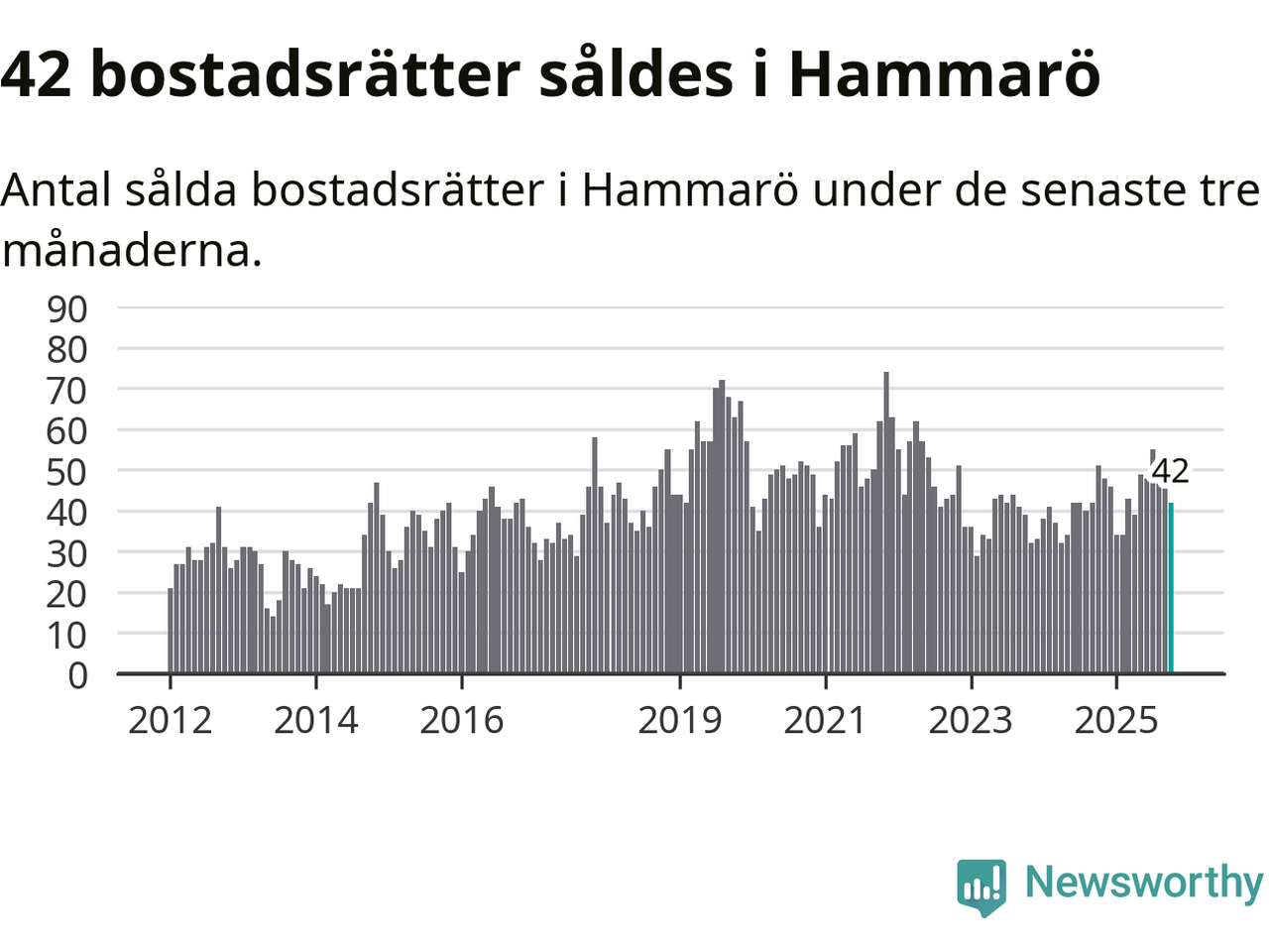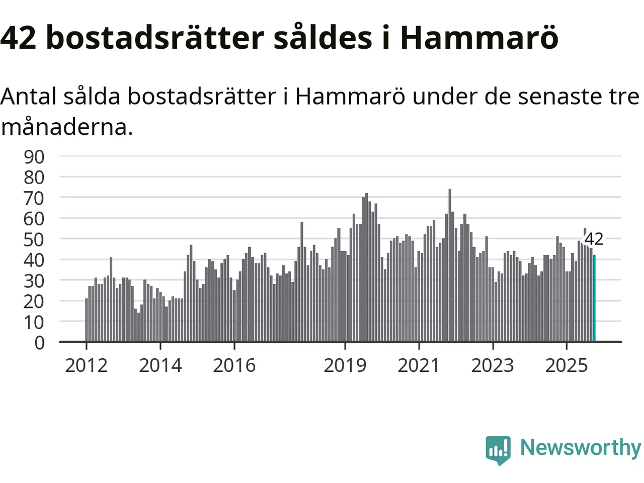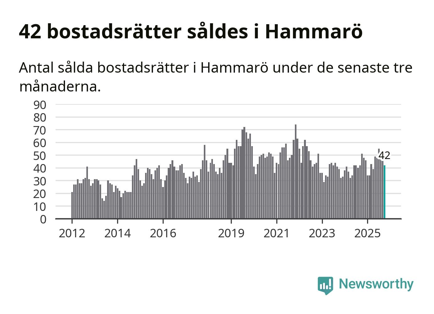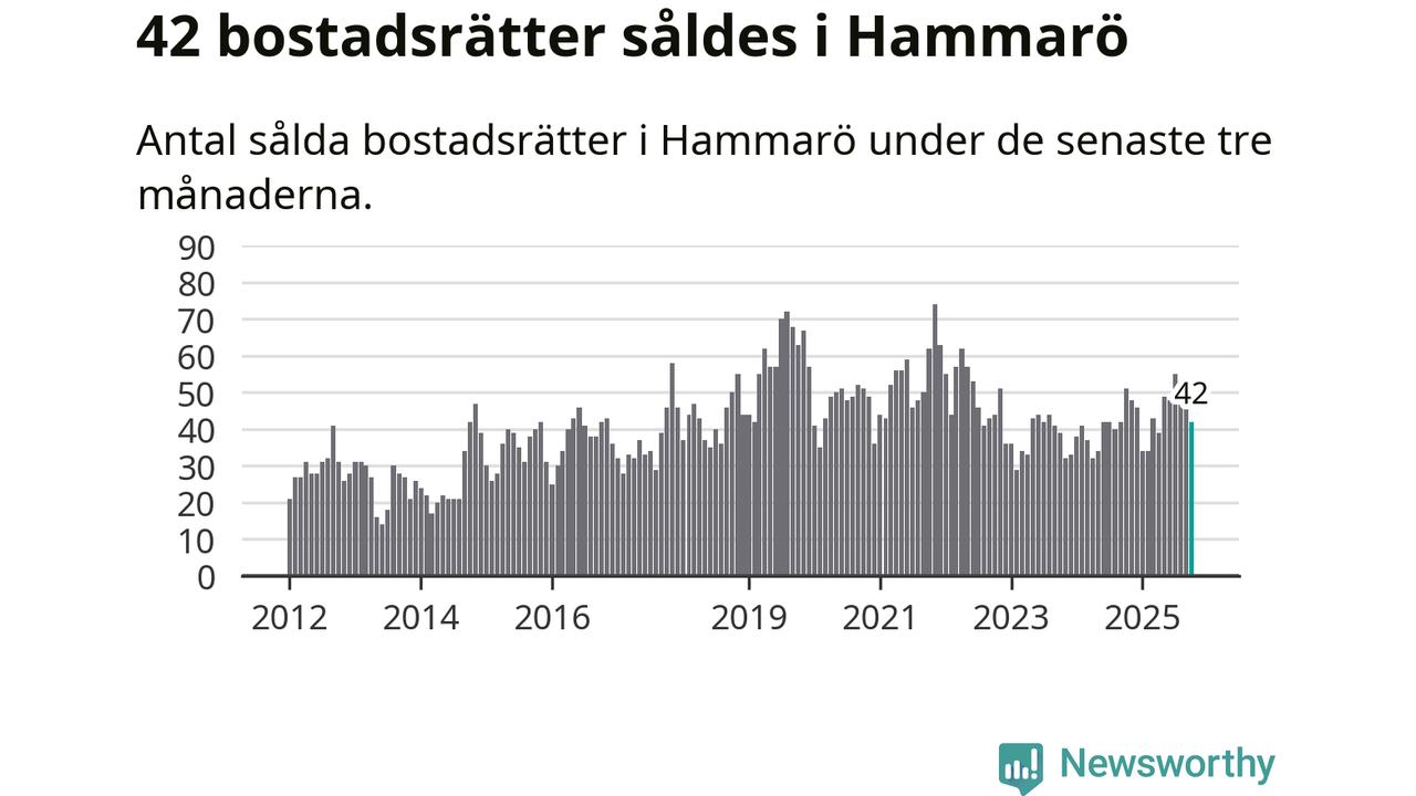Sammanlagt såldes 42 bostadsrätter i Hammarö kommun mellan augusti och oktober till ett genomsnittligt pris på 1,5 miljoner kronor. I fjol gjordes 51 affärer vid den här tiden på året.
