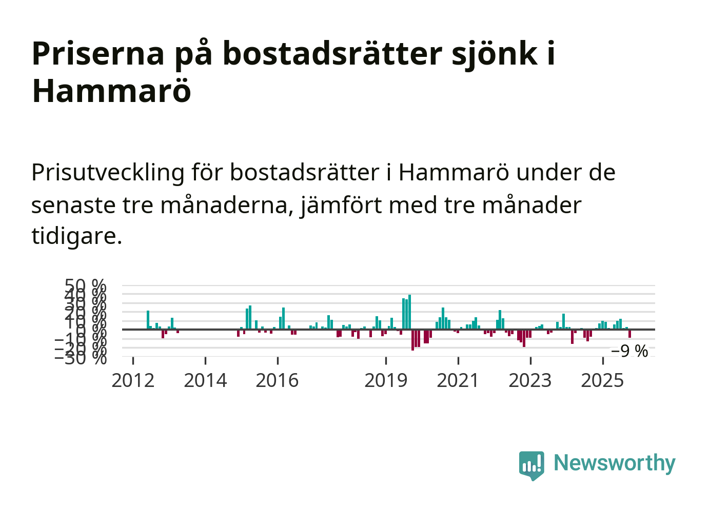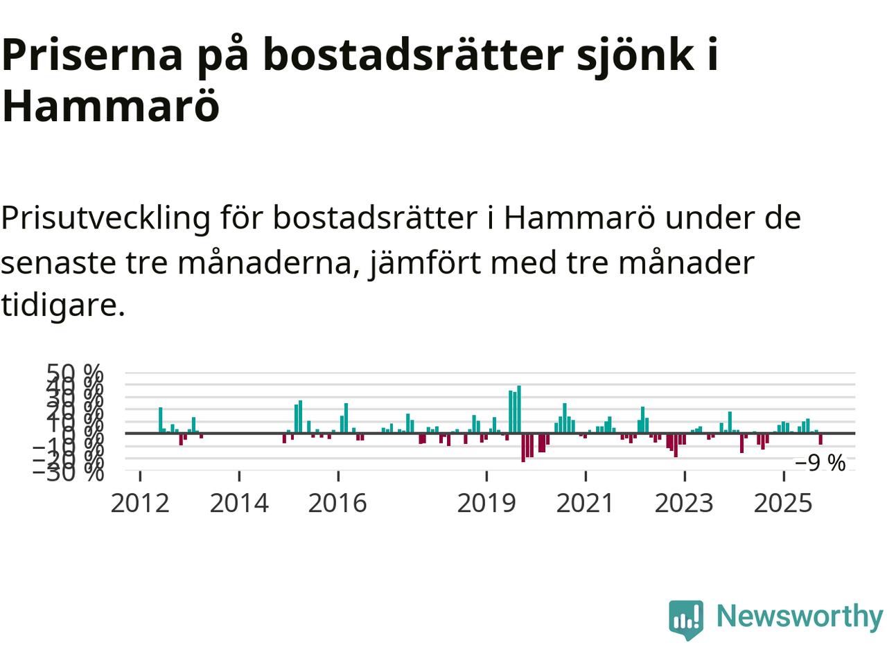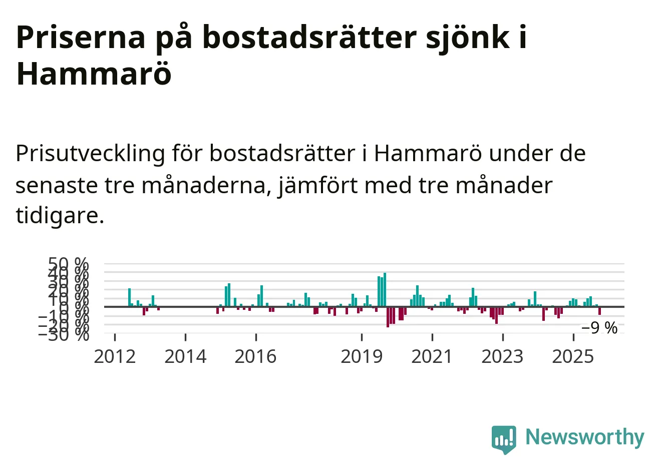 Priserna på bostadsrätter har gått ner i Hammarö kommun. Medelpriset på försäljningarna under de senaste tre månaderna visar på en nedgång med 9 procent.