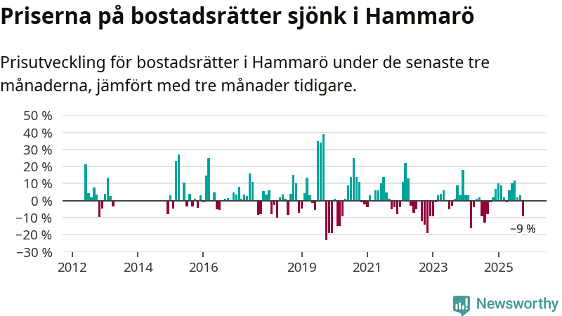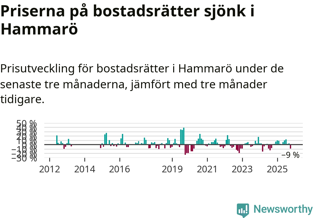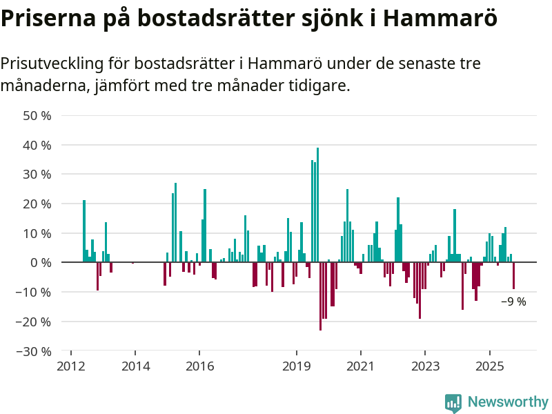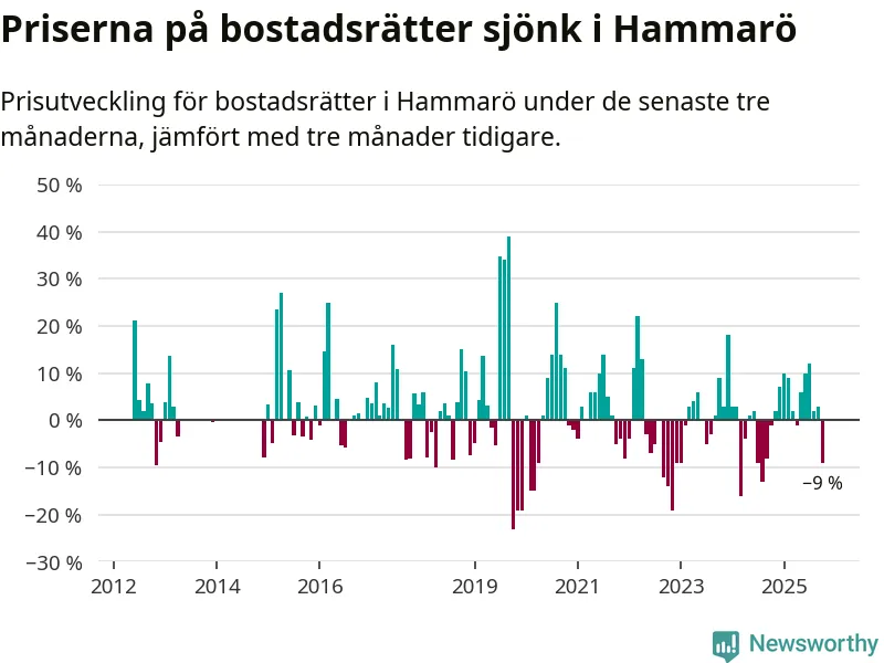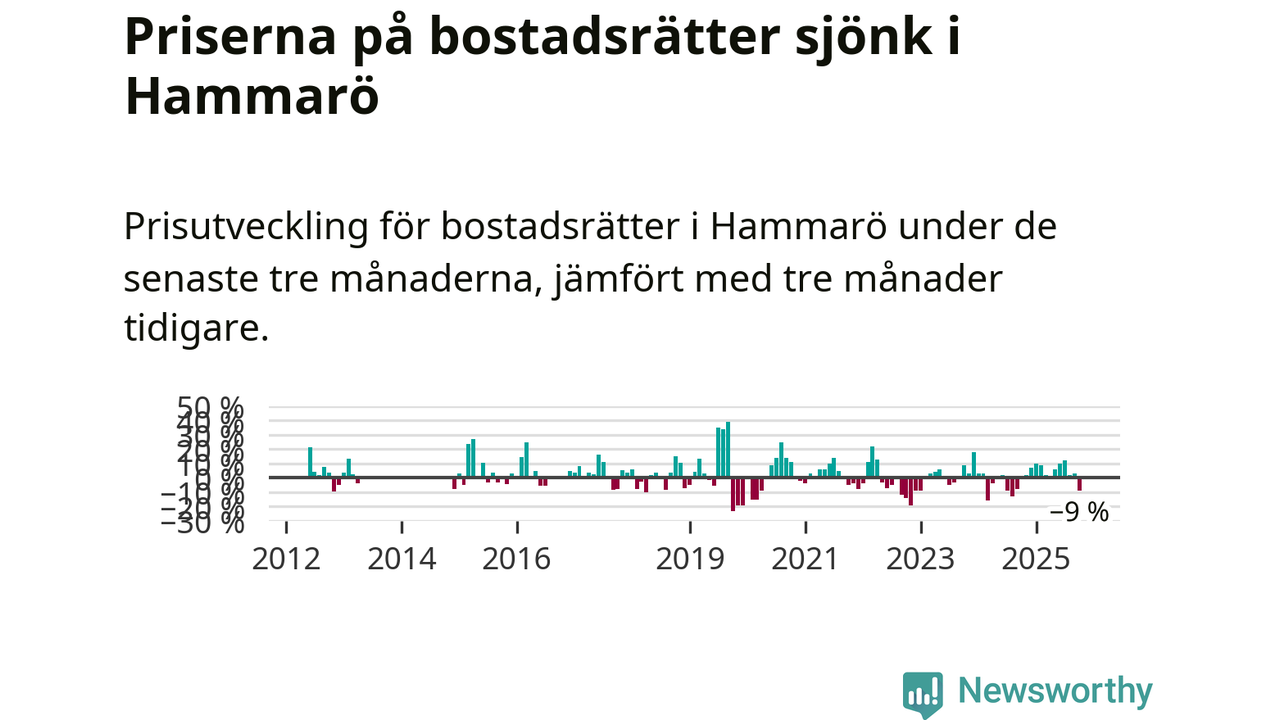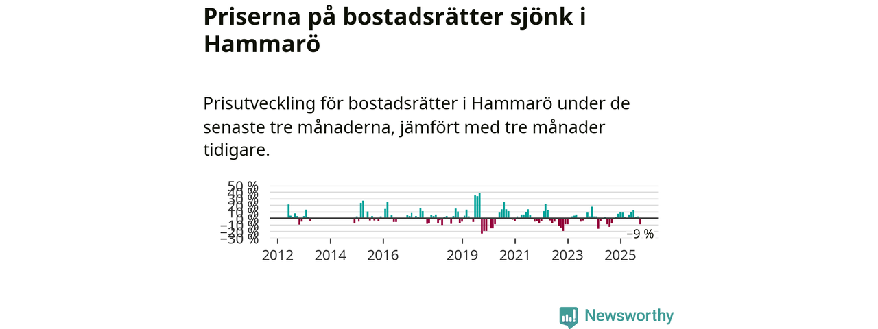 Priserna på bostadsrätter har gått ner i Hammarö kommun. Medelpriset på försäljningarna under de senaste tre månaderna visar på en nedgång med 9 procent.