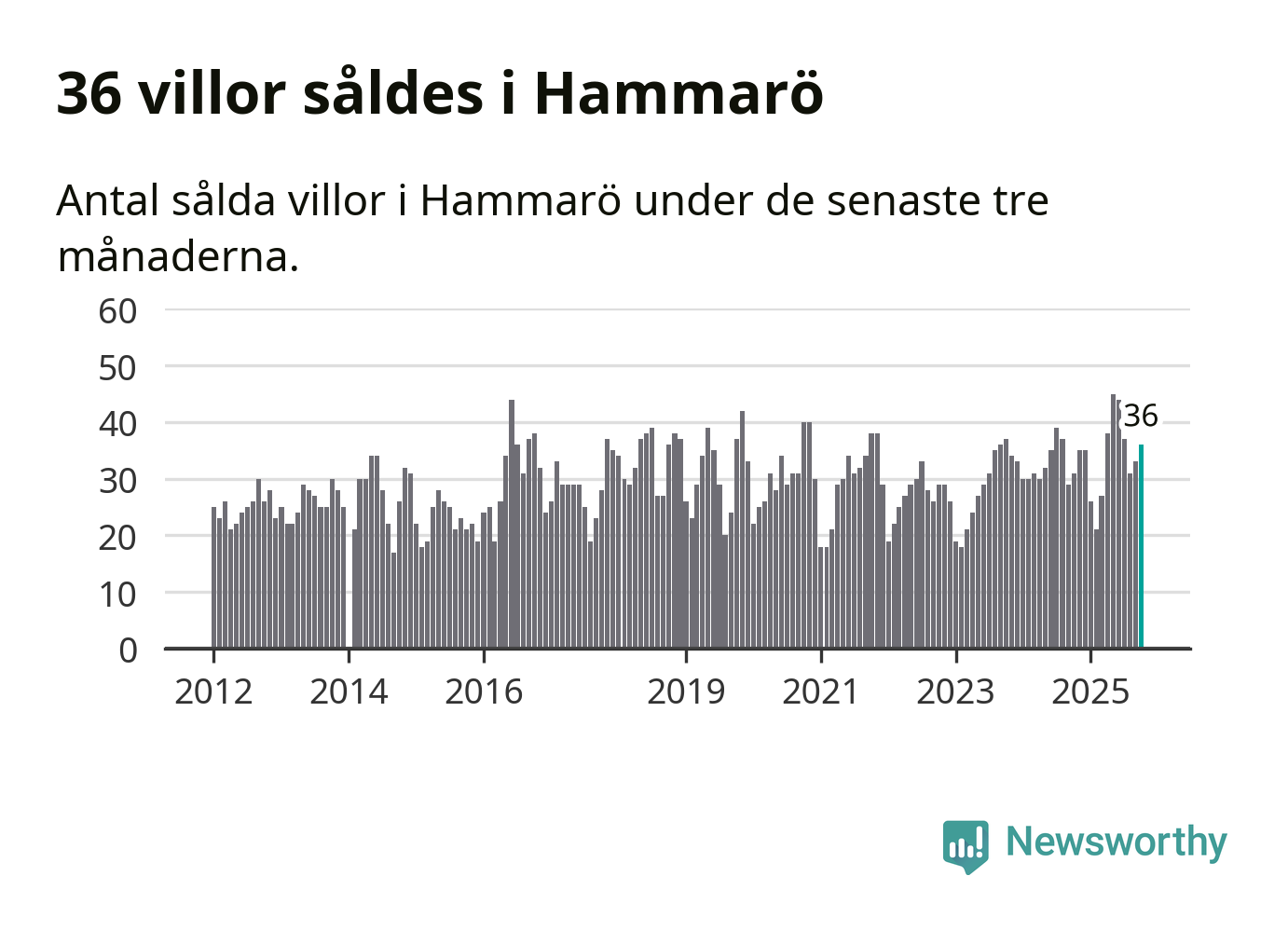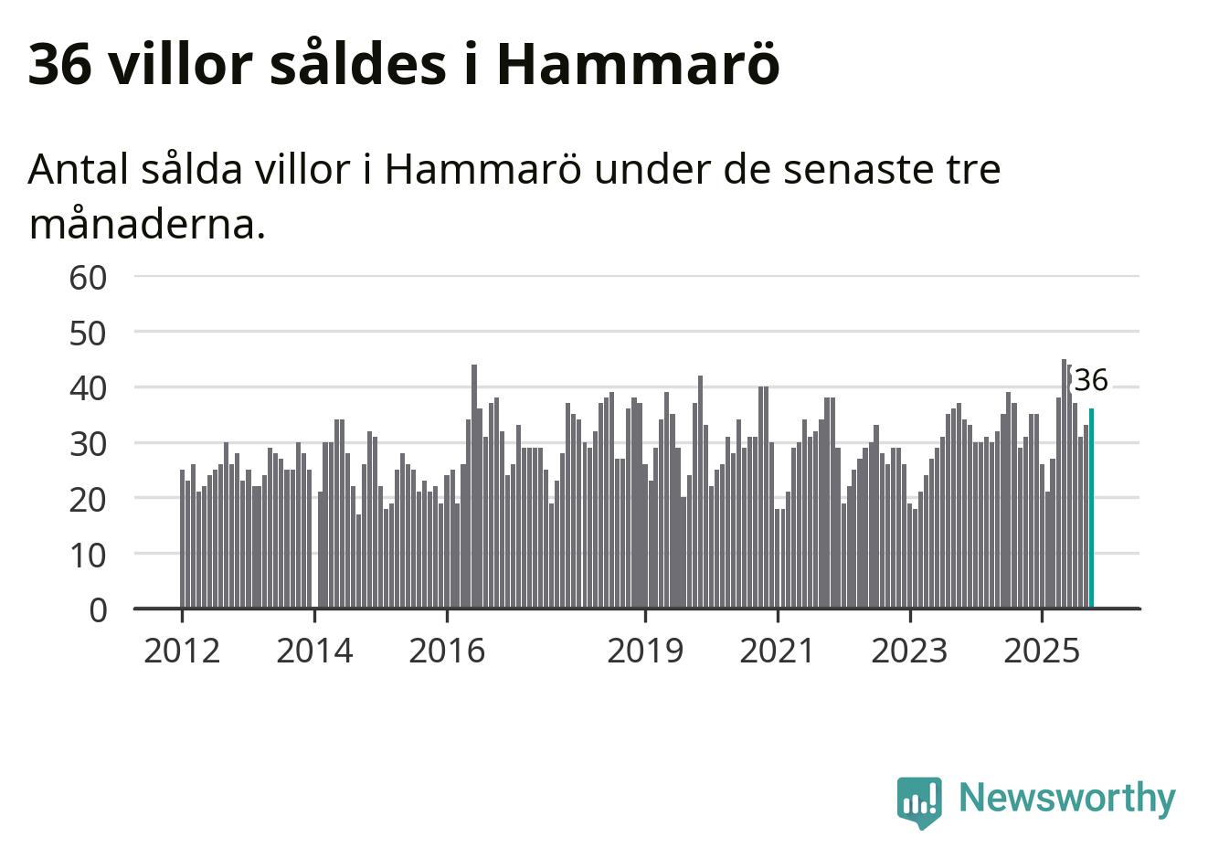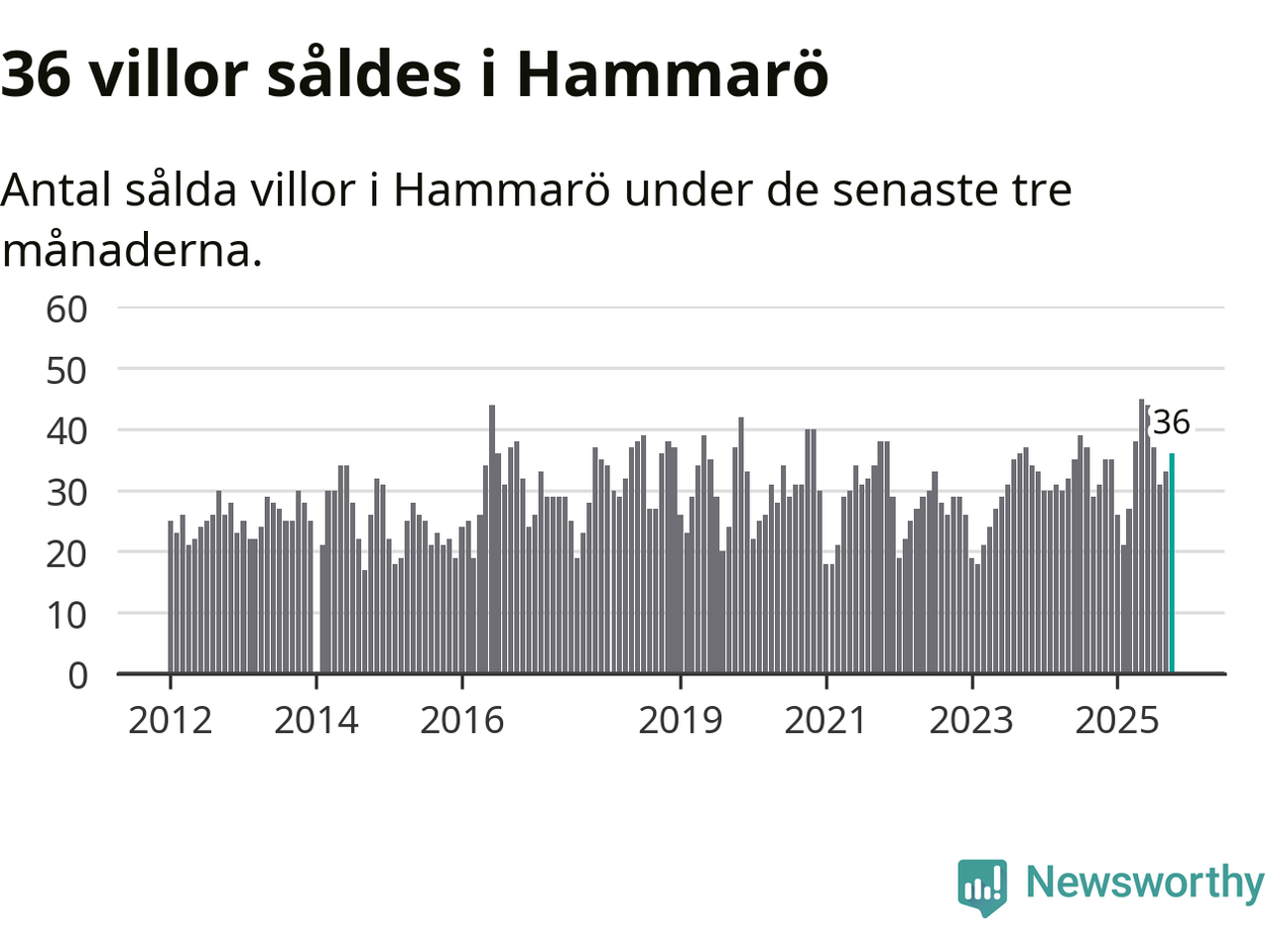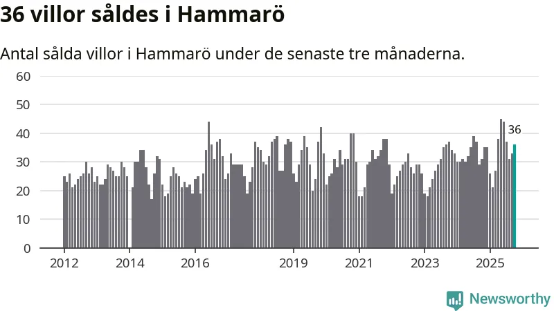 Mellan augusti och oktober gjordes sammanlagt 36 affärer med villor i Hammarö kommun. Det kan jämföras med 31 vid motsvarande tid i fjol.