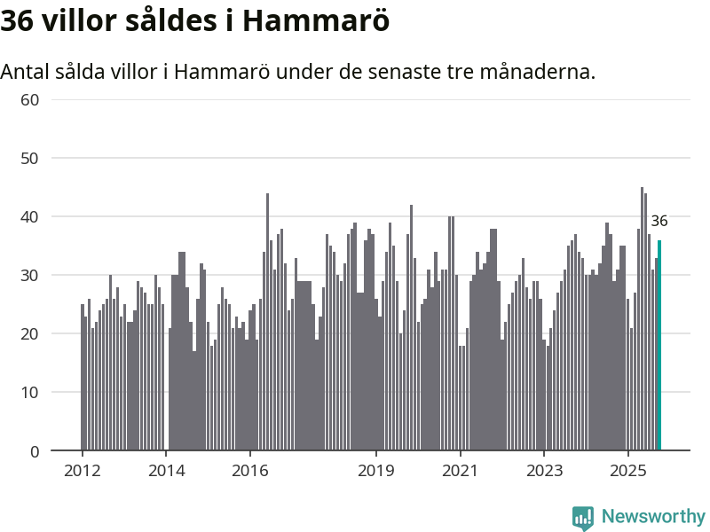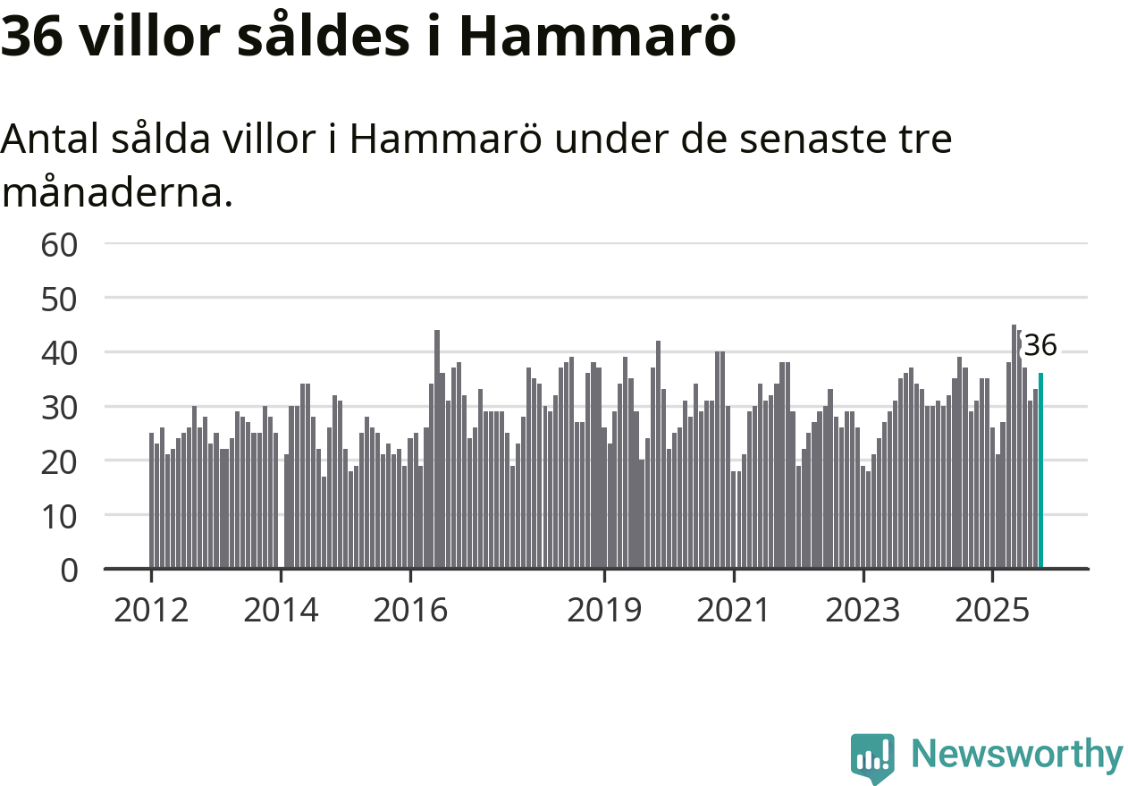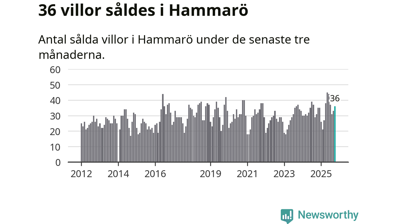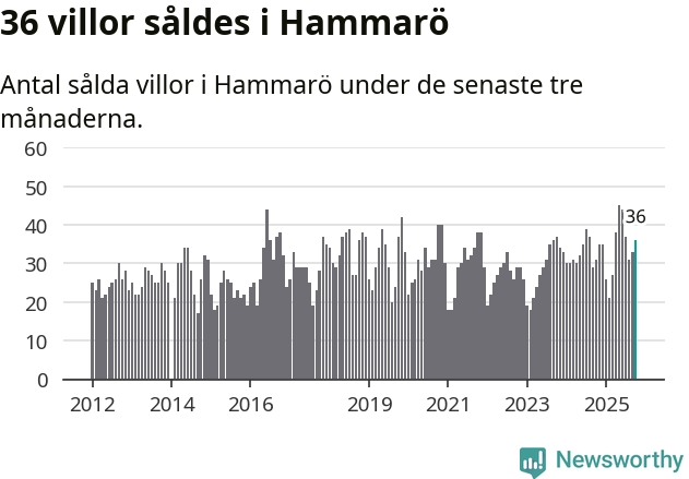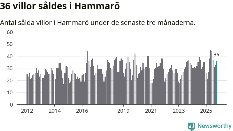 Mellan augusti och oktober gjordes sammanlagt 36 affärer med villor i Hammarö kommun. Det kan jämföras med 31 vid motsvarande tid i fjol.