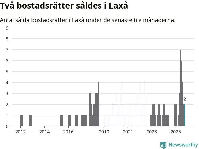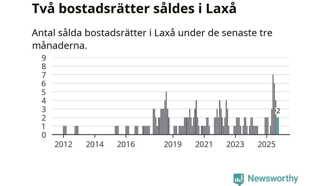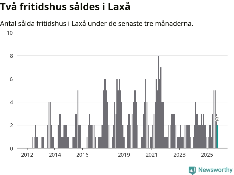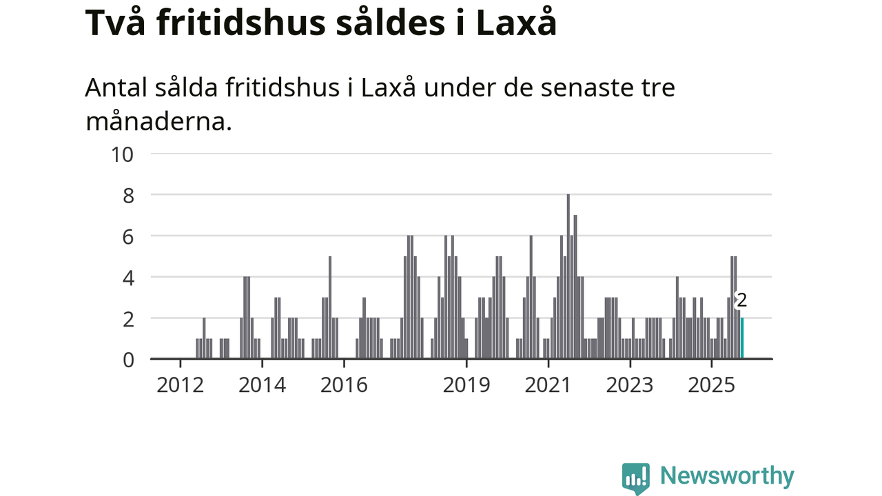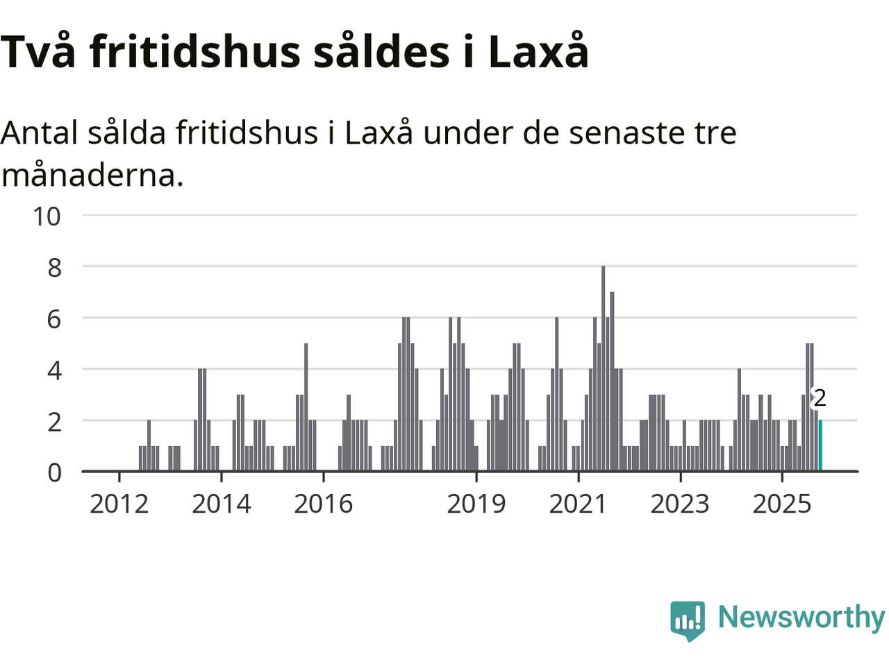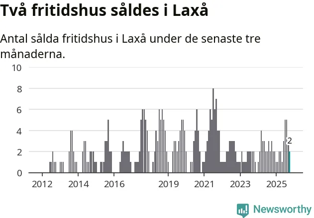 Mellan augusti och oktober gjordes sammanlagt två affärer med fritidshus i Laxå kommun. Det kan jämföras med tre vid motsvarande tid i fjol.