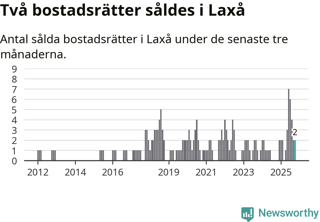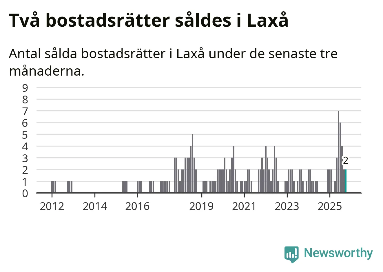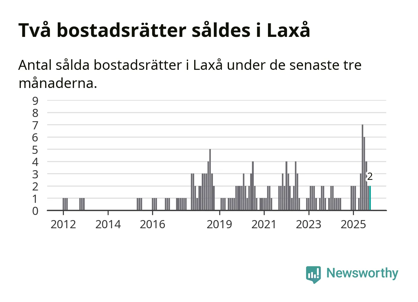 Mellan augusti och oktober gjordes sammanlagt två affärer med bostadsrätter i Laxå kommun.
