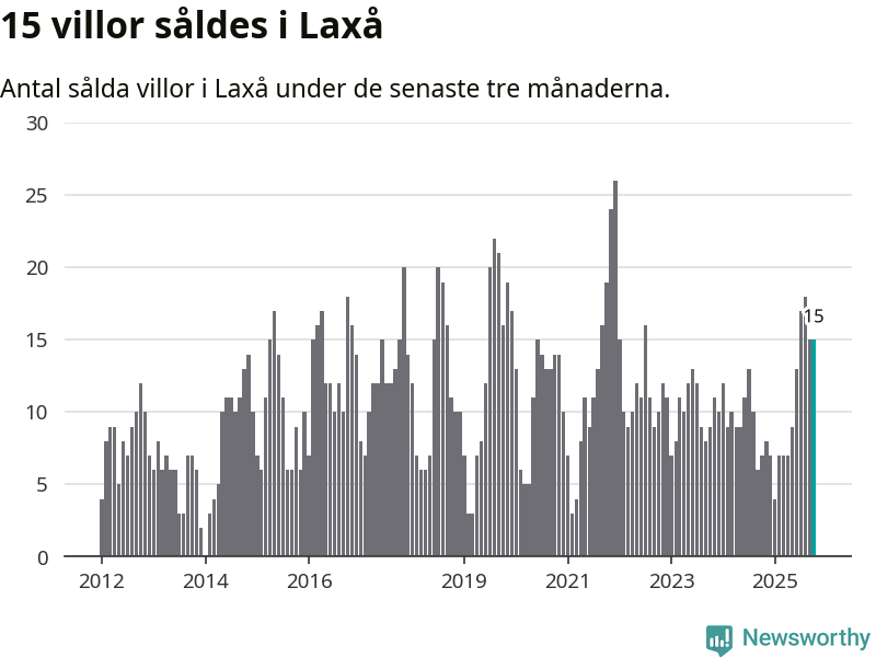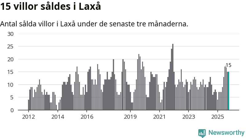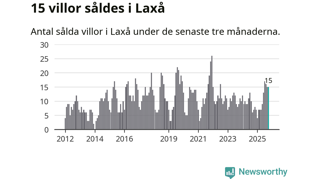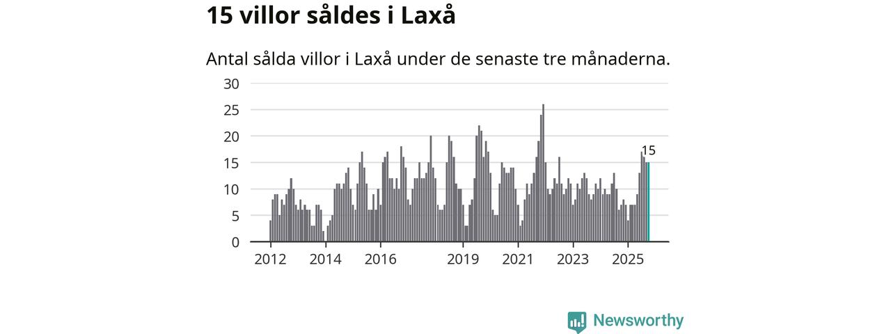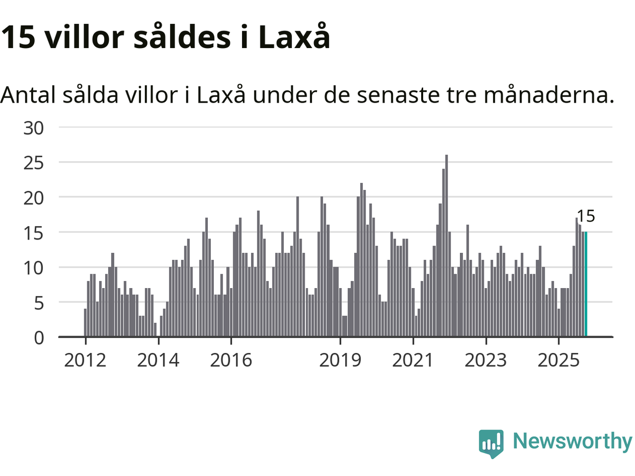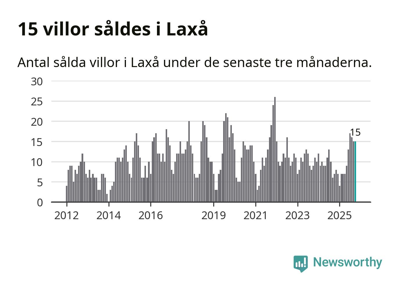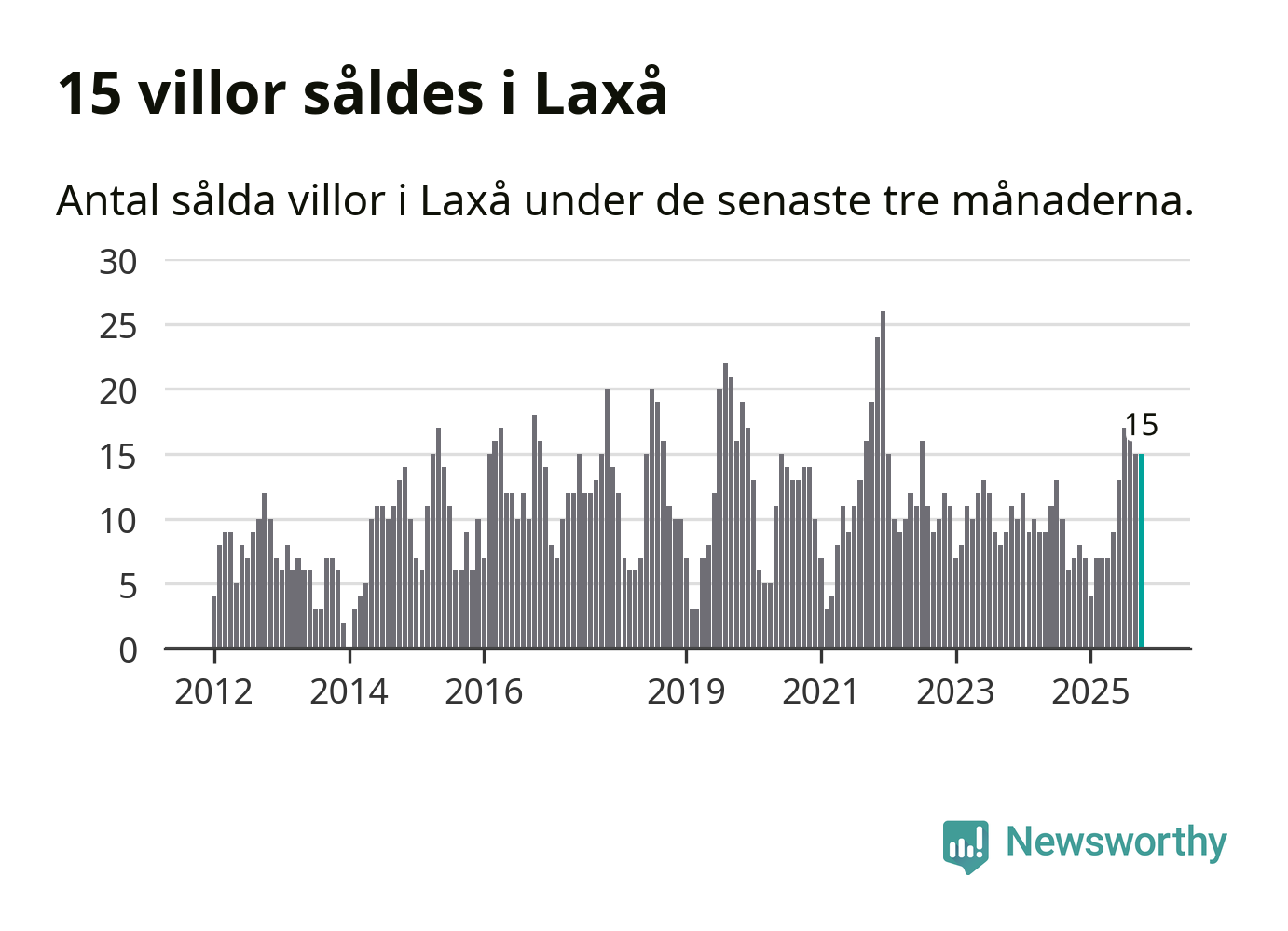 Mellan augusti och oktober gjordes sammanlagt 15 affärer med villor i Laxå kommun. Det kan jämföras med sju vid motsvarande tid i fjol.