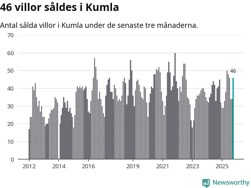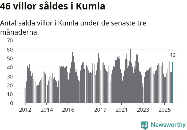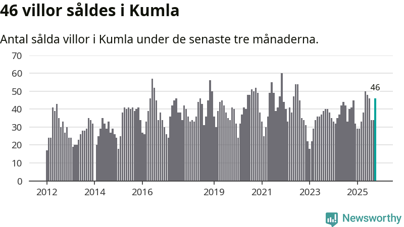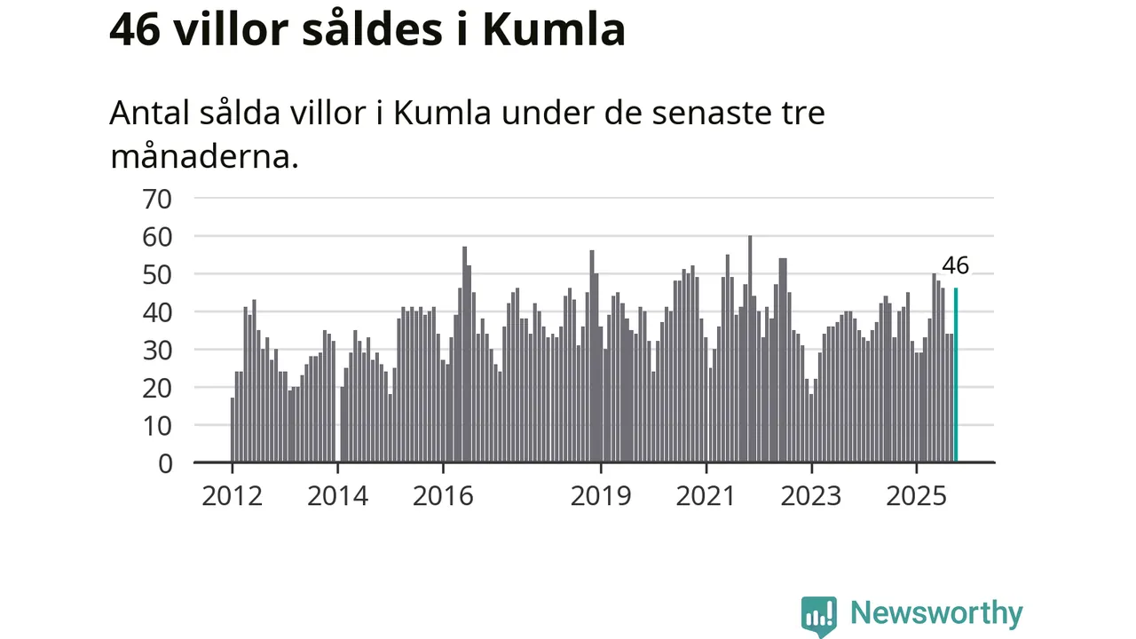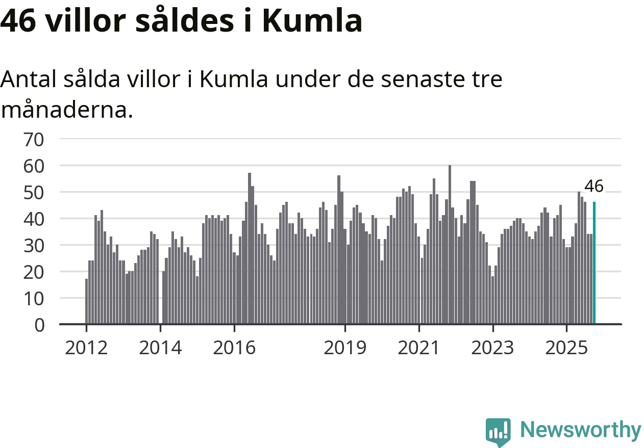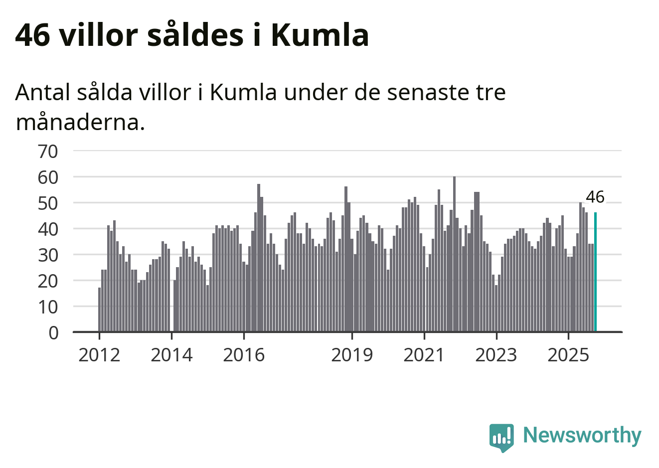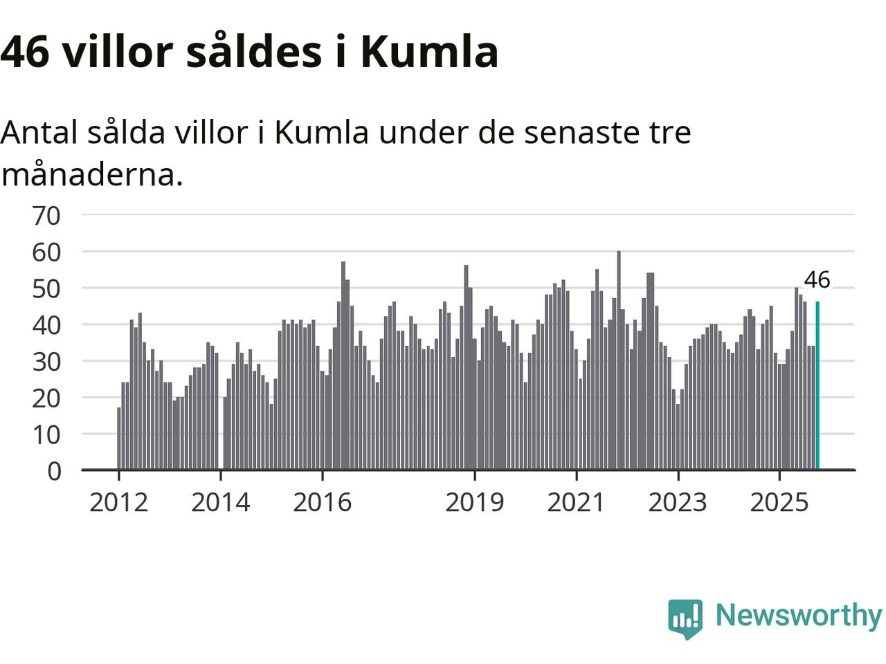Sammanlagt såldes 46 villor i Kumla kommun mellan augusti och oktober till ett genomsnittligt pris på 2,9 miljoner kronor. I fjol gjordes 41 affärer vid den här tiden på året.