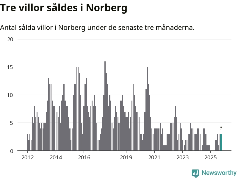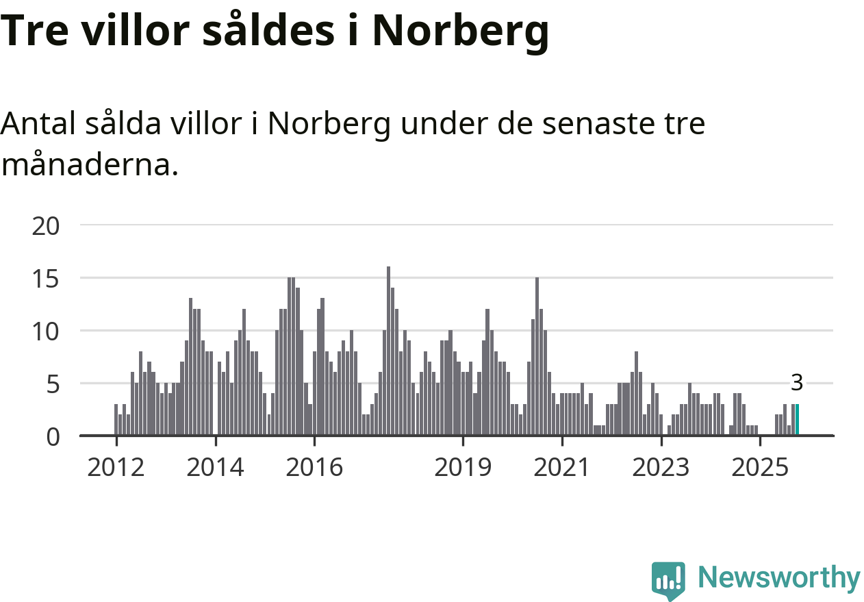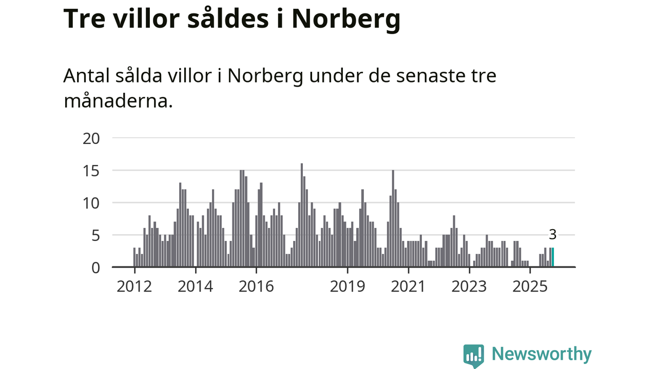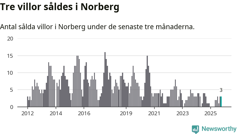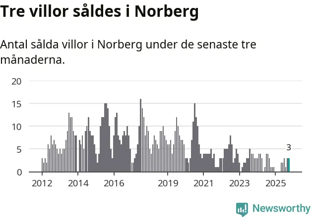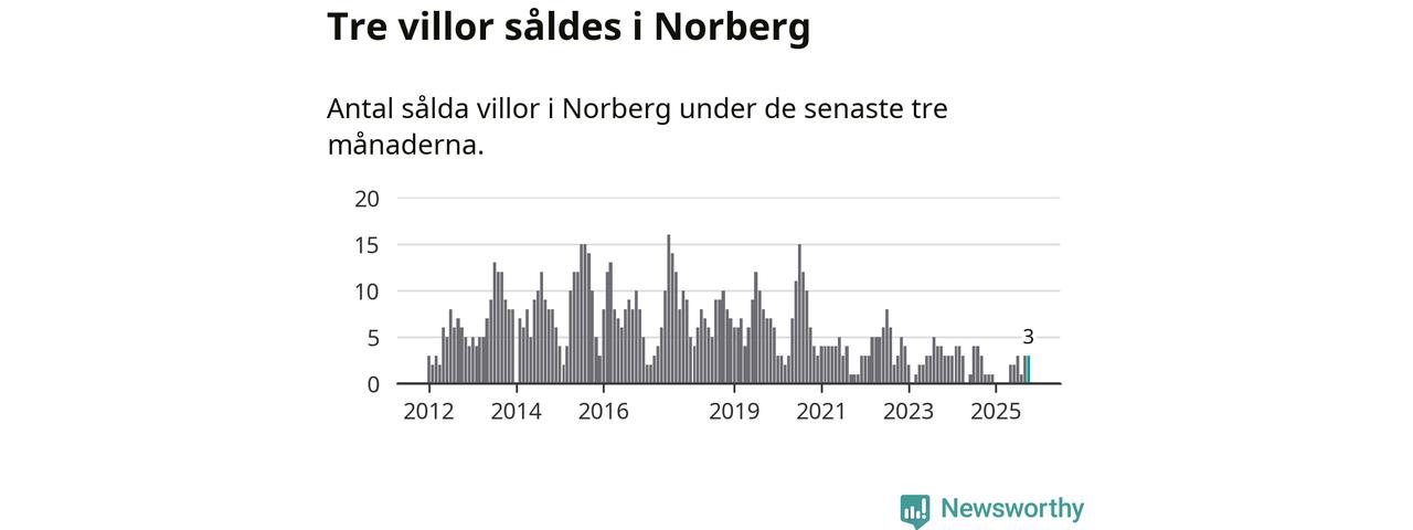 Mellan augusti och oktober gjordes sammanlagt tre affärer med villor i Norbergs kommun. Det kan jämföras med ett vid motsvarande tid i fjol.