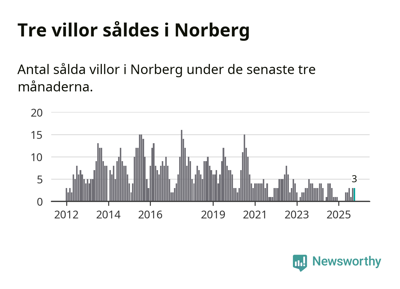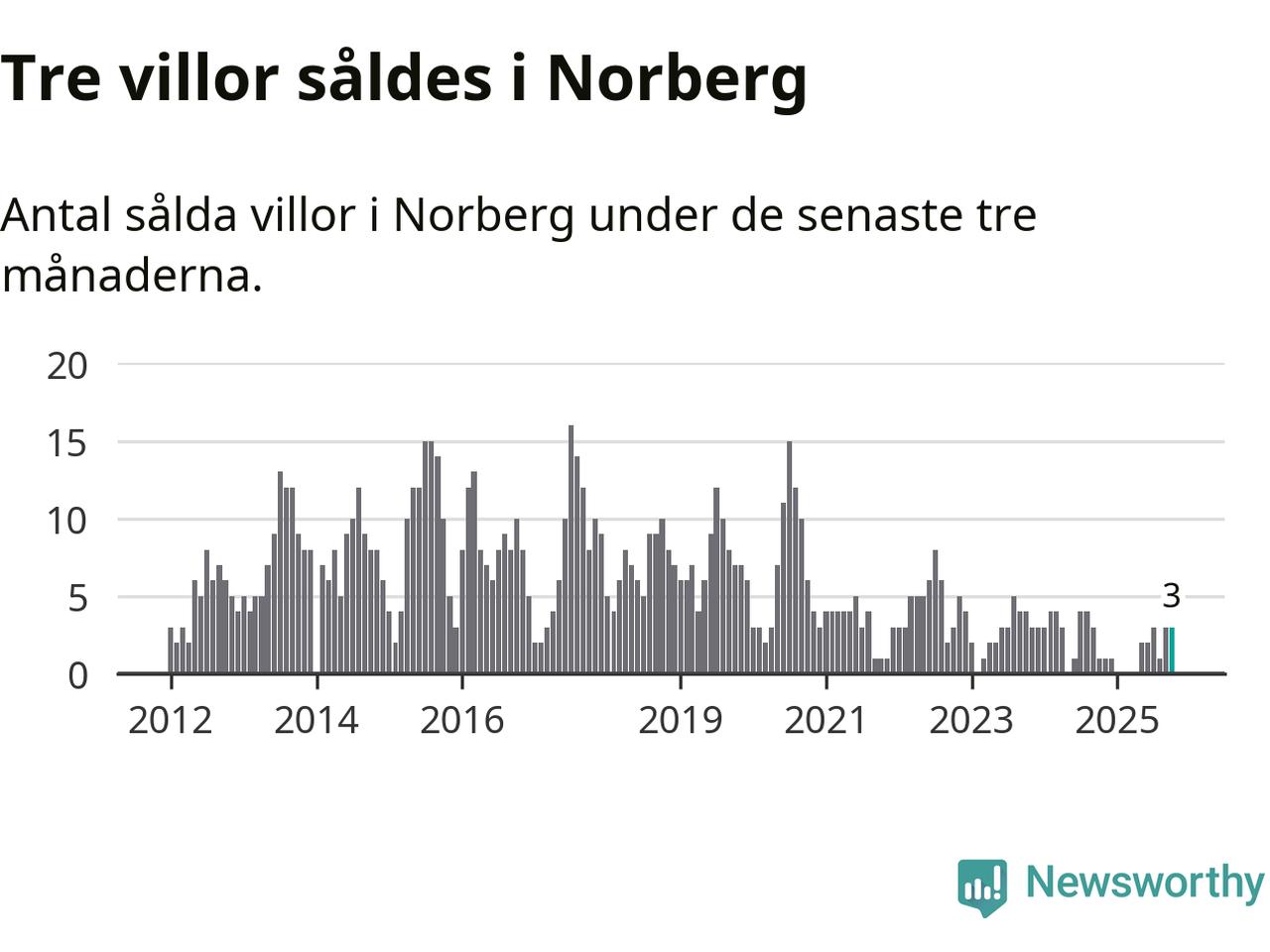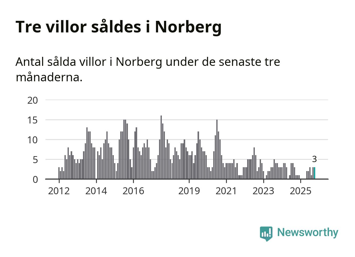 Mellan augusti och oktober gjordes sammanlagt tre affärer med villor i Norbergs kommun. Det kan jämföras med ett vid motsvarande tid i fjol.